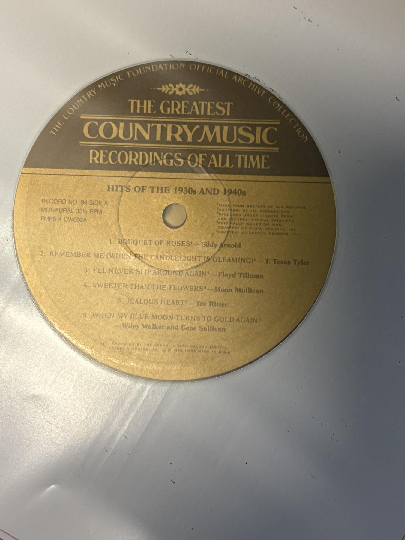 Collection Of (76) Records Of The Greatest Country Music Recordings Of All Time From The Franklin Mint Record Society.