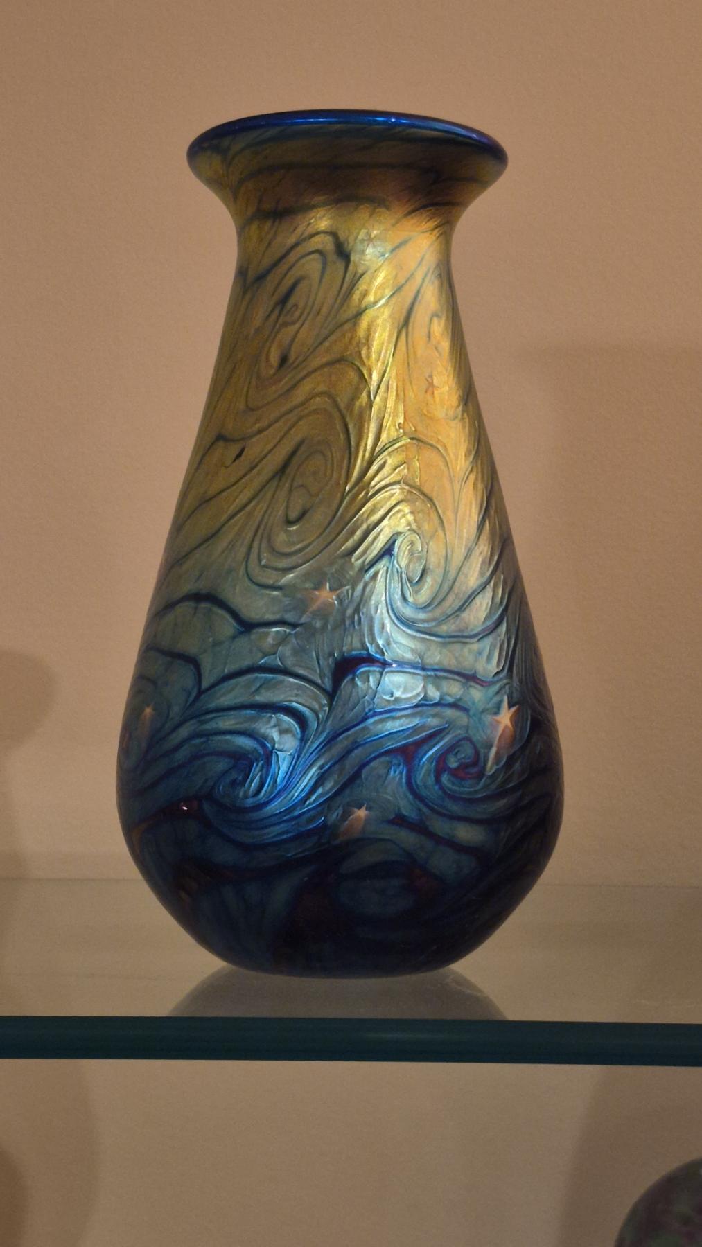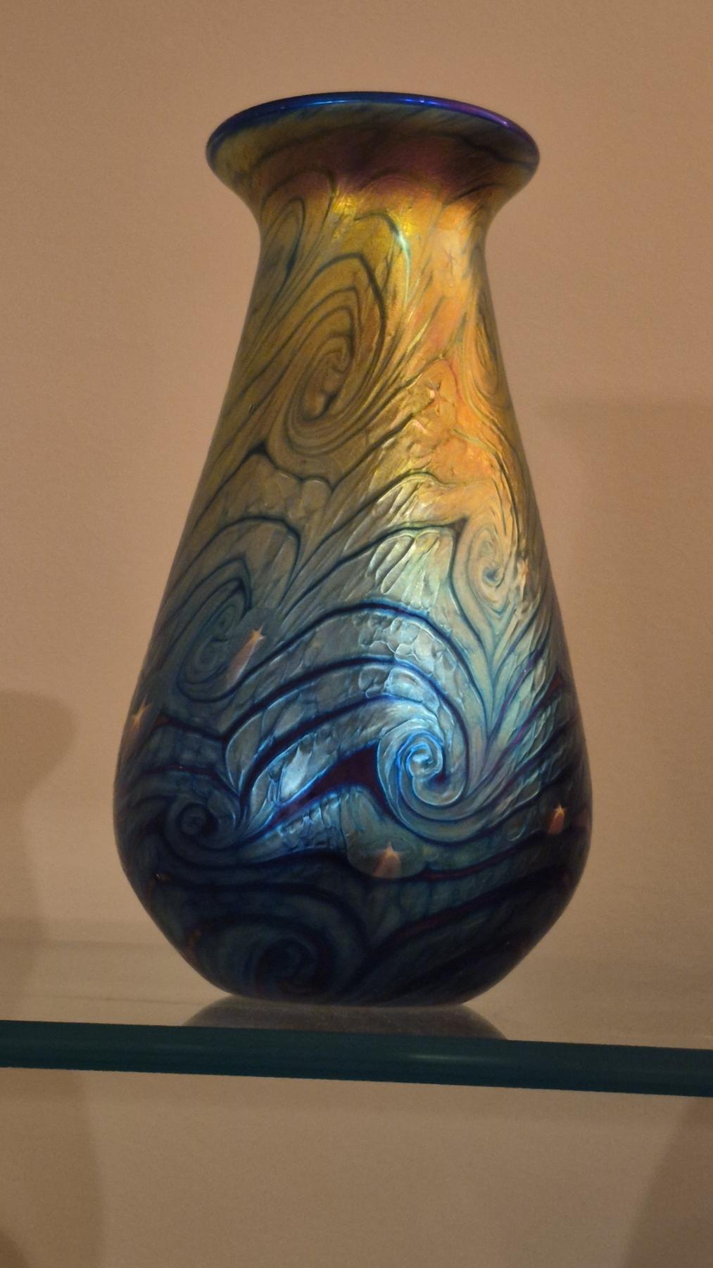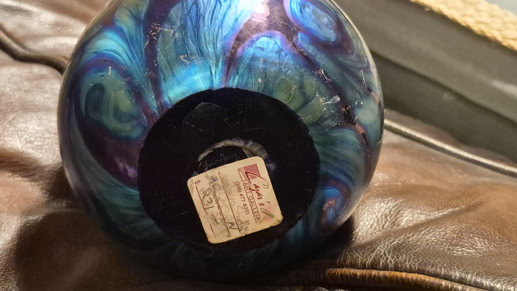 8 " Iridized Colorfull Art Glass Vase - 5 /5" At Widest Pt. Ex Condition
