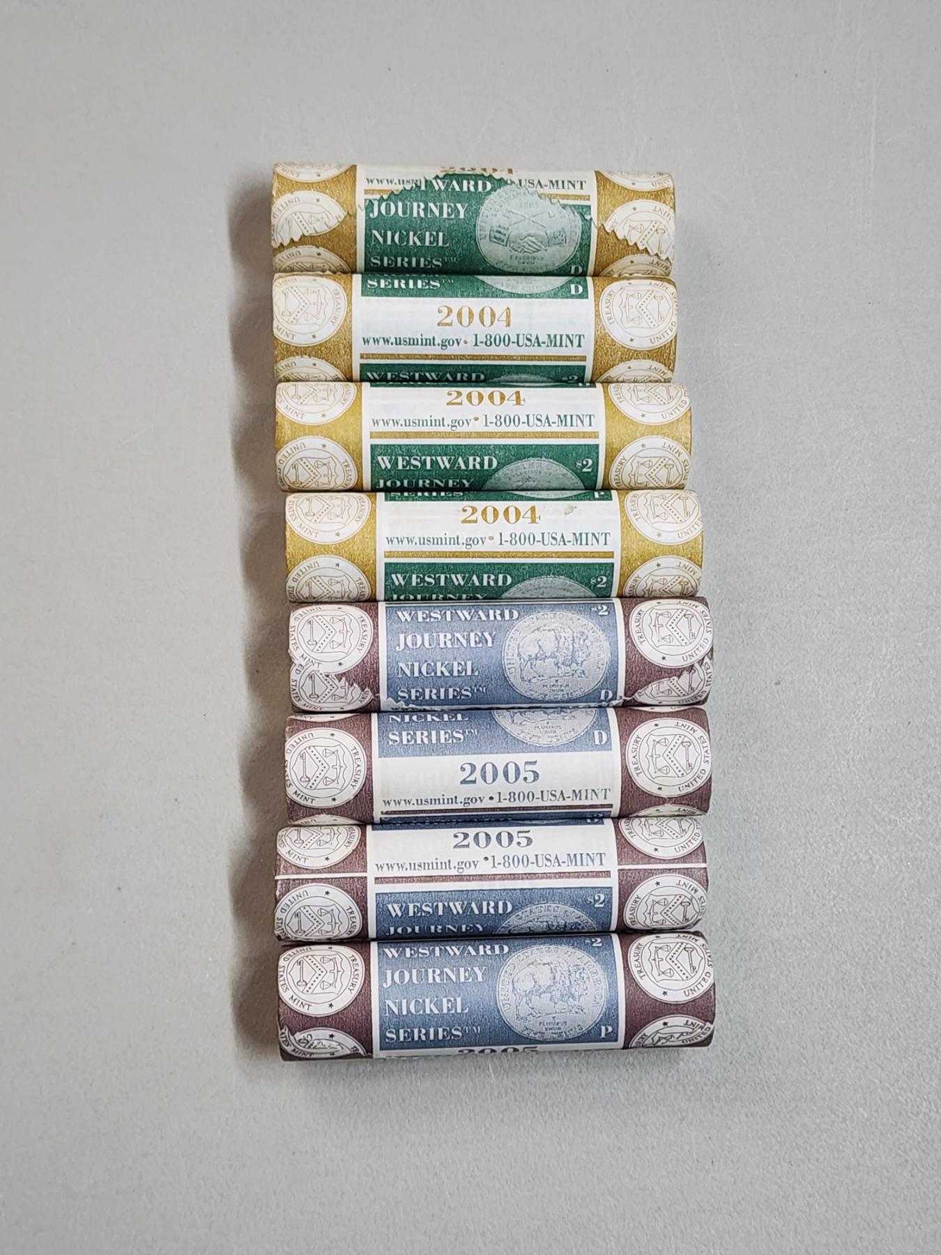 (8) Rolls of 2004-2005 Westward Journey Jefferson Nickels FV: $16.00