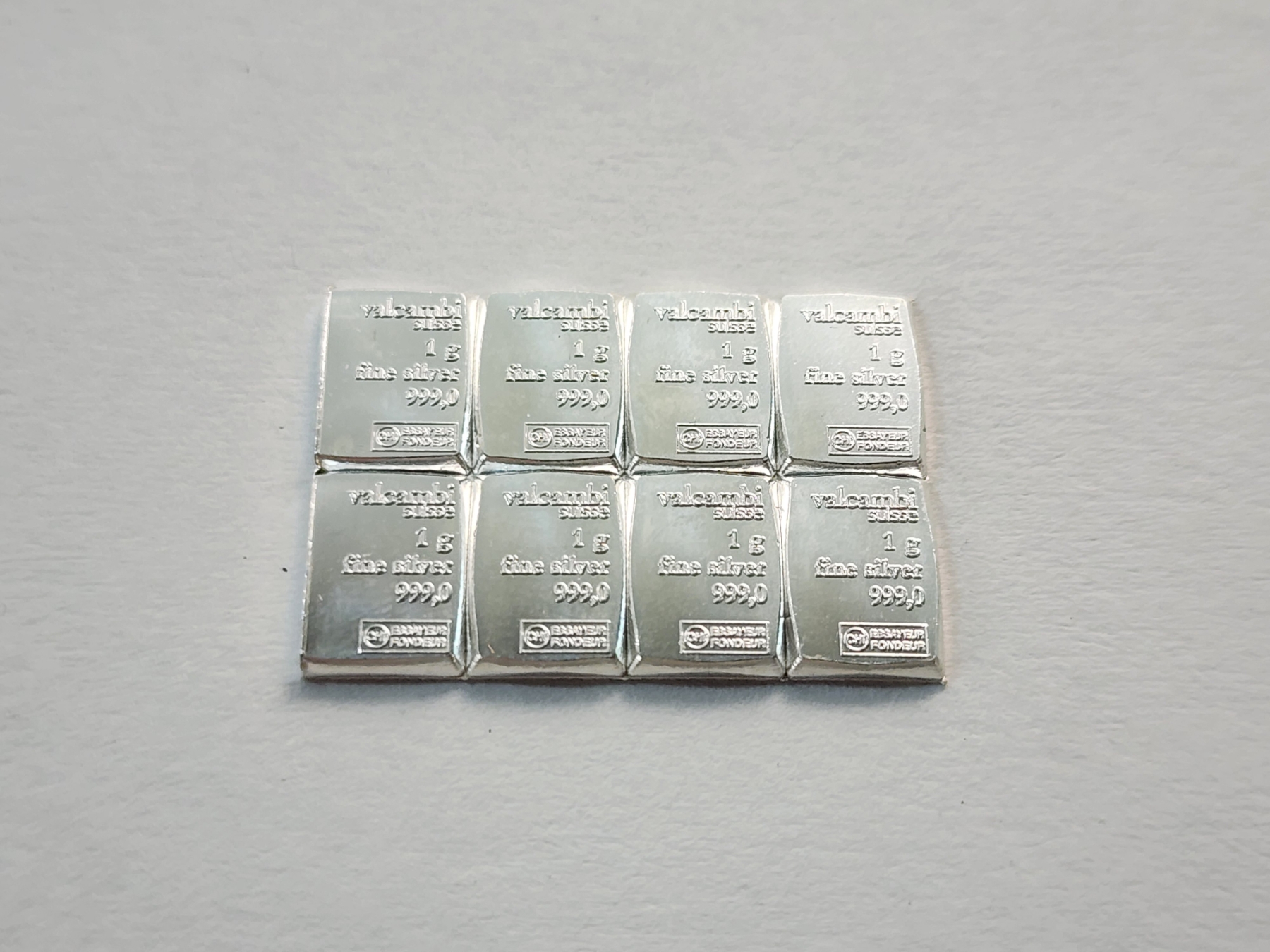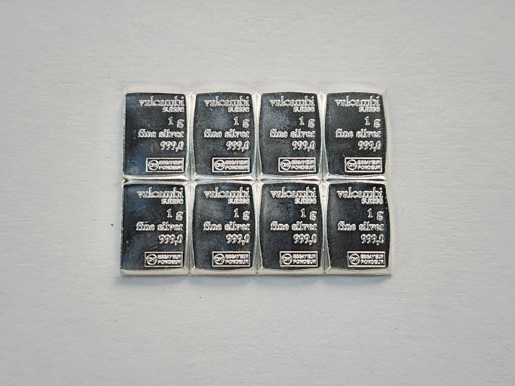8 - Valcambi Suisse 1 Gram .999 Fine Silver Bars - Mint Condition