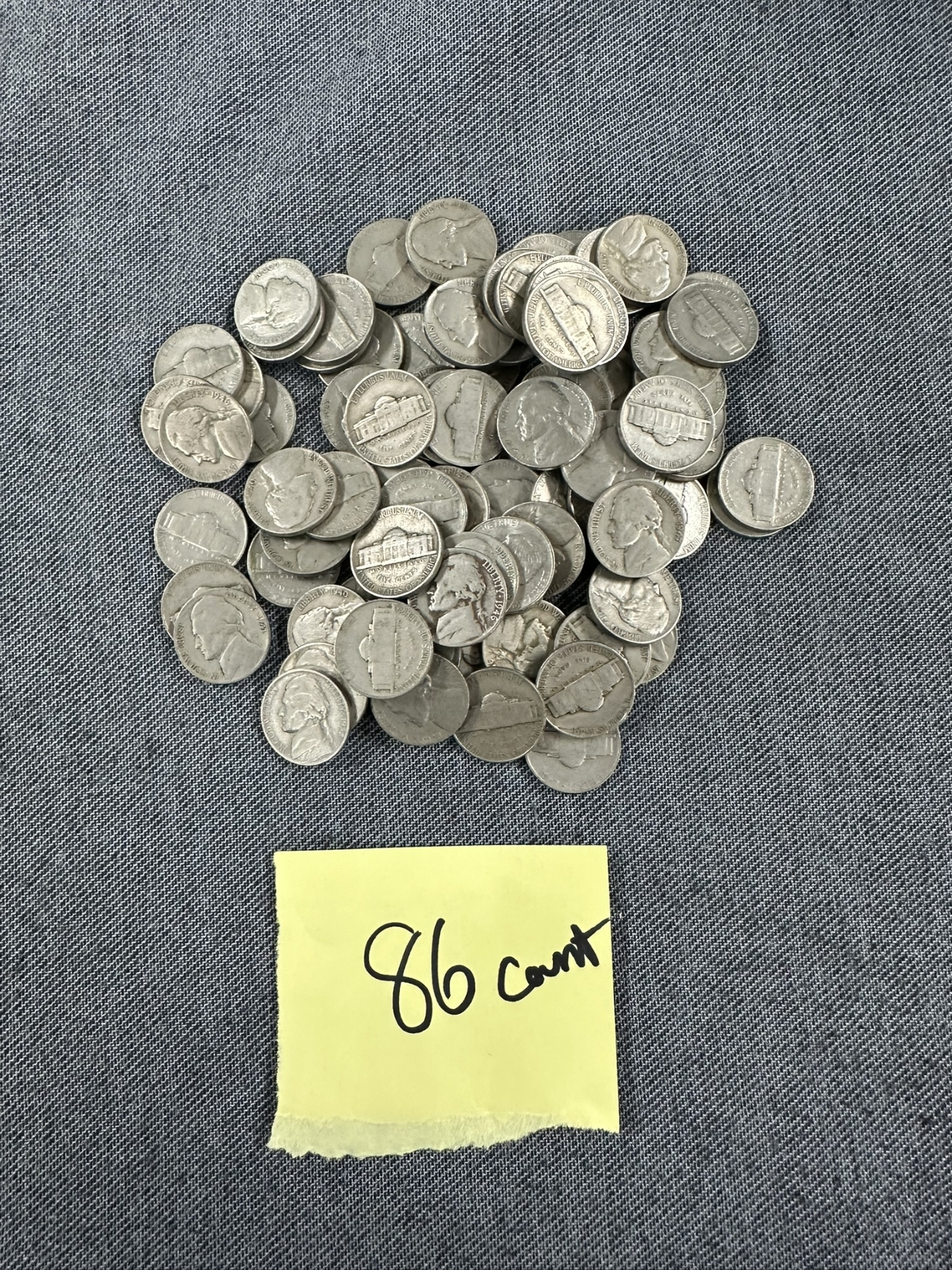 86 Unsearched Jefferson Nickles - $4.30 Face Value