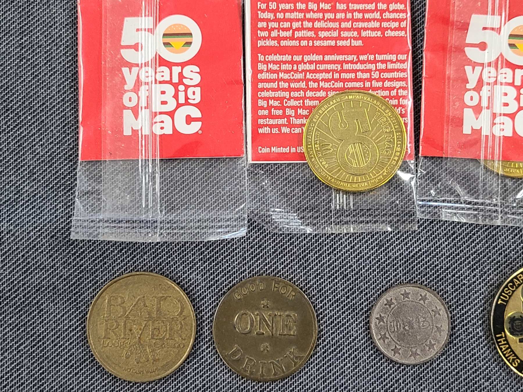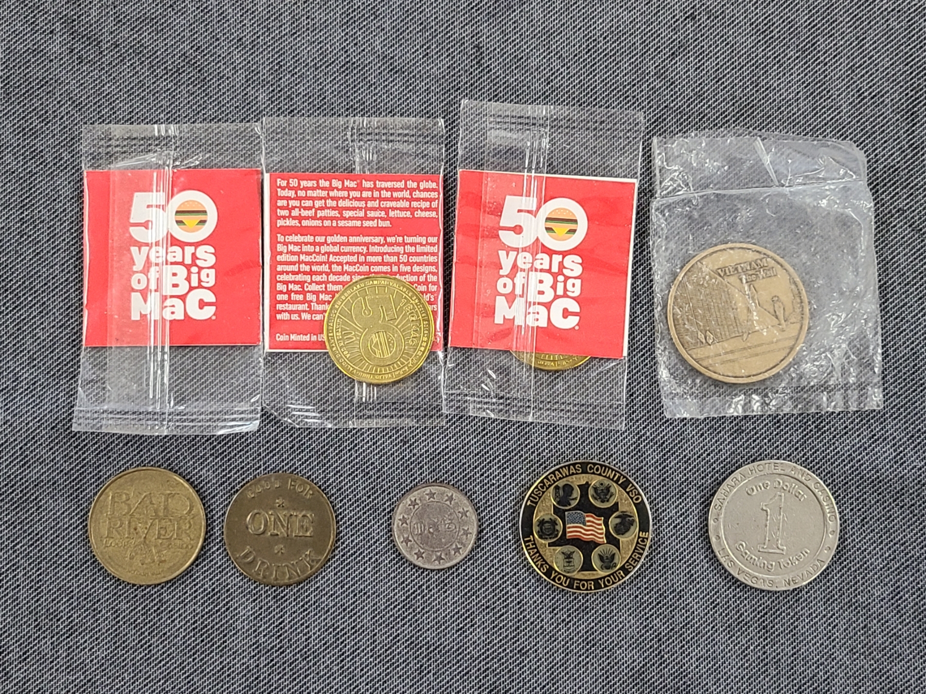 9 Assorted Coins & Tokens Ft. McDonald's Big Mac Tokens, Casino Tokens & More!