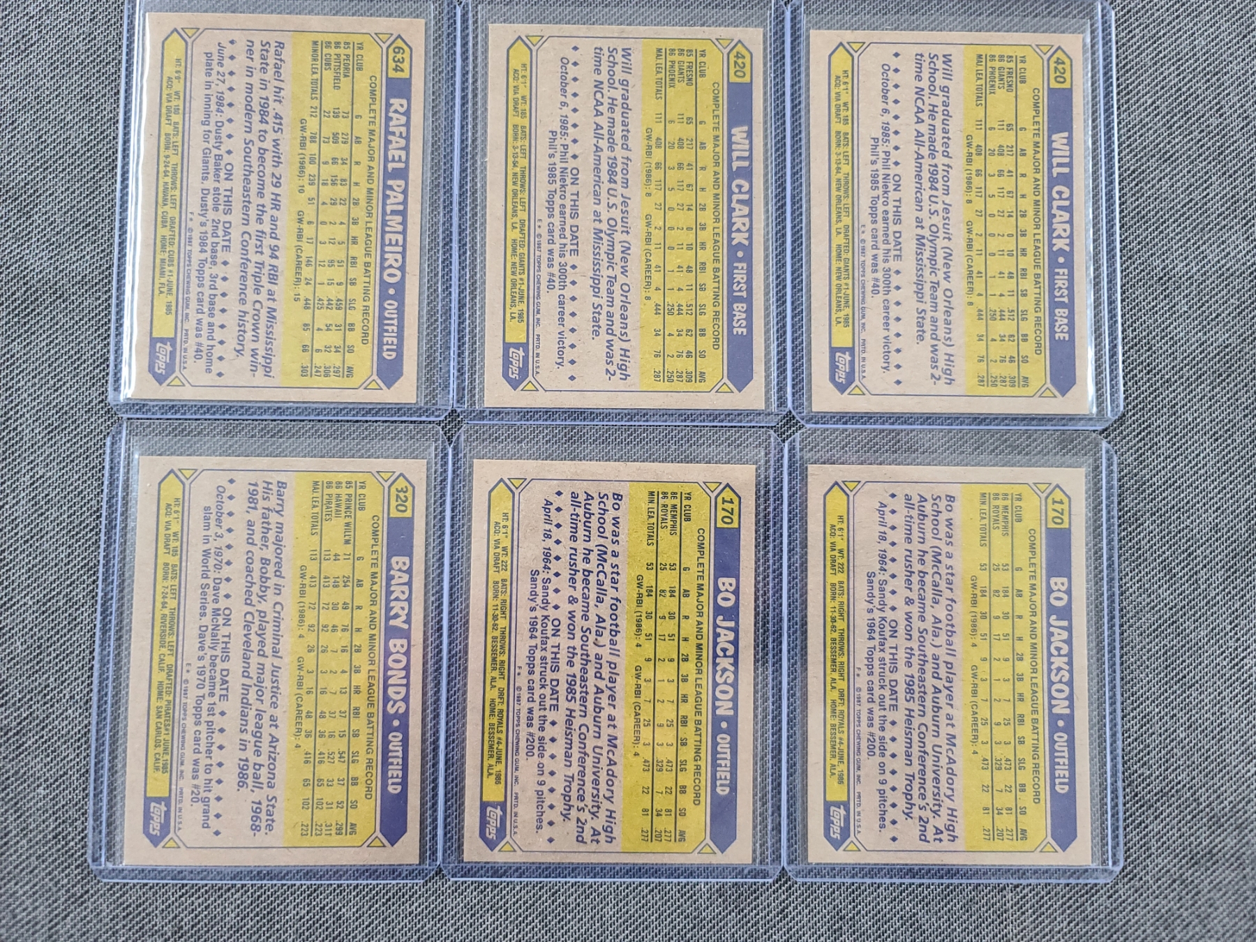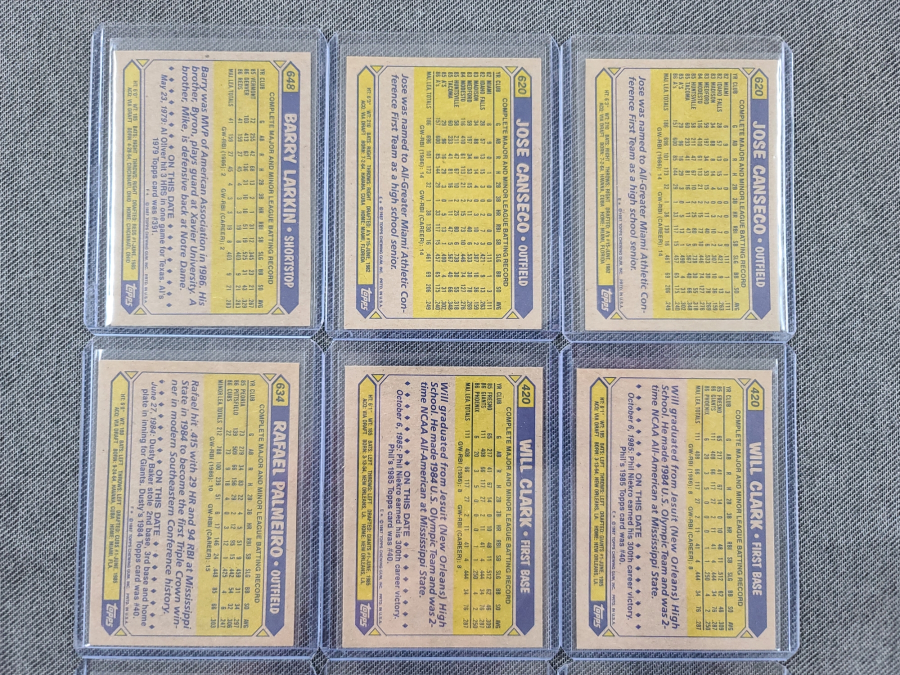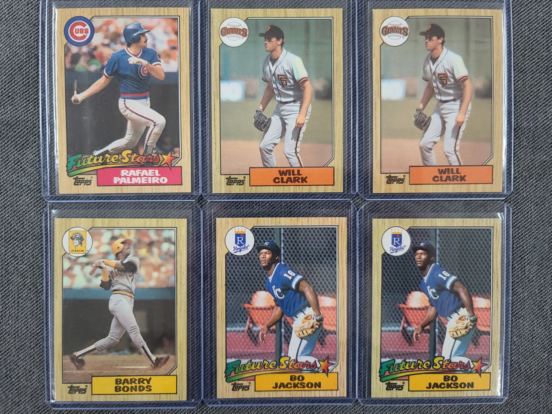 9 Assorted Near Mint 1987 Topps Baseball Trading Cards Including Jose Canseco, Barry Bonds & Bo Jackson!