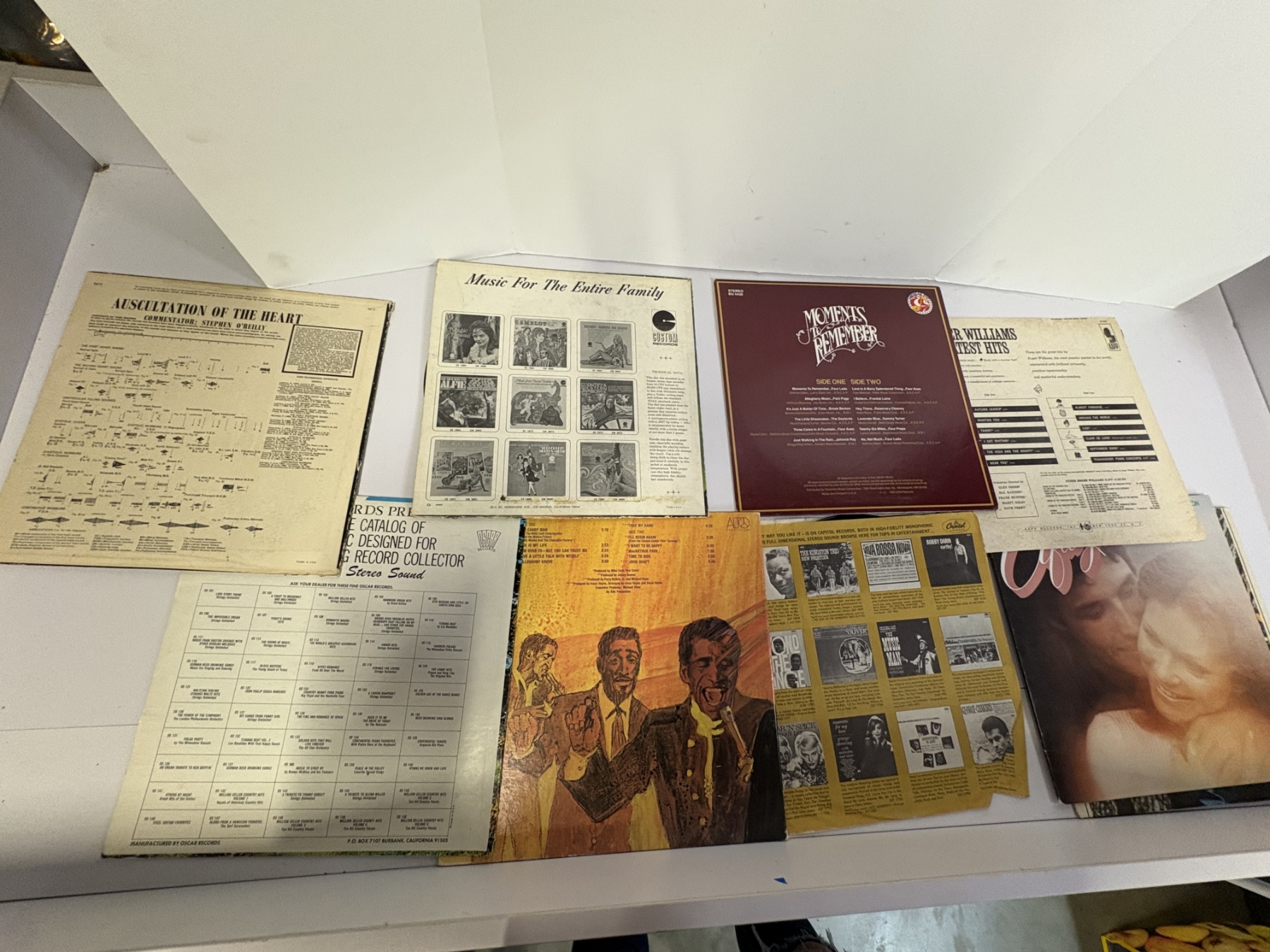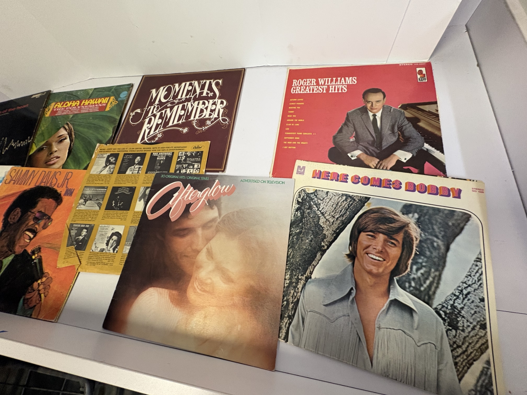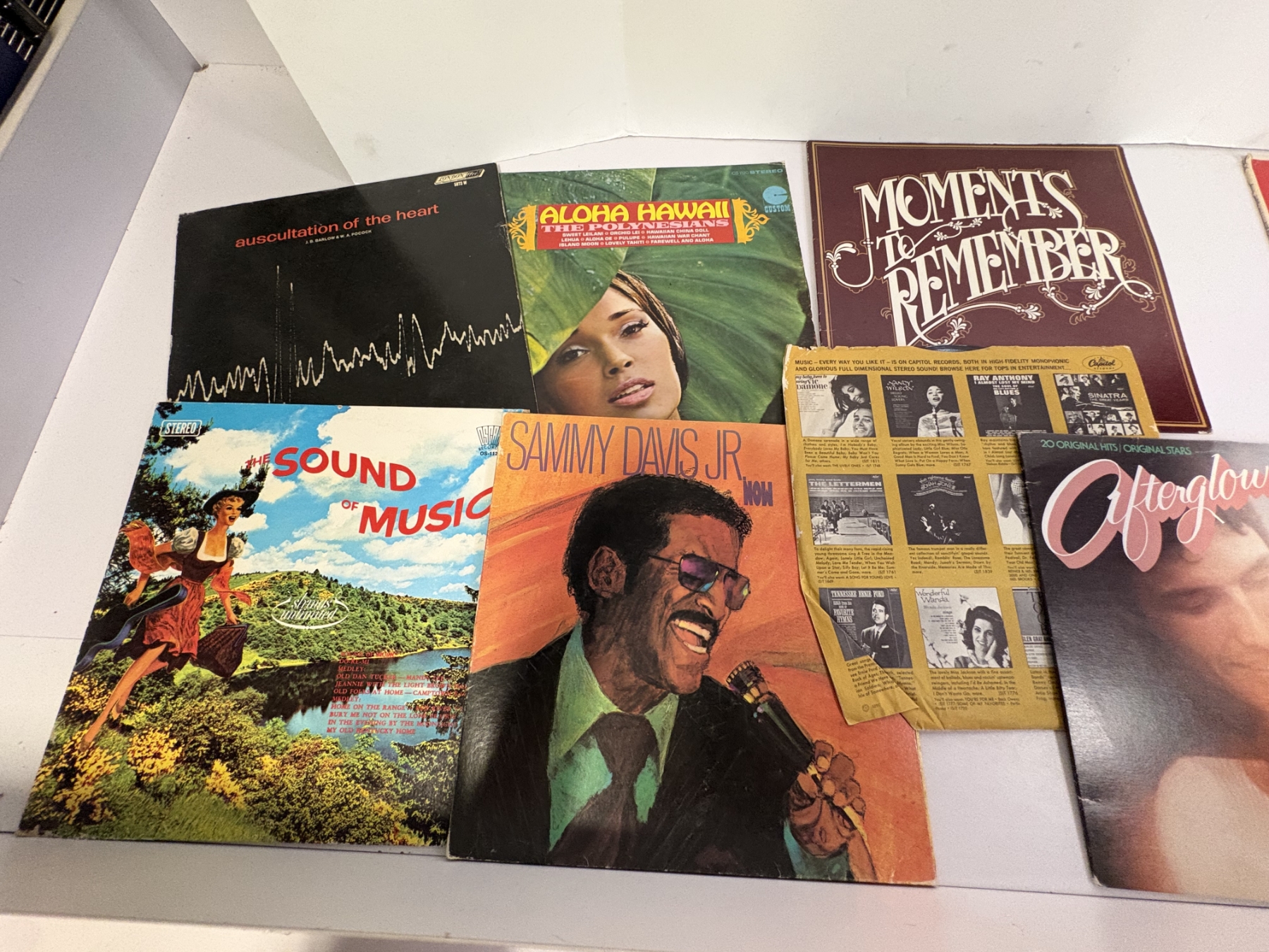 9 Records in Covers - The Sound of Music - Auscultation of the Heart - Aloha Hawaii the Polynesians - Moments to Remember - Roger Williams Greatest Hits - Here Comes Bobby - Afterglow - Sammy Davis Jr.