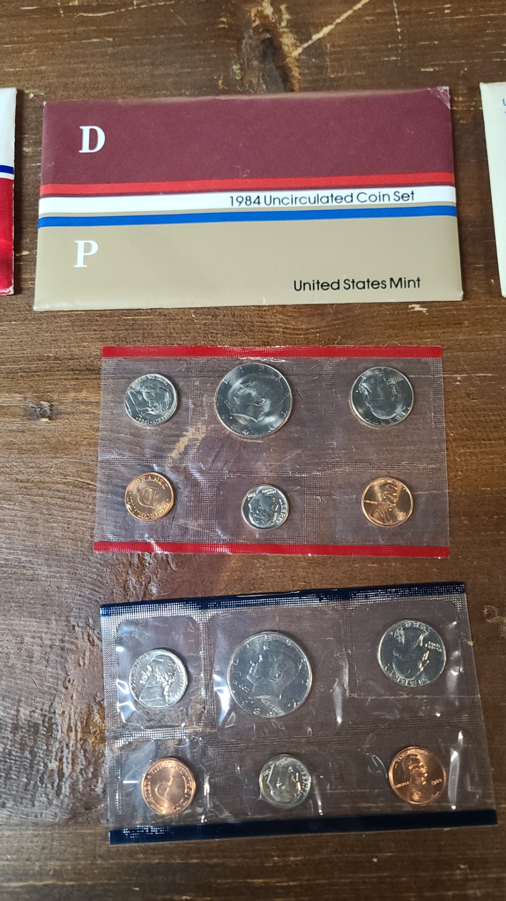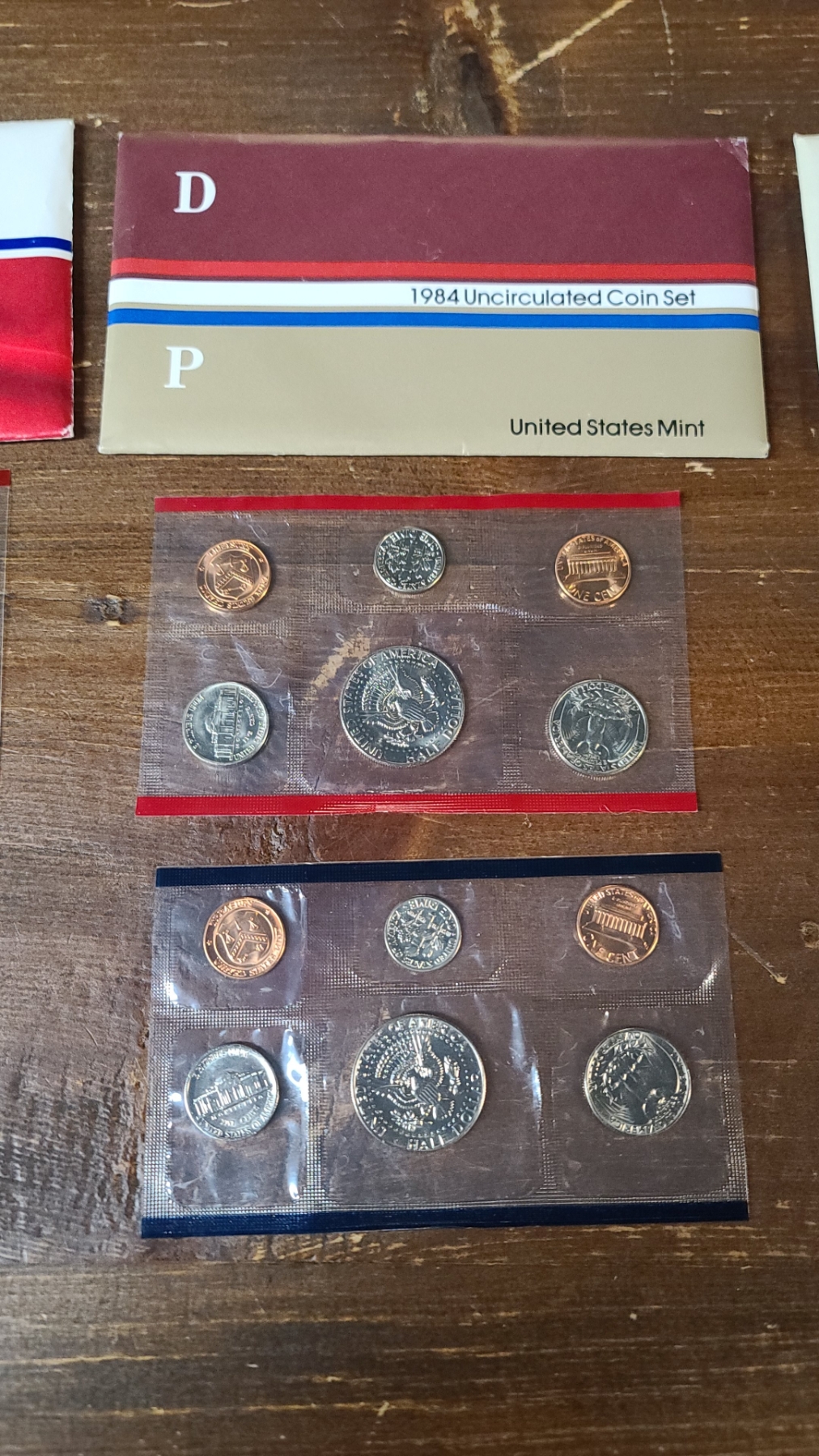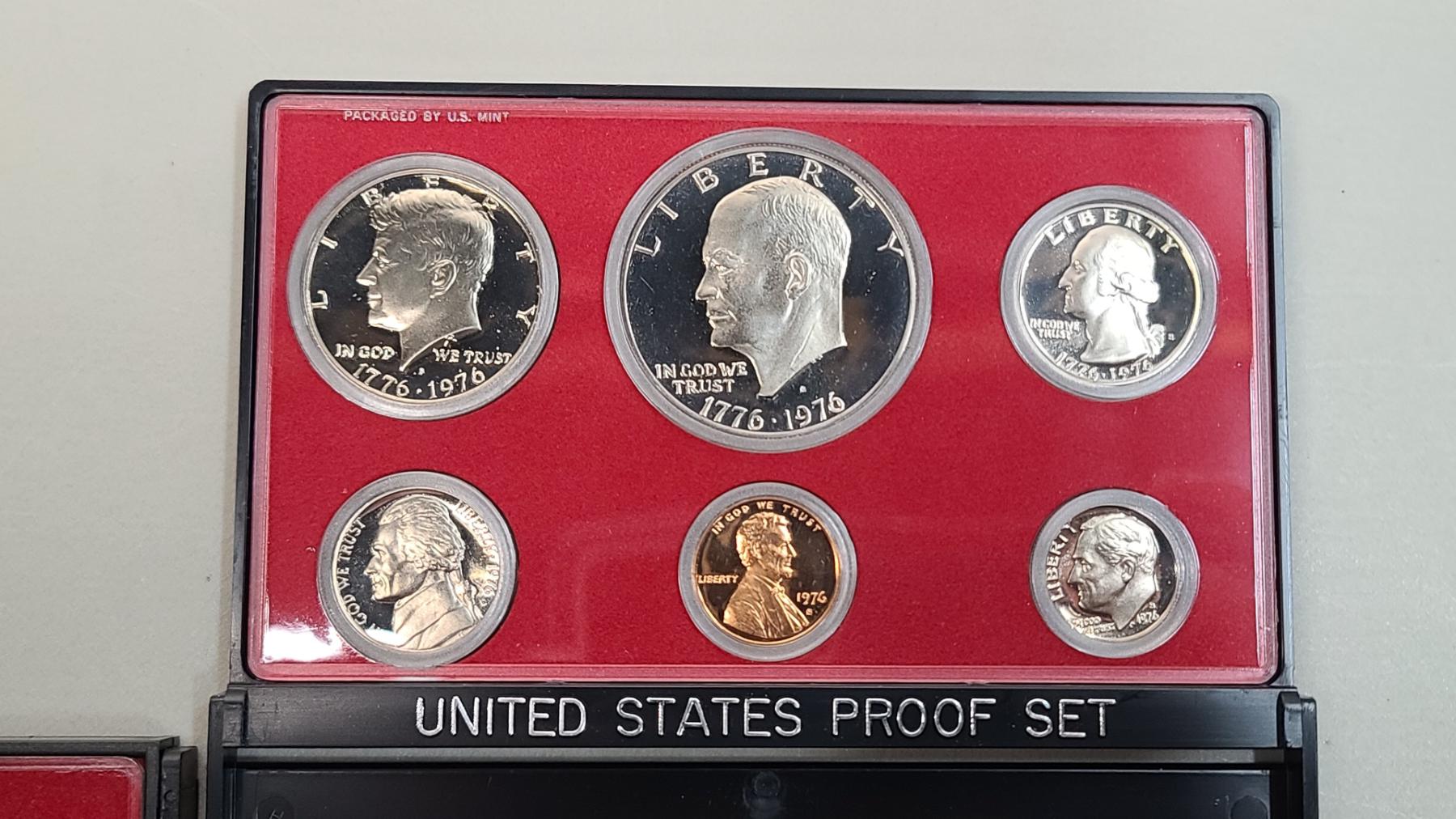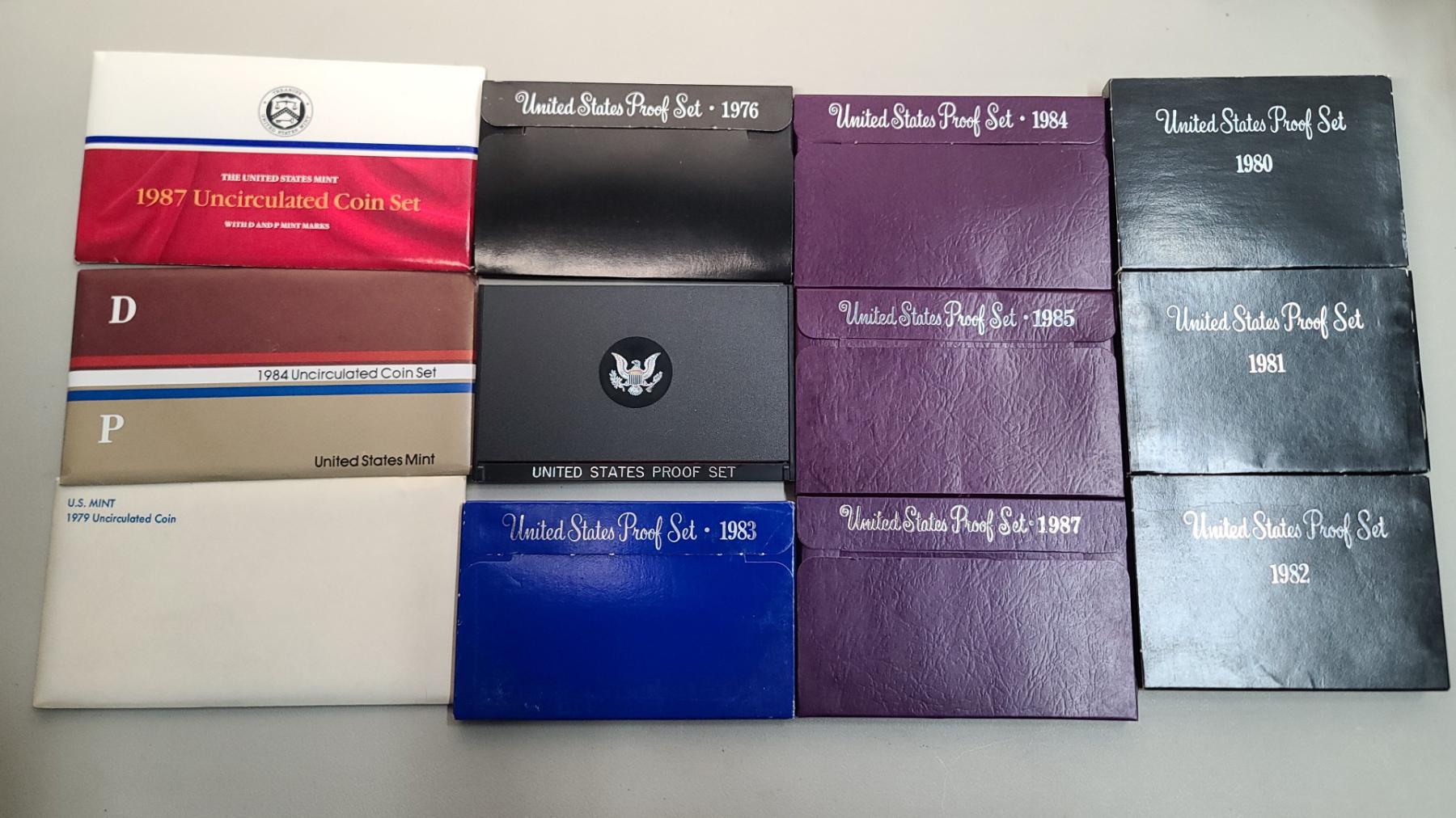 (9) United States Proof Coin Sets 1976 x2, 1983, 1984, 1985, 198, 1980, 1981 &1982 (3) Uncirculated US Mint Coin Sets 1979, 1984 & 1987