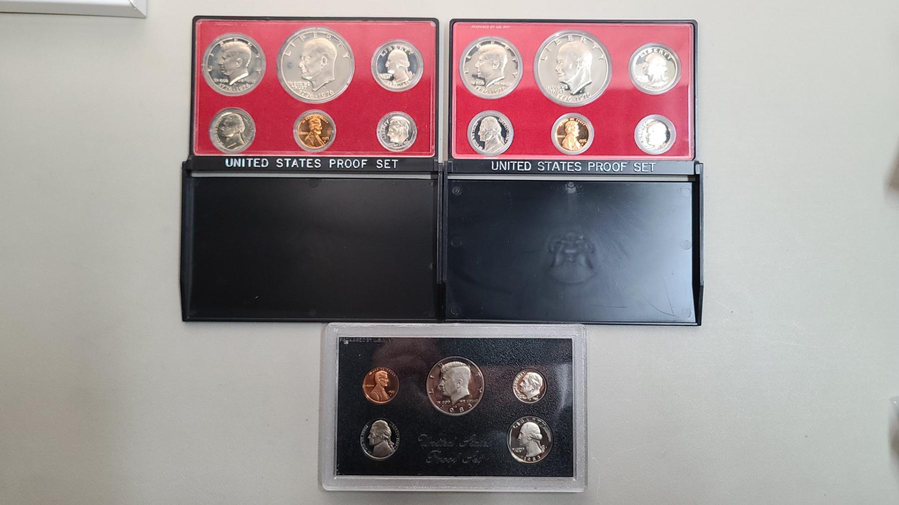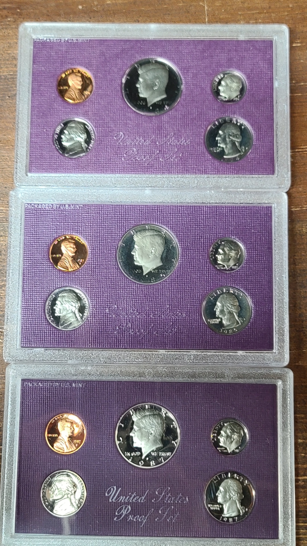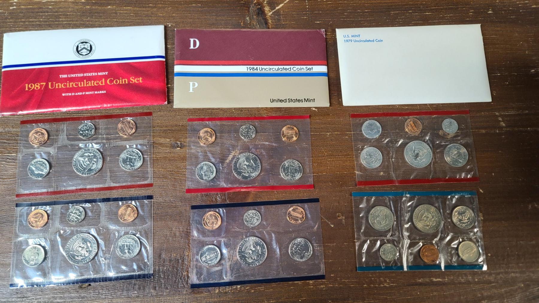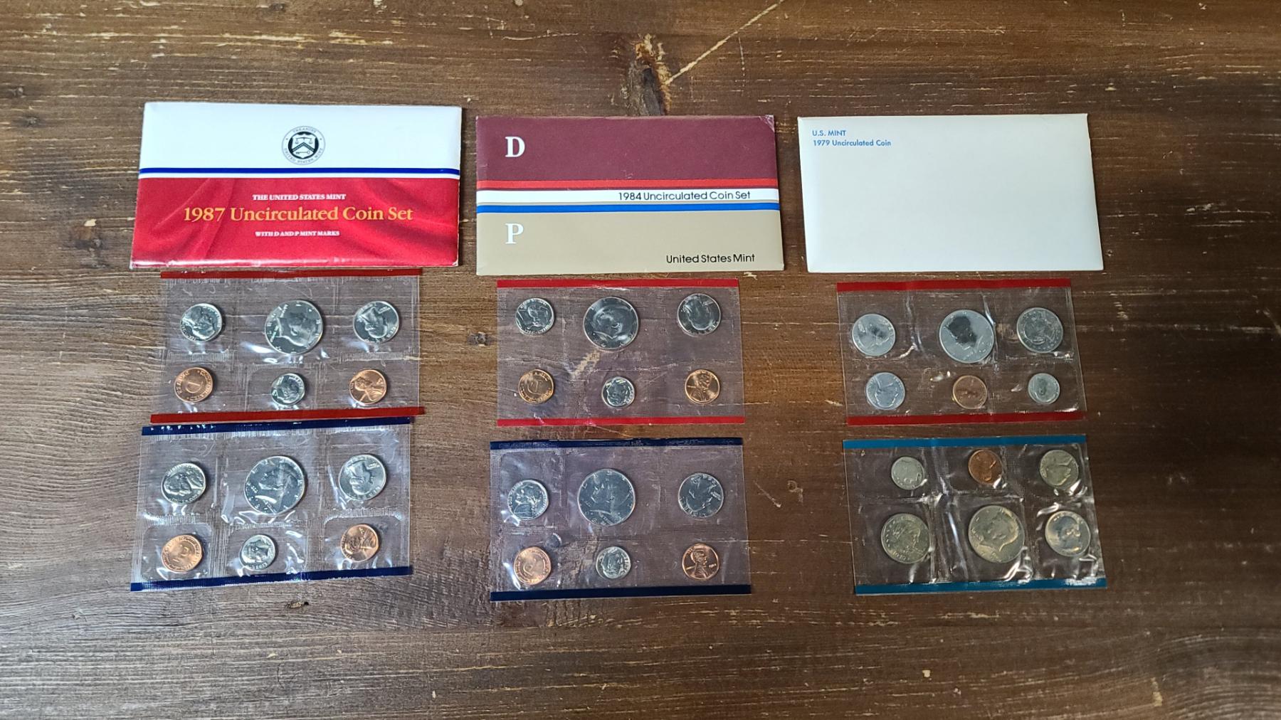 (9) United States Proof Coin Sets 1976 x2, 1983, 1984, 1985, 198, 1980, 1981 &1982 (3) Uncirculated US Mint Coin Sets 1979, 1984 & 1987
