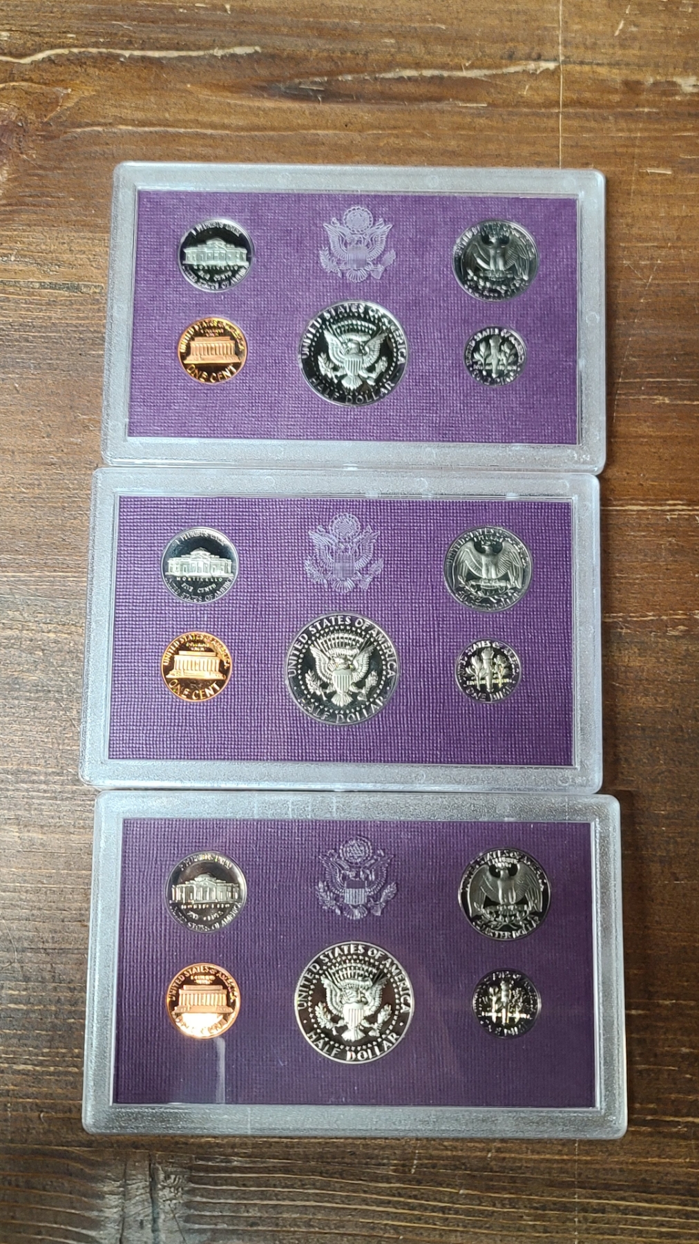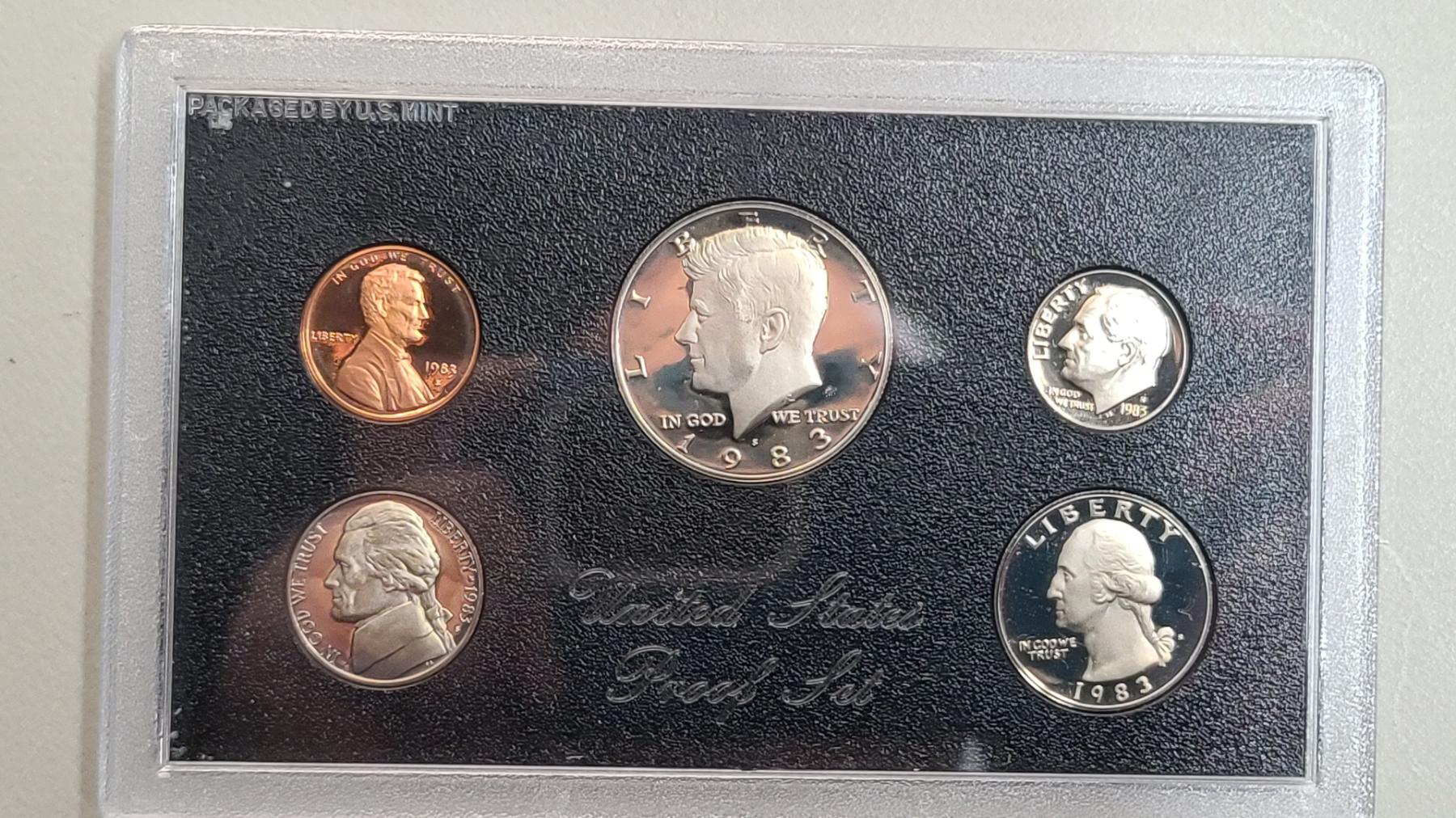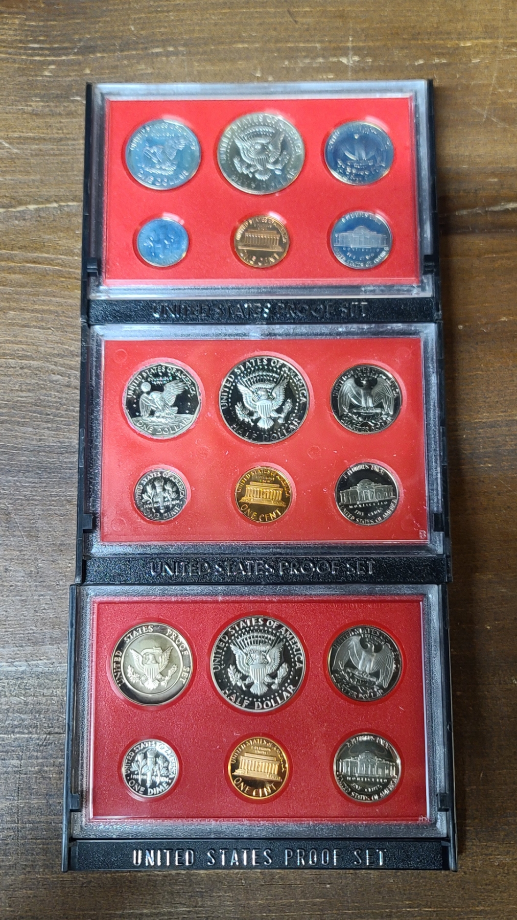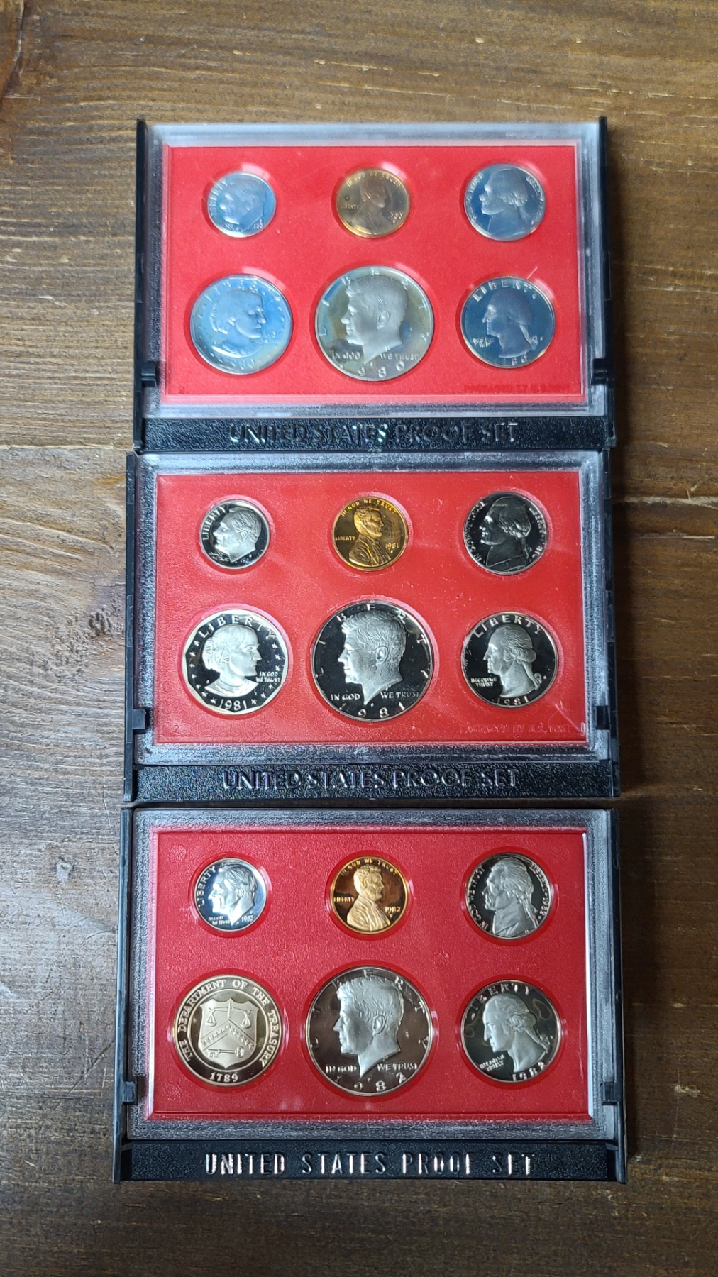 (9) United States Proof Coin Sets 1976 x2, 1983, 1984, 1985, 198, 1980, 1981 &1982 (3) Uncirculated US Mint Coin Sets 1979, 1984 & 1987