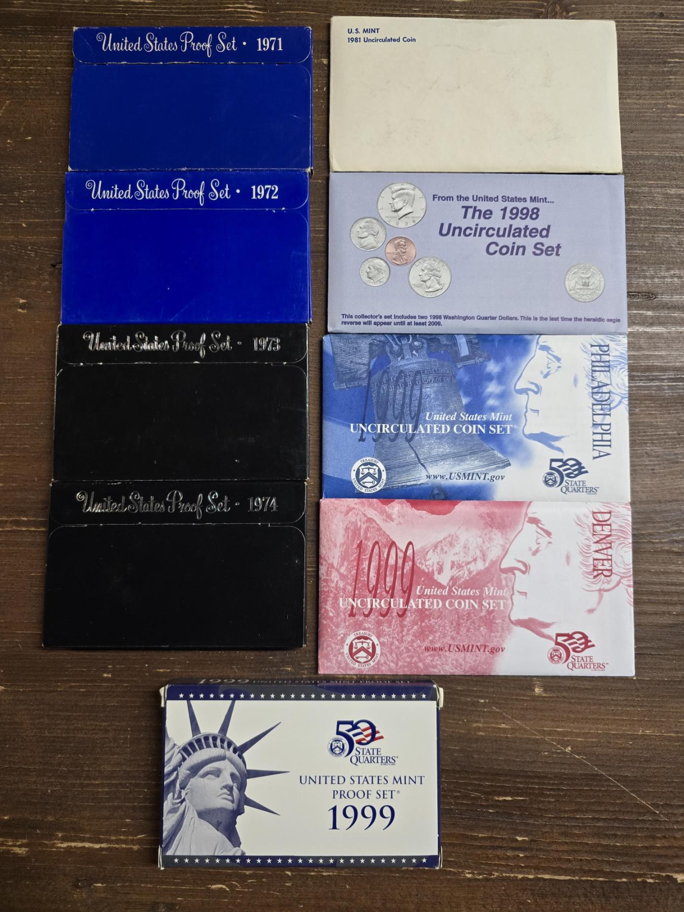 (9) United States Proof Sets - 1971, 1972, 1973, 1974, 1981, 1998, 1999