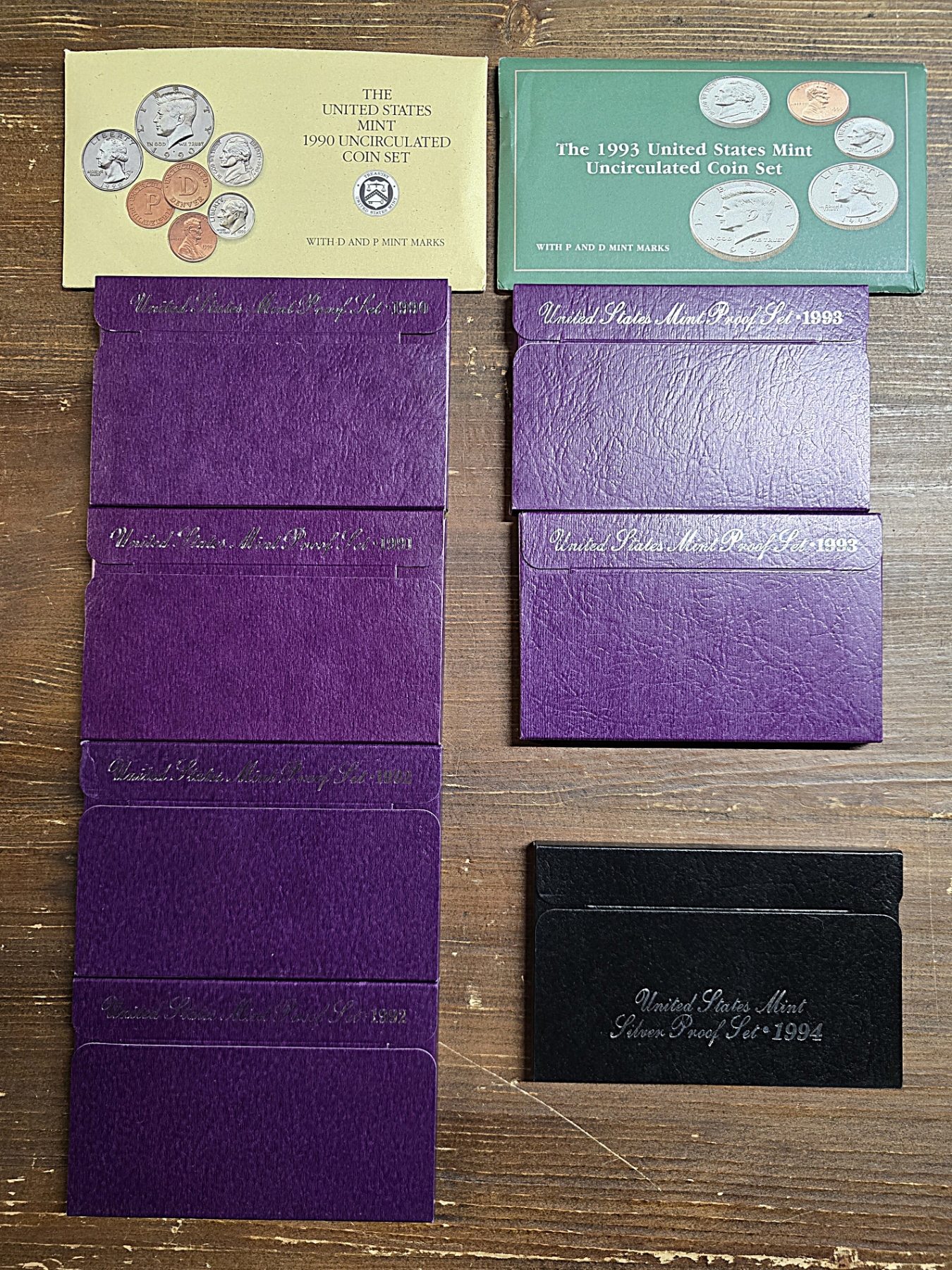(9) United States Proof Sets - 1990-1993 & 1994 Silver Proof Set