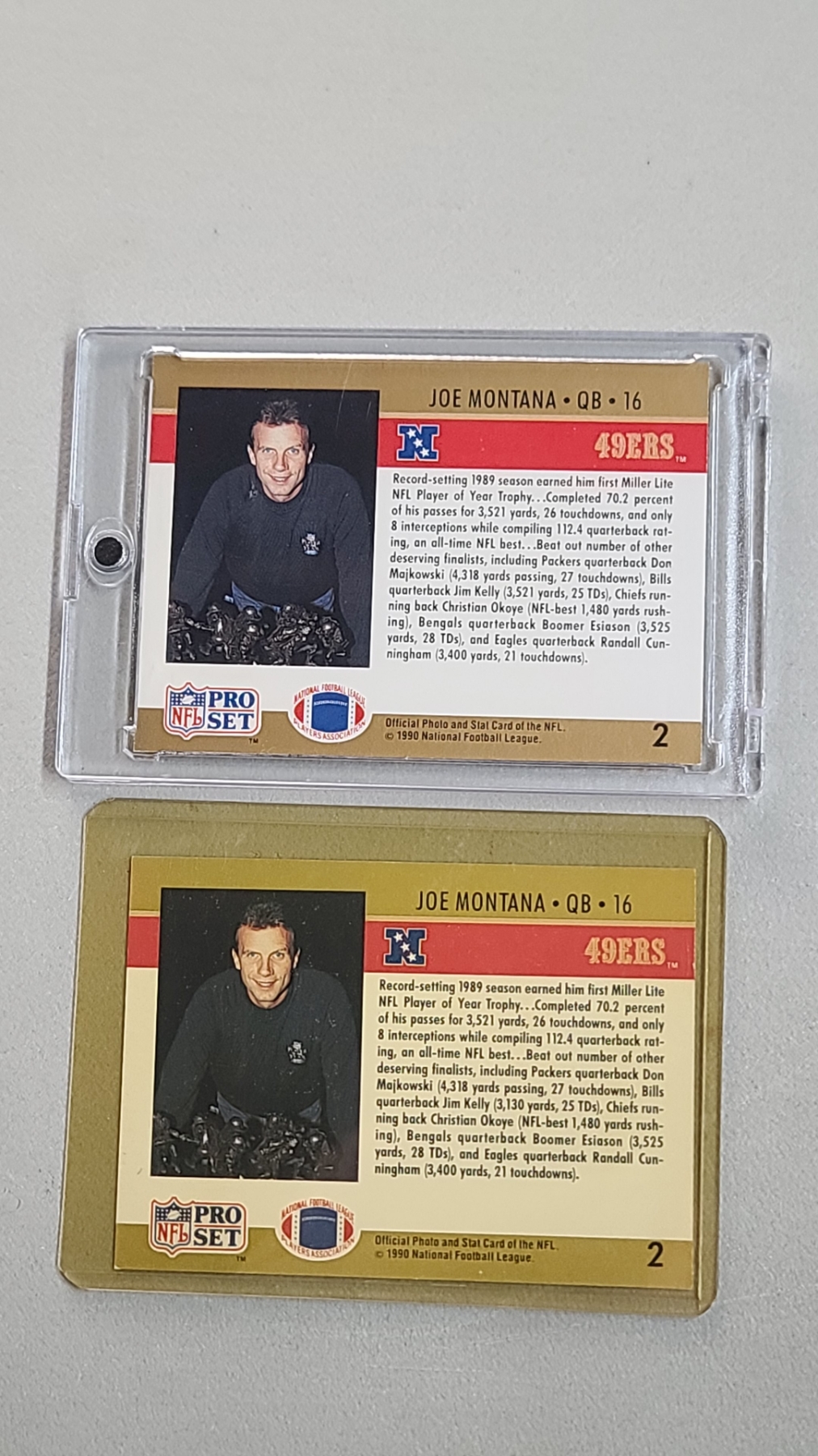 1990 Pro Set 1989 NFL Player Of The Year Joe Montana 49'ers #12 Error & No Error Football Trading Cards