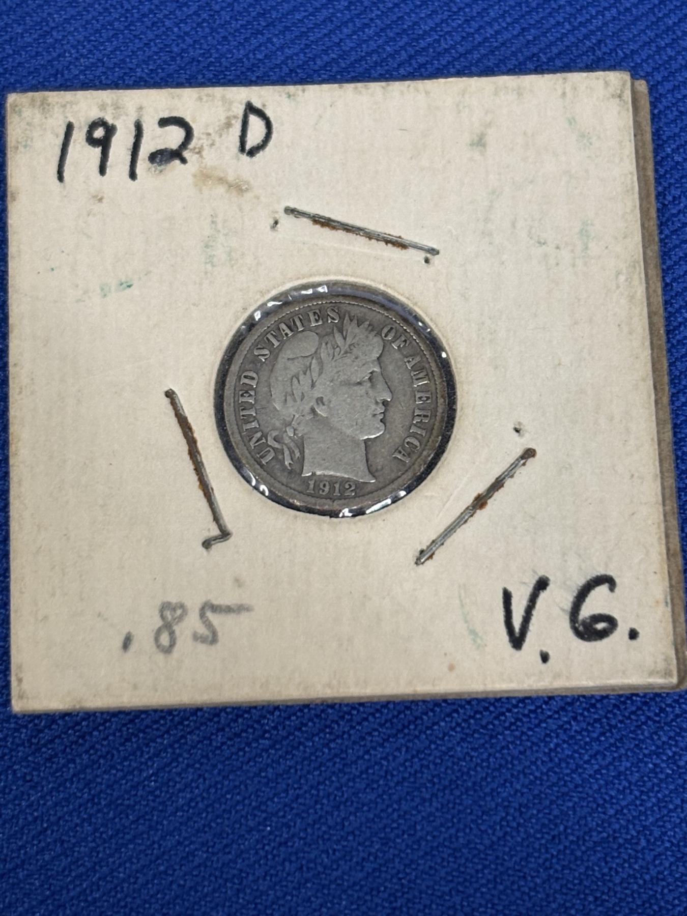 90% Silver - 1912 D Barber Dime - Mintage 11,760,000