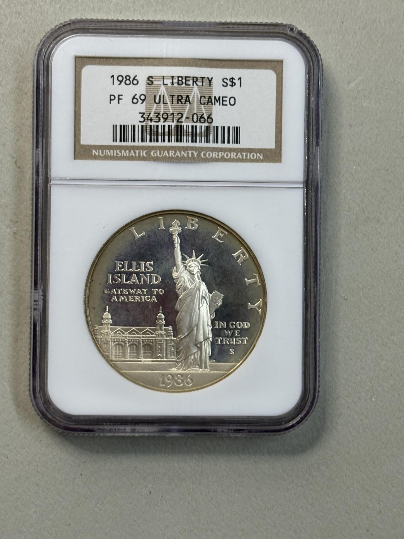 90% Silver - 1986 S Liberty $1 PF 69 Ultra Cameo- Ellis Island - NGC - Mintage 6,414,638