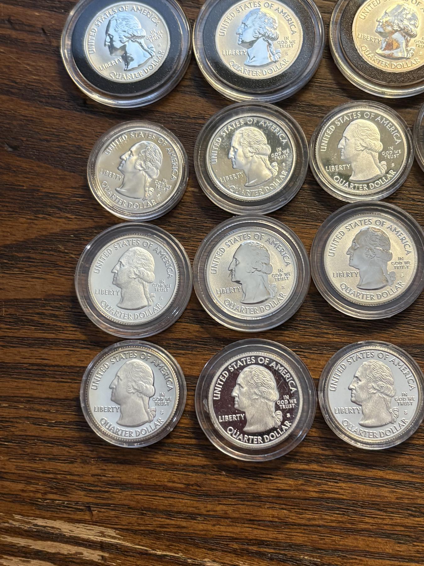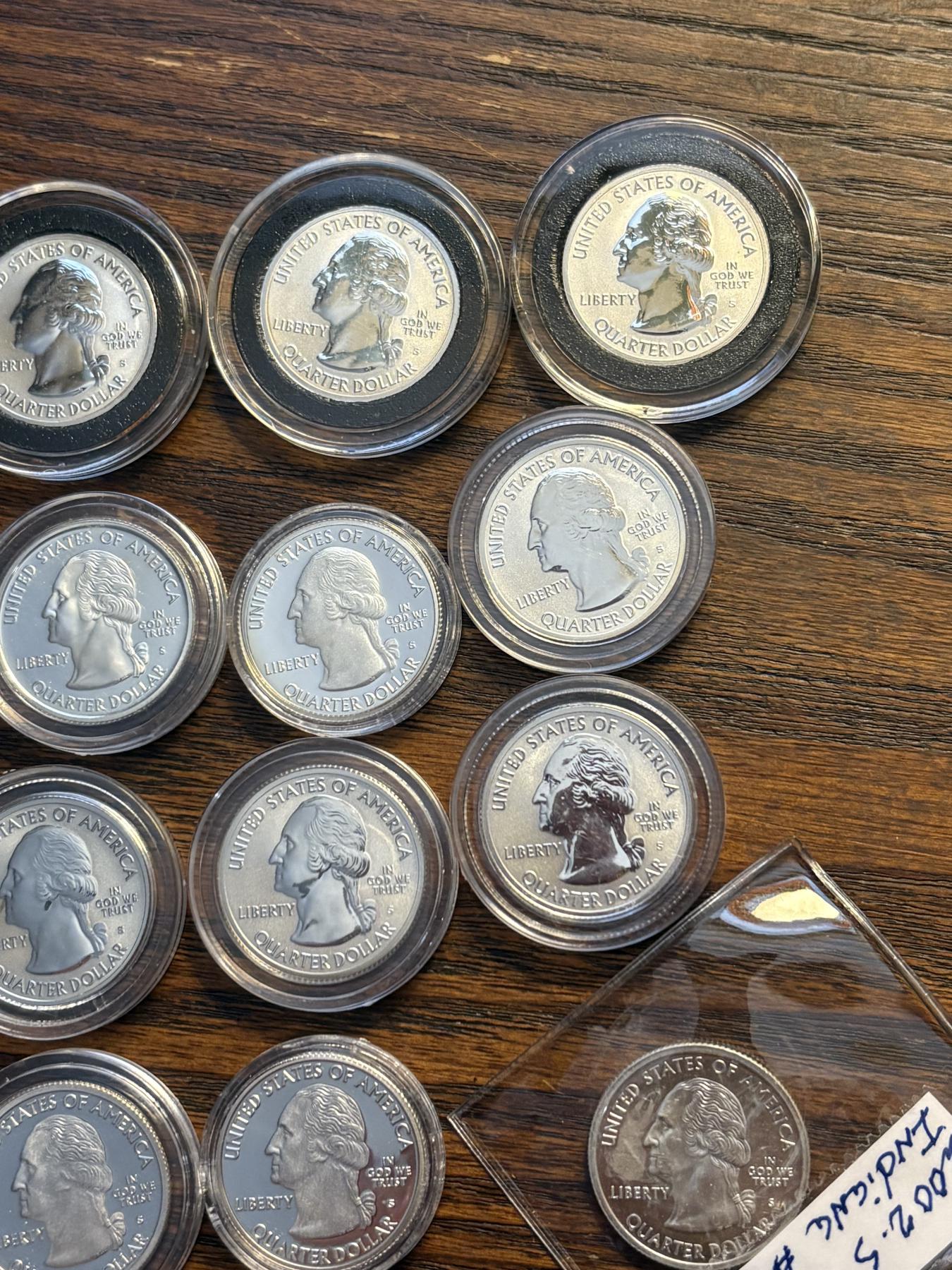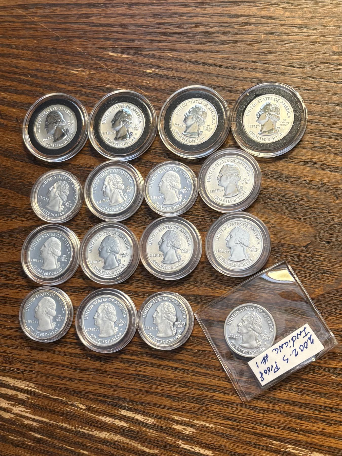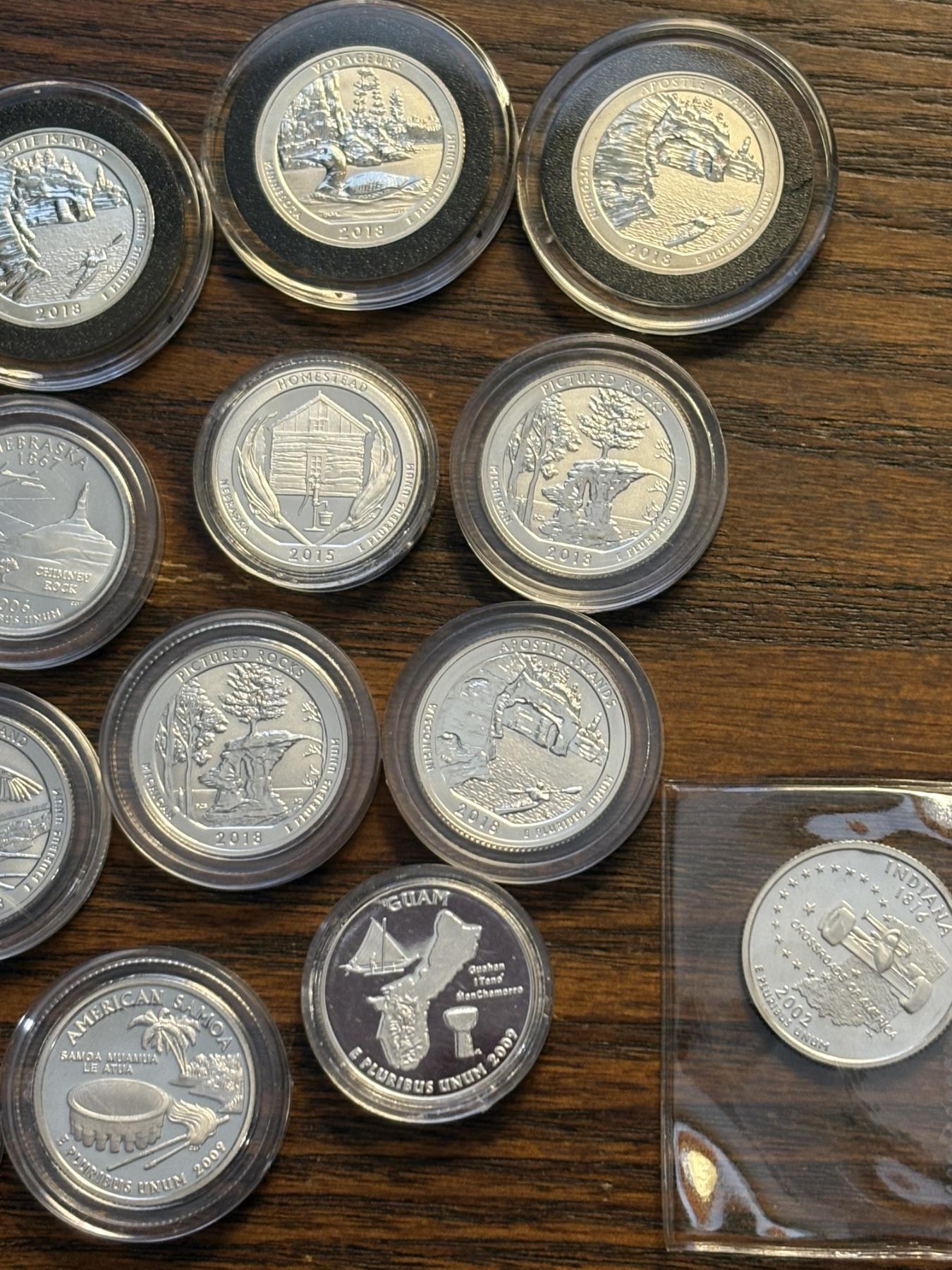 90% Silver - 2009-S Quarters - Struck by the U.S. Mint - FV $4.00 - 2002, 2005, 2006, 2009 (2), 2011, 2015 (2) & 2018 (8) - All Encapsulated except one in Plastic Packaging - Kansas - Indiana - Nebraska - American Samoa - Guam - Vicksburg - Bombay Hook - Homestead - (4) Apostle Islands - (2) Pictured Rocks - Cumberland Island - Voyageurs