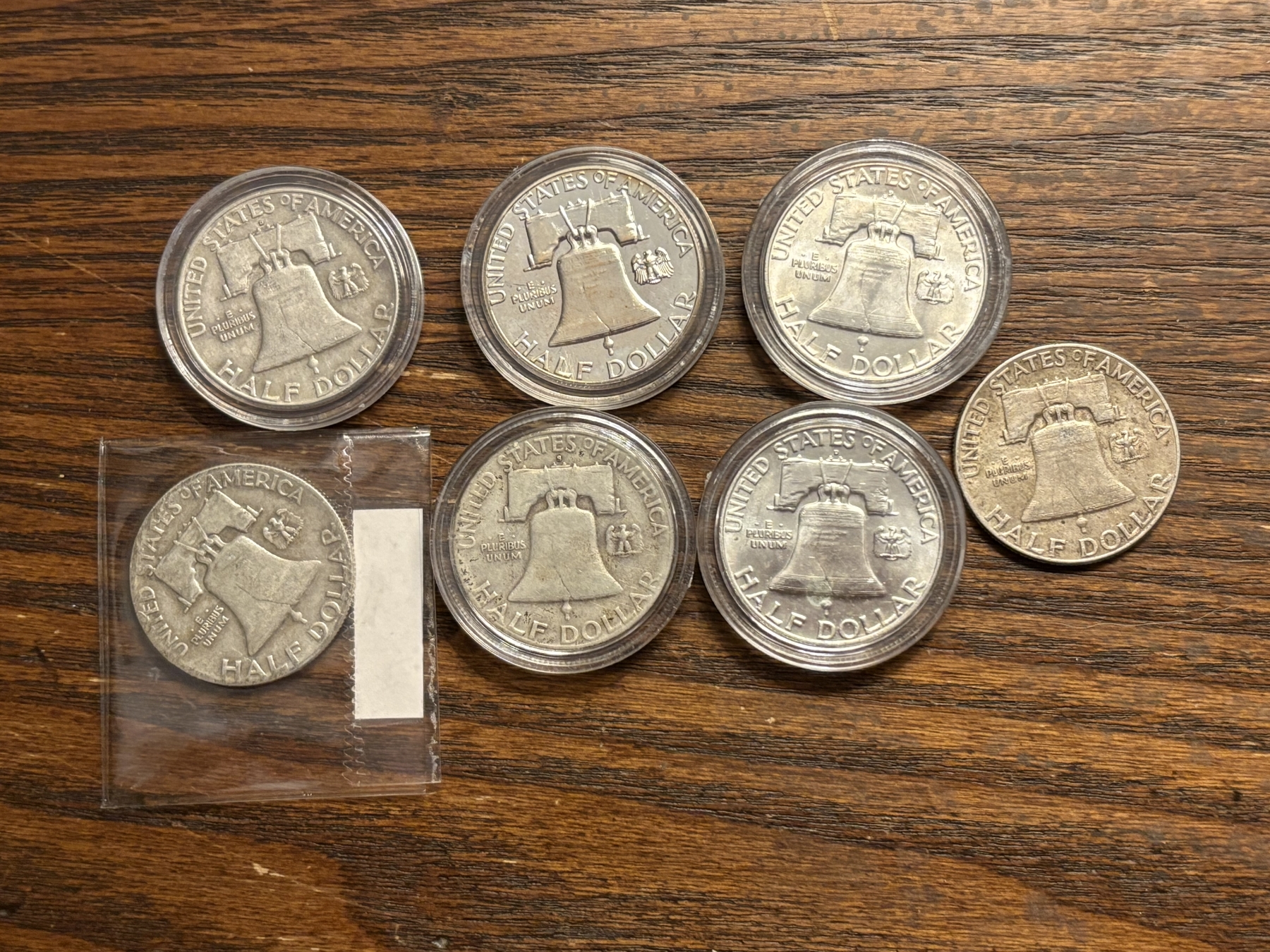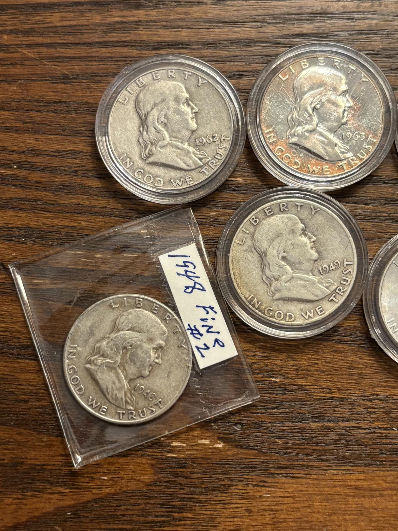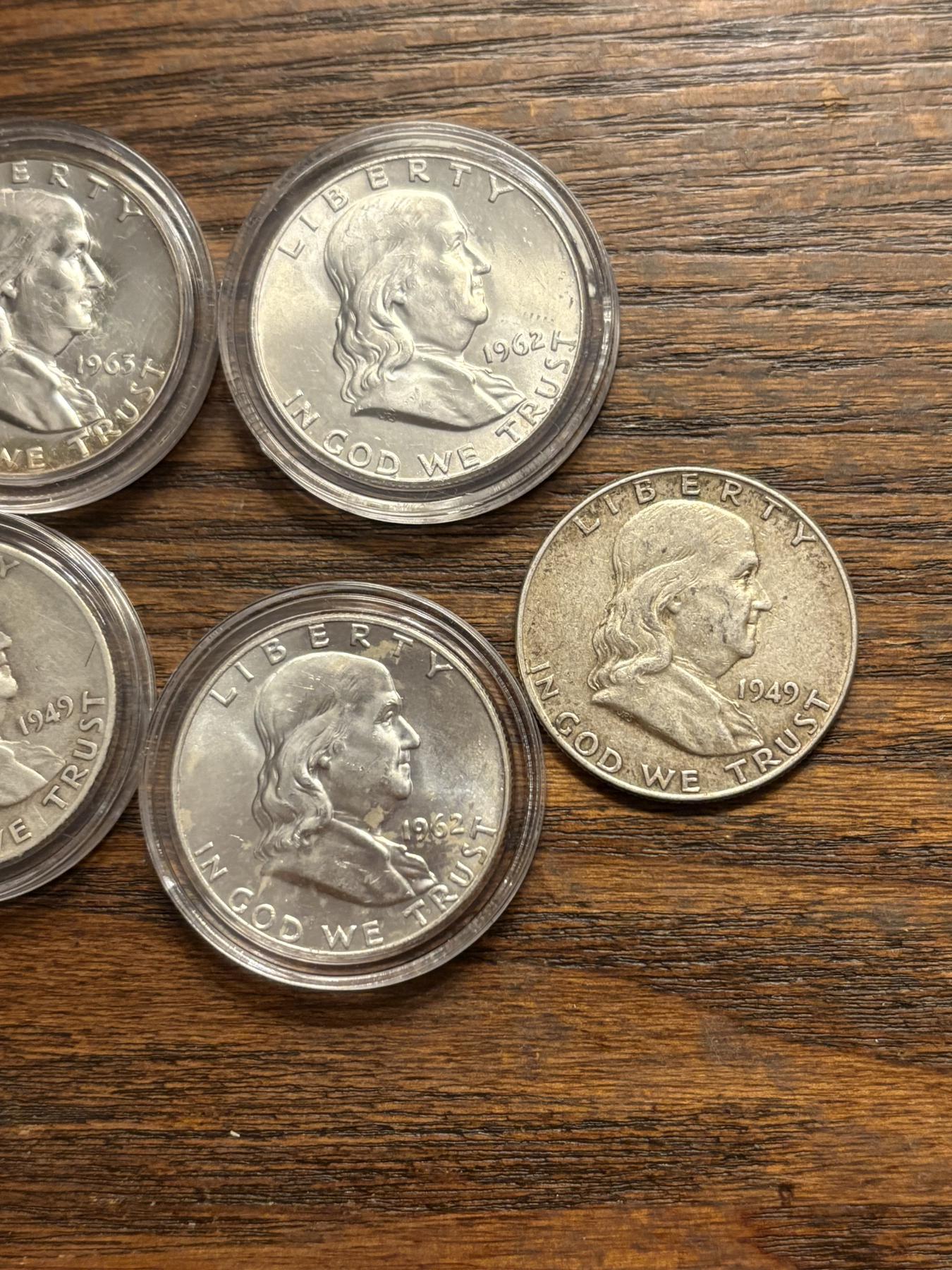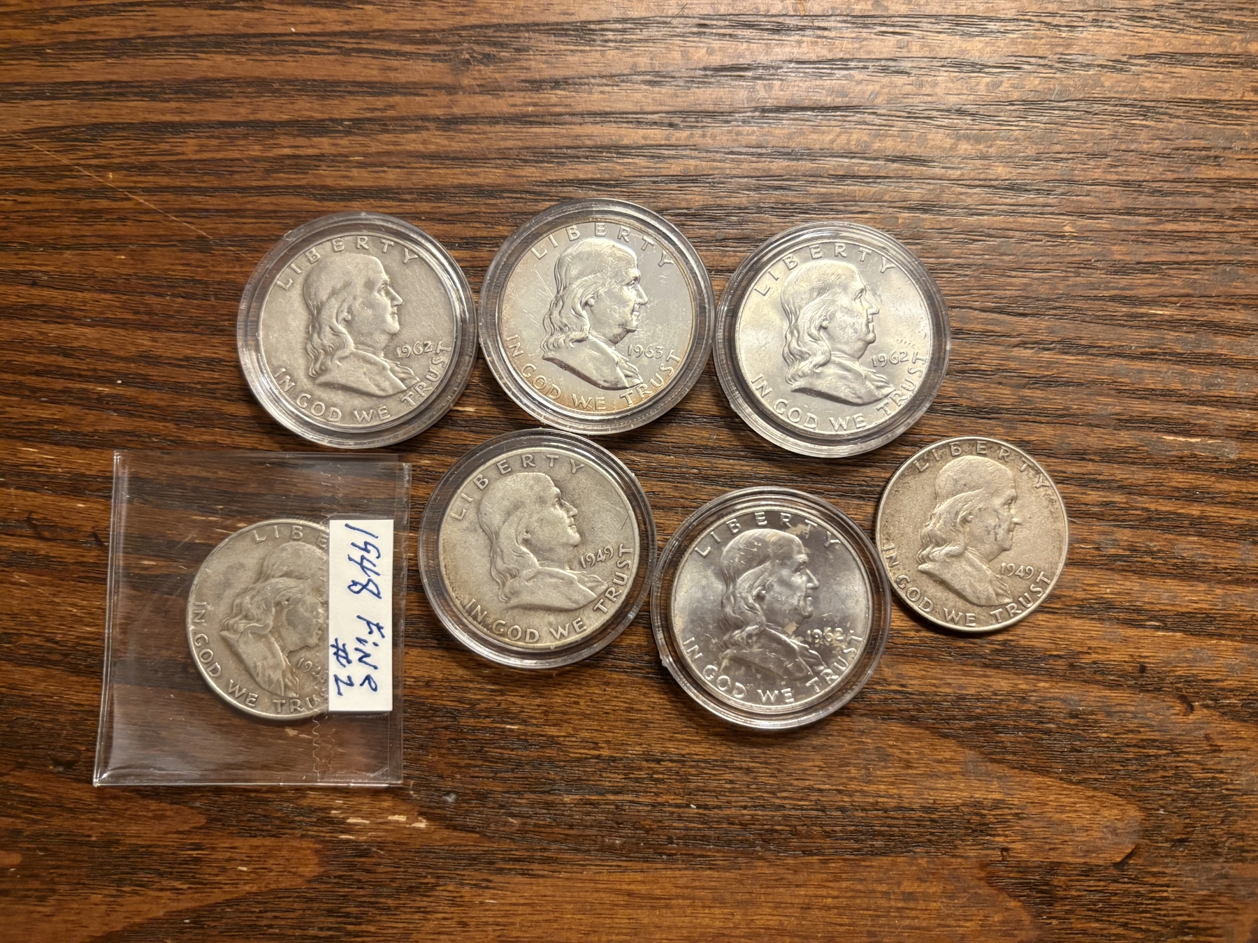 90% Silver - Franklin Half Dollars - FV $3.50 - 1948, 1949 (2), 1962 (3) & 1963 - (5) Encapsulated