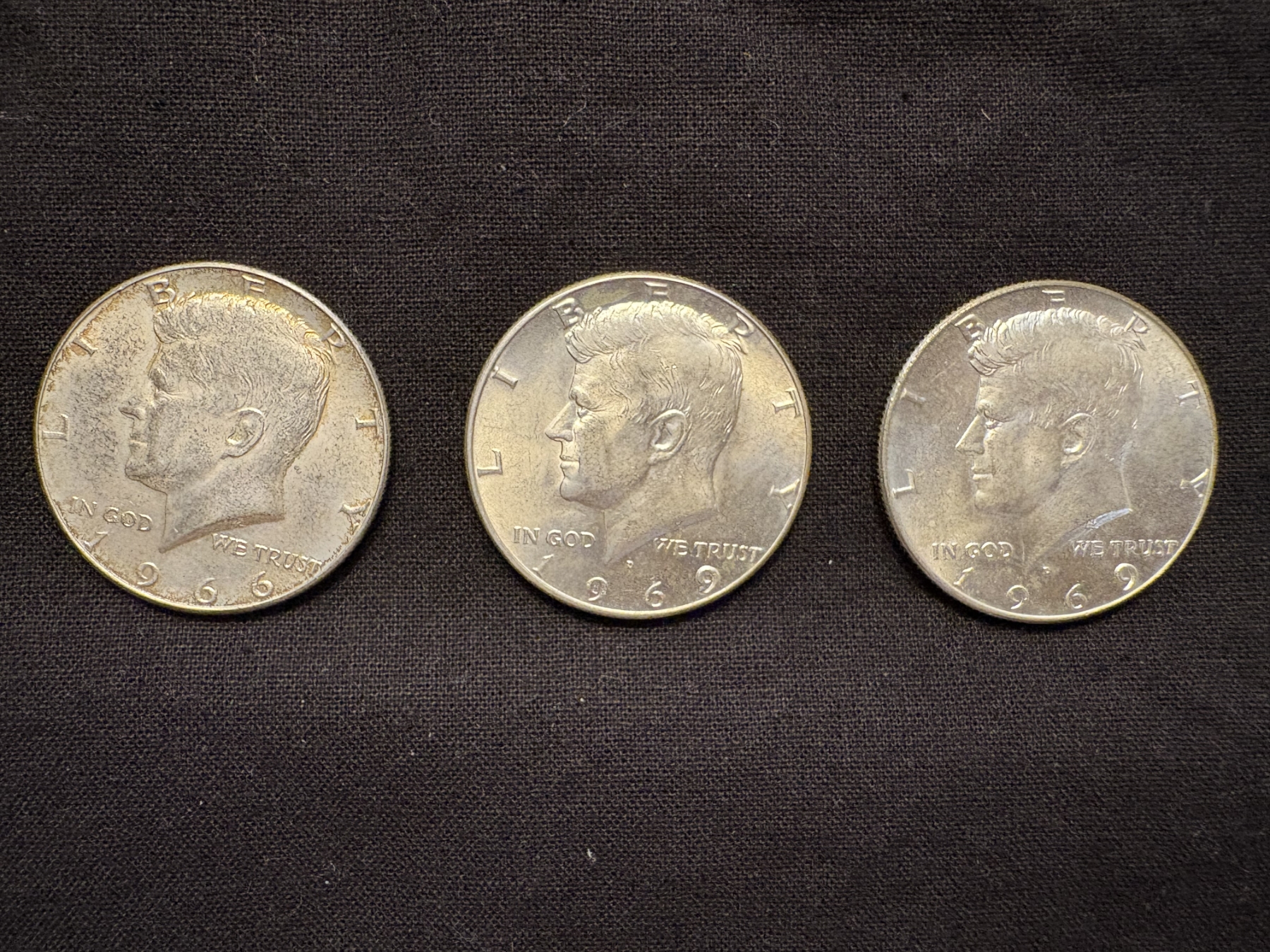 90% Silver Kennedy Half Dollars - FV $1.50 - 1966& 1969 (2)