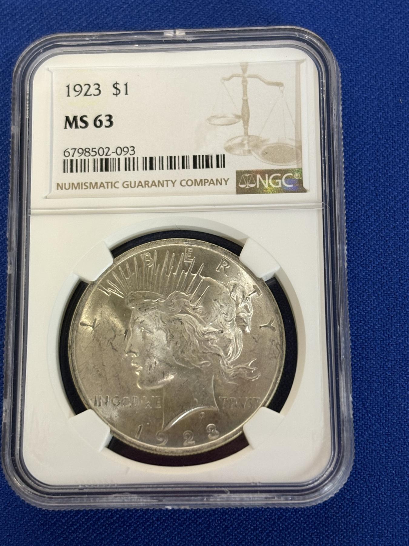 90% Silver - MS 63 1923 Silver Peace Dollar - NGC