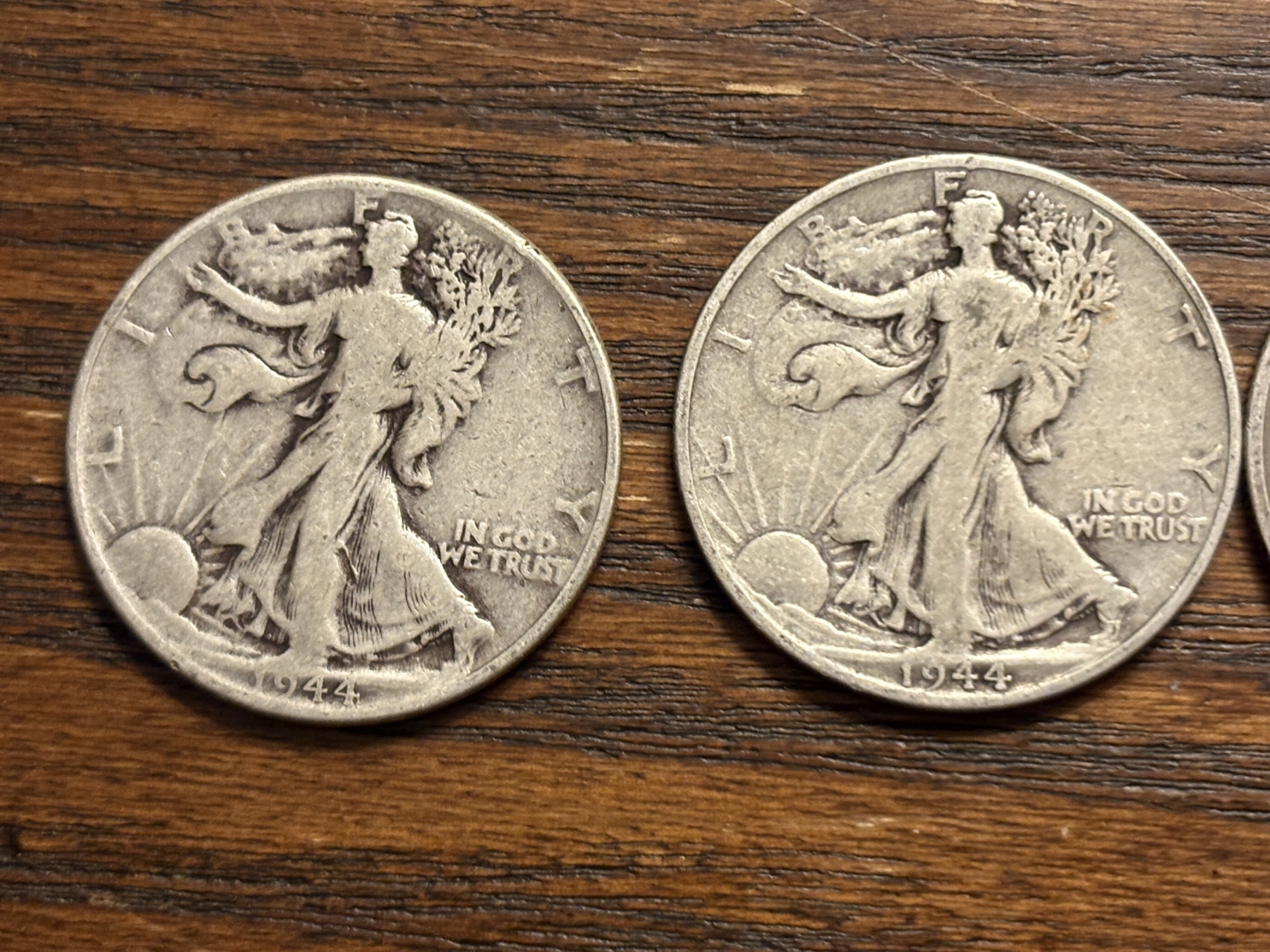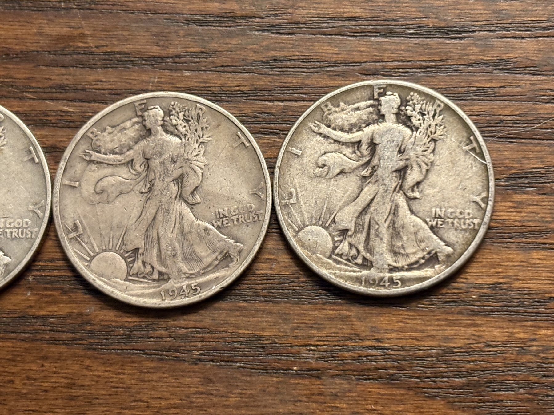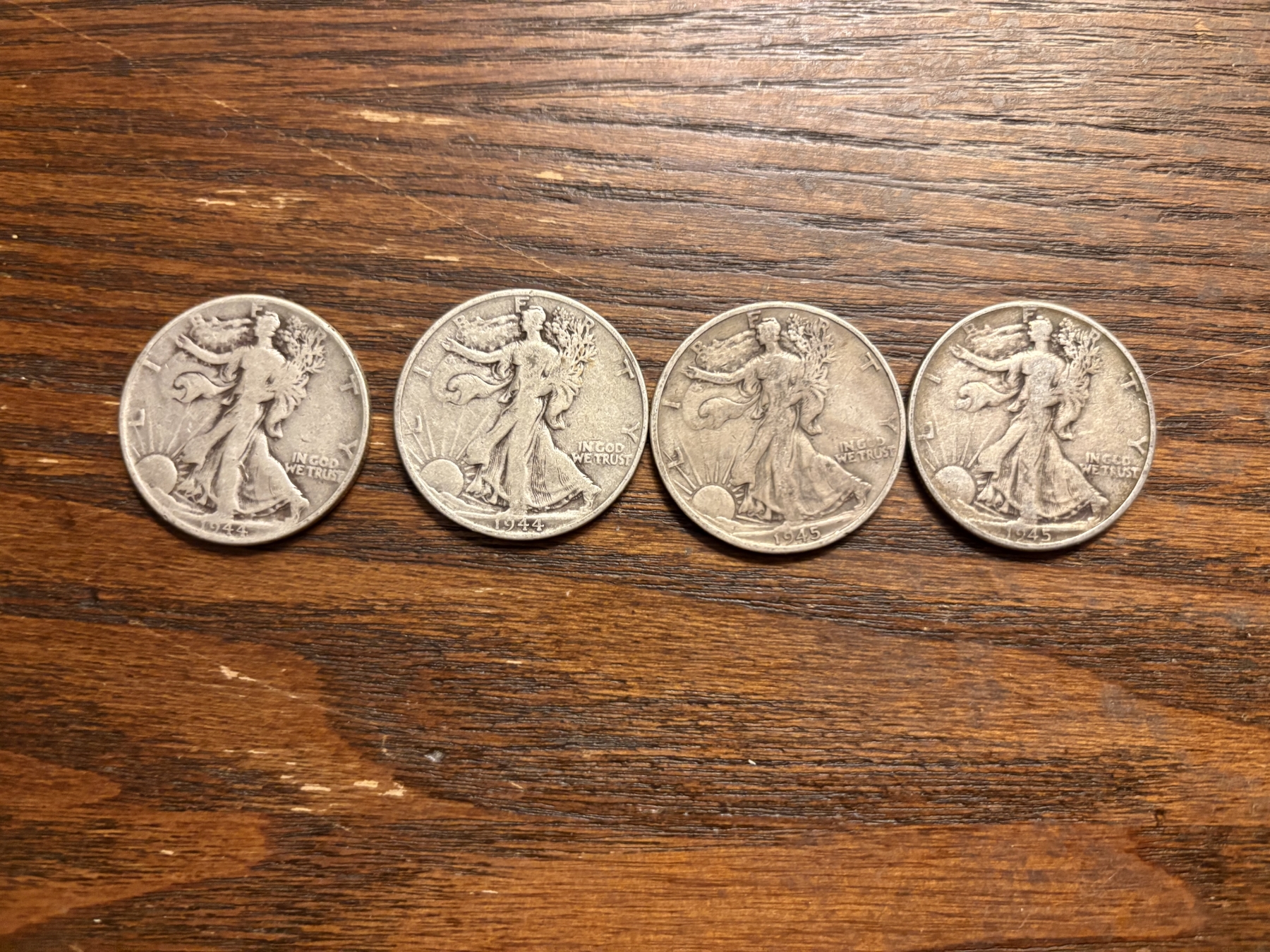 90% Silver - Walking Liberty Half Dollars - FV $2.00 - 1944 (2) & 1945 (2)