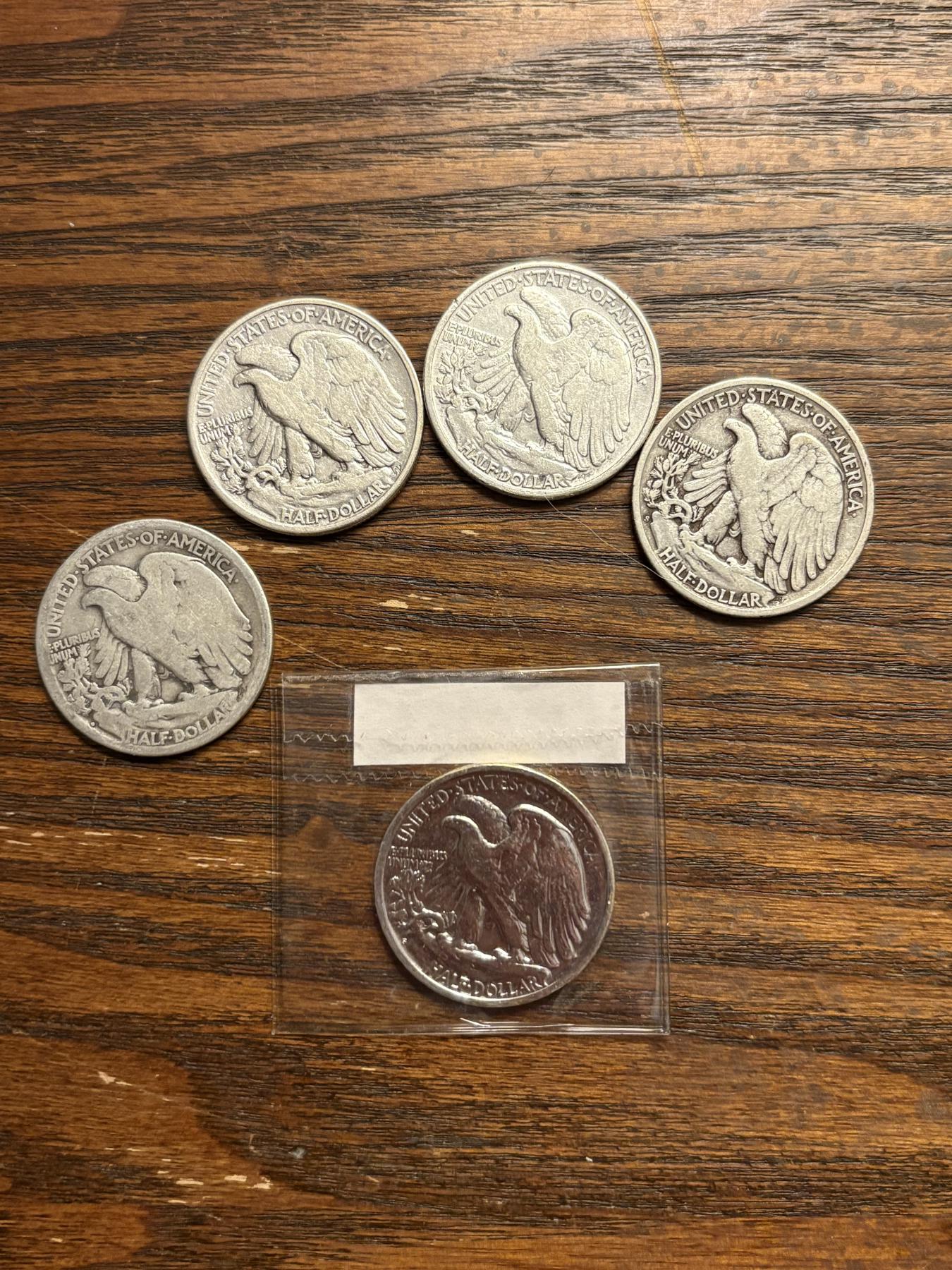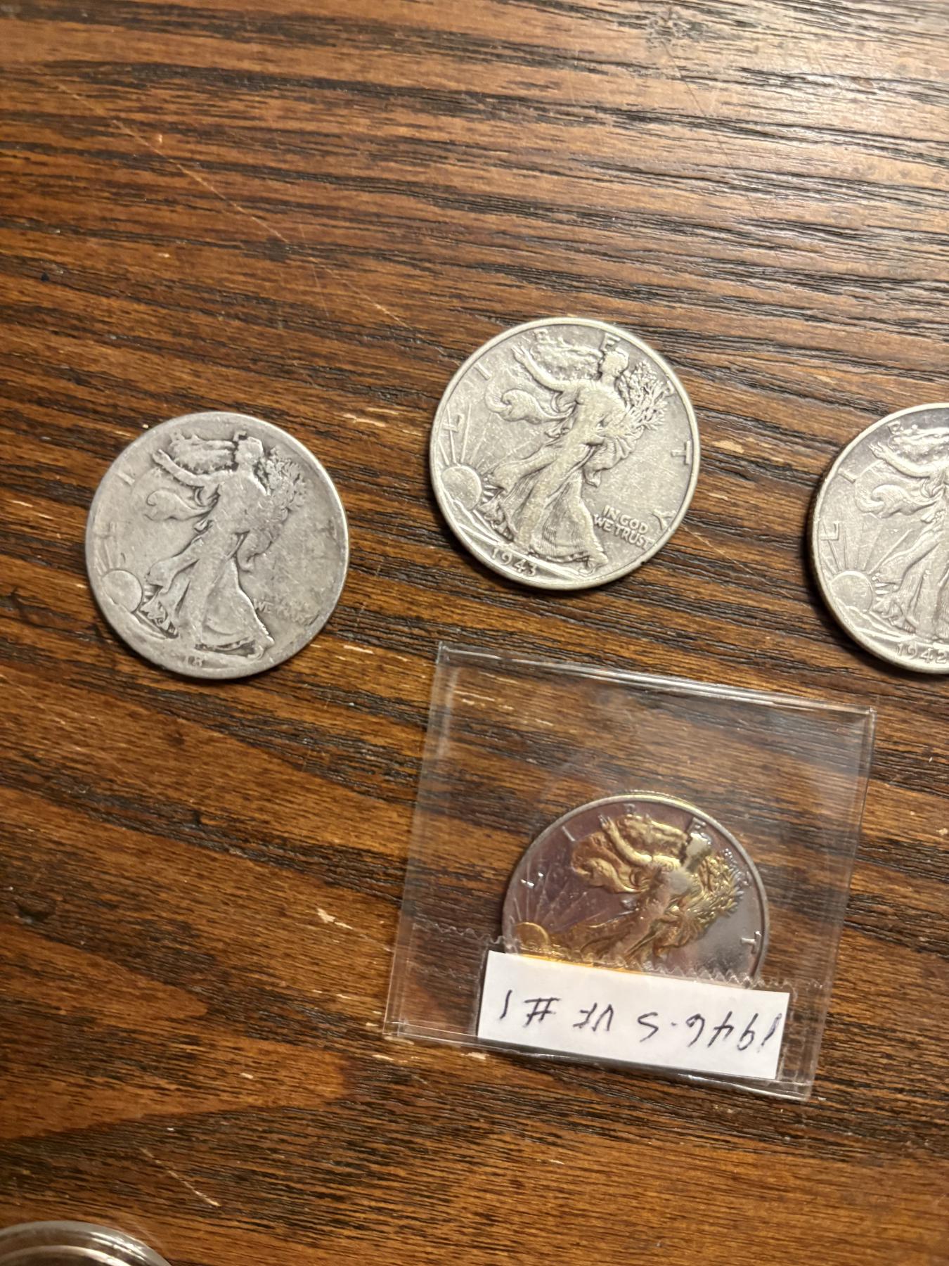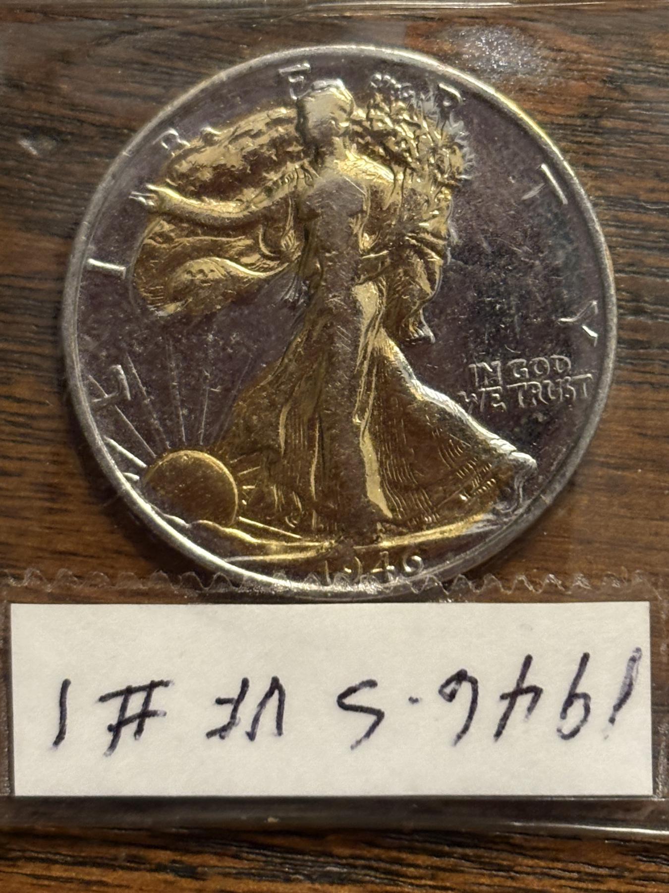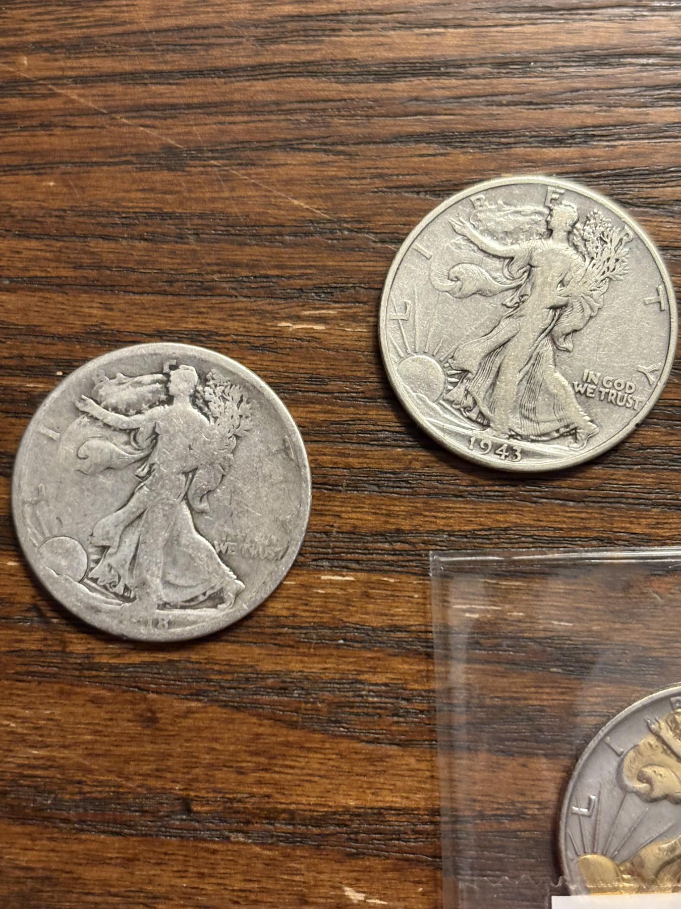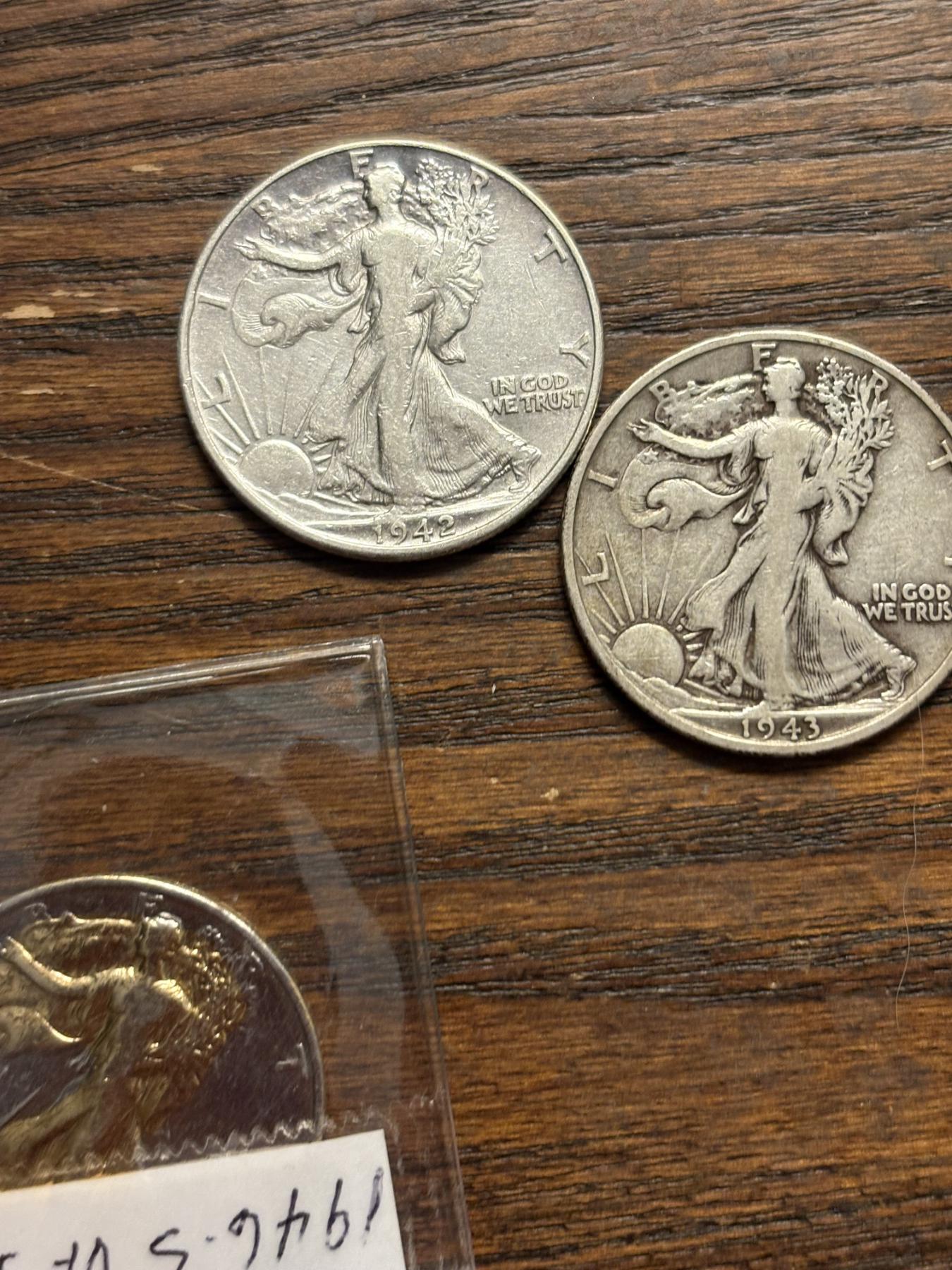 90% Silver - Walking Liberty Half Dollars - 1943 (2) - 1942 - Illegible Date & 1946-S Gold Plated - FV $2.50 - 3 encapsulated