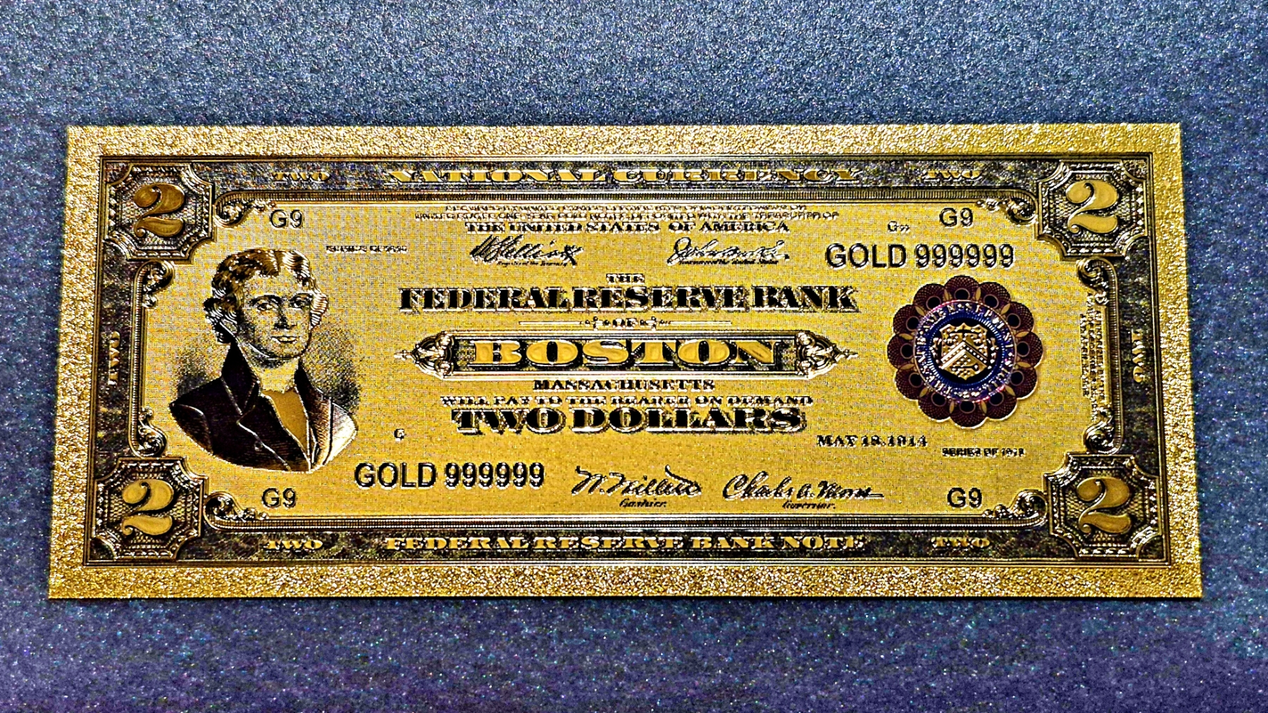 .999 GOLD FOIL U.S. $1 SERIES 1918 BATTLESHIP NOTE - IN PROTECTIVE SLEEVE - These laminated pure gold foil 24k or silver foil notes are great collectibles. Weight approx 3 - 4 grams EACH overall.