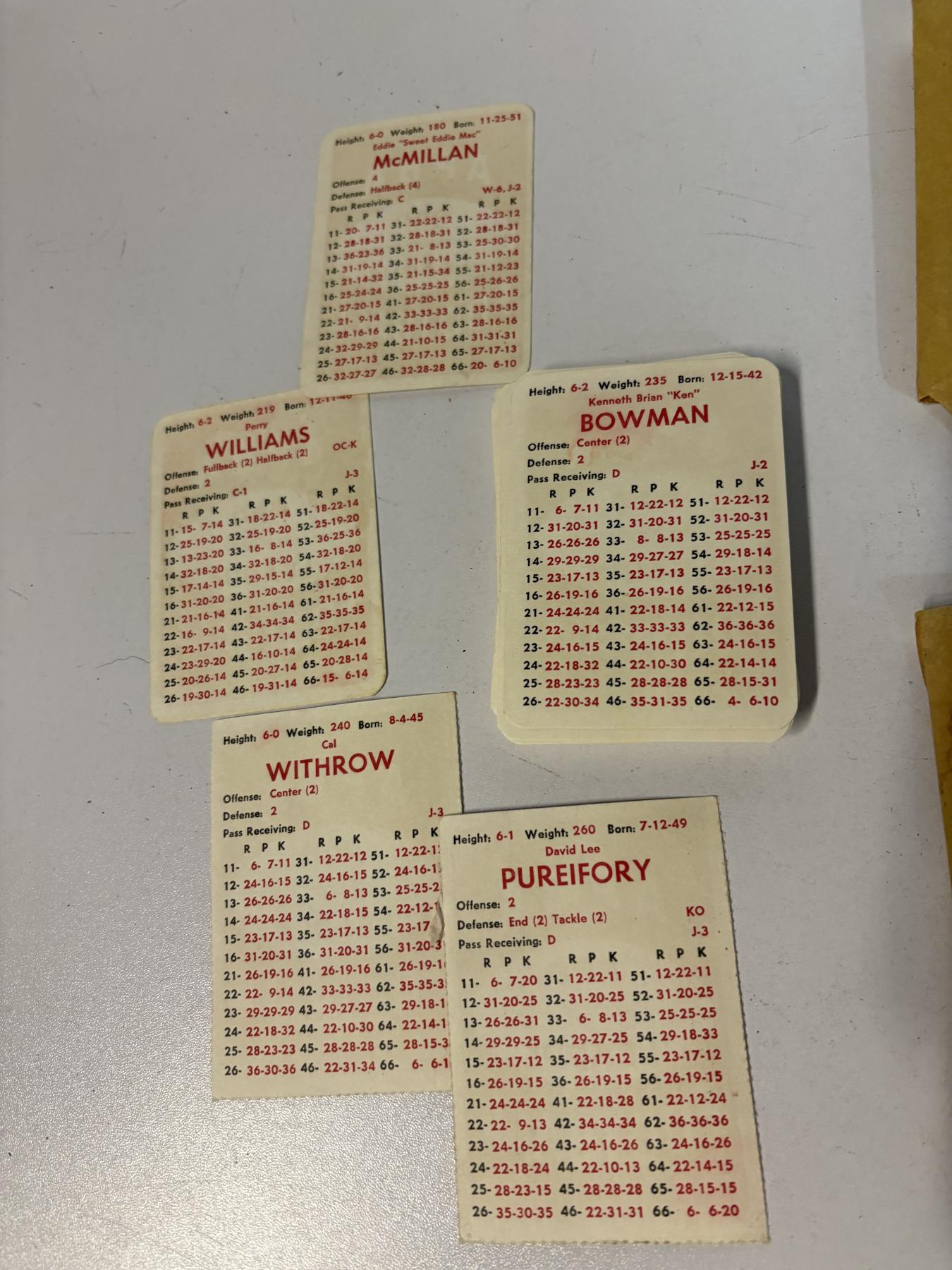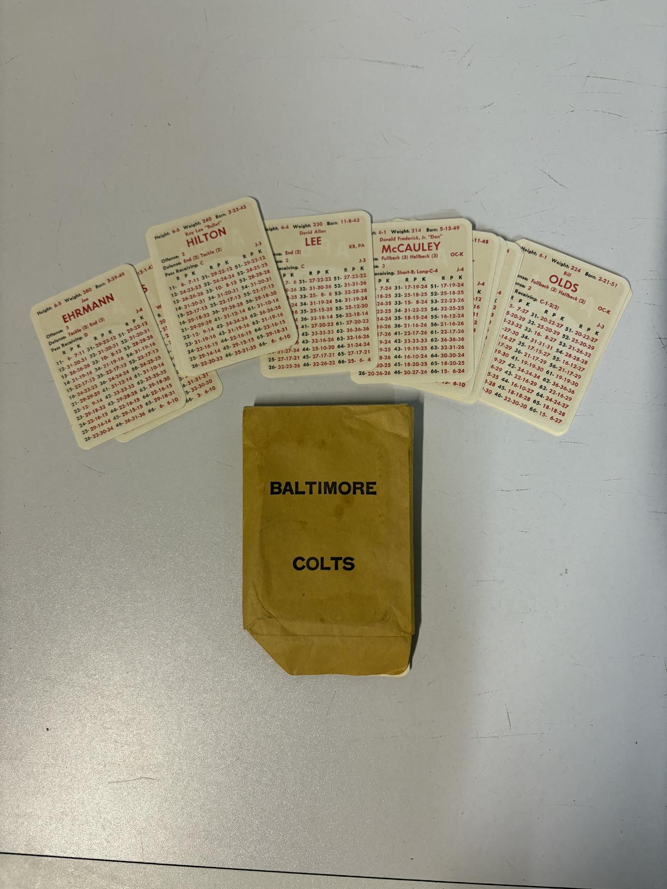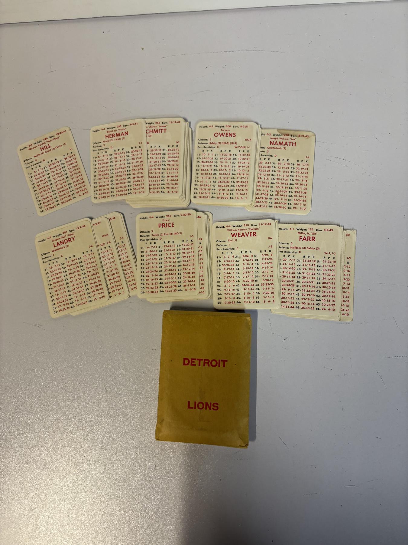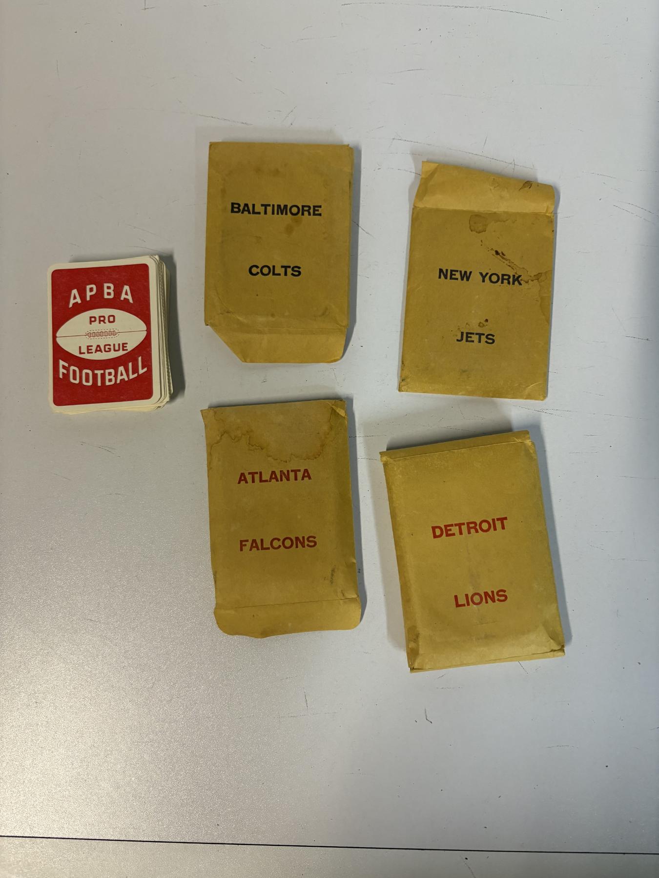 APBA Pro League Football Playing Cards - 5 Sets - Baltimore Colts - New York Jets - Atlanta Falcons - Detroit Lions