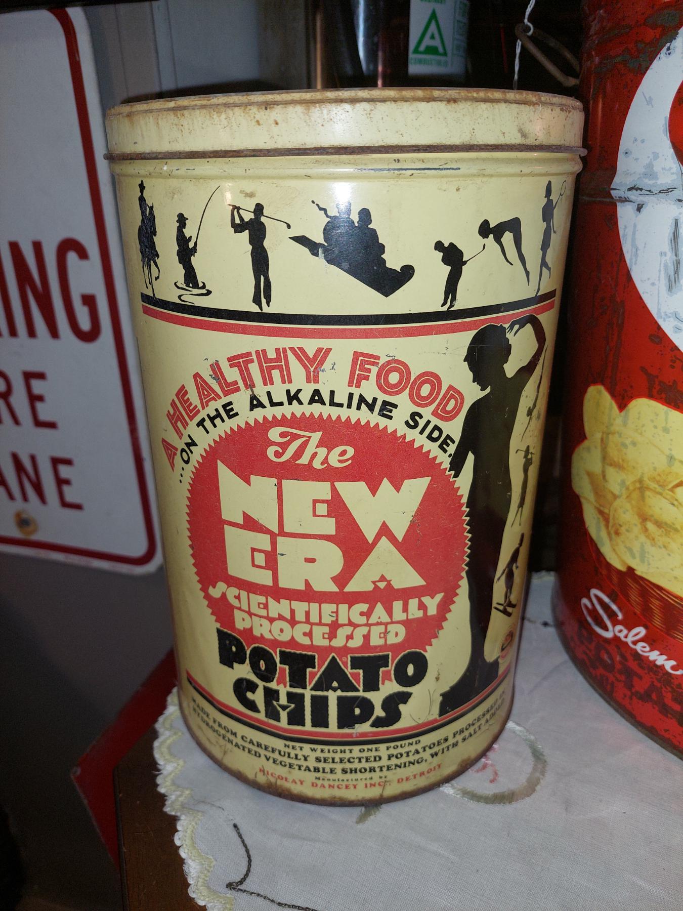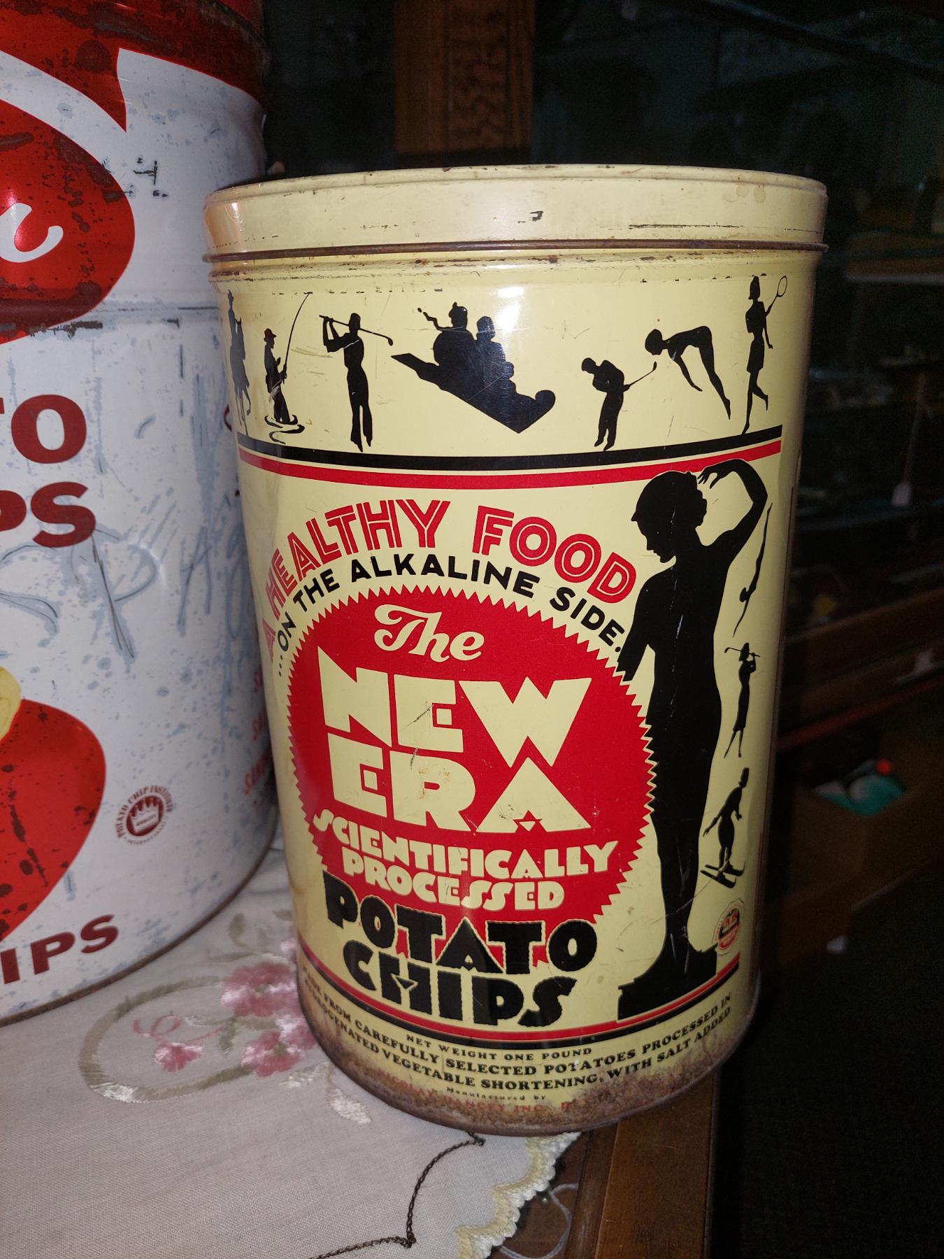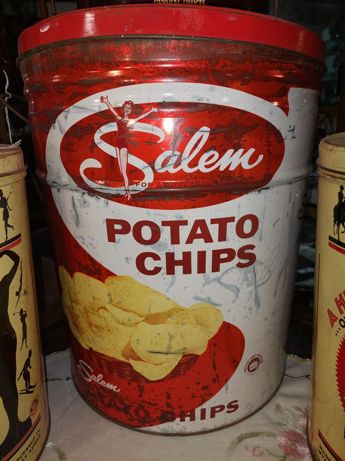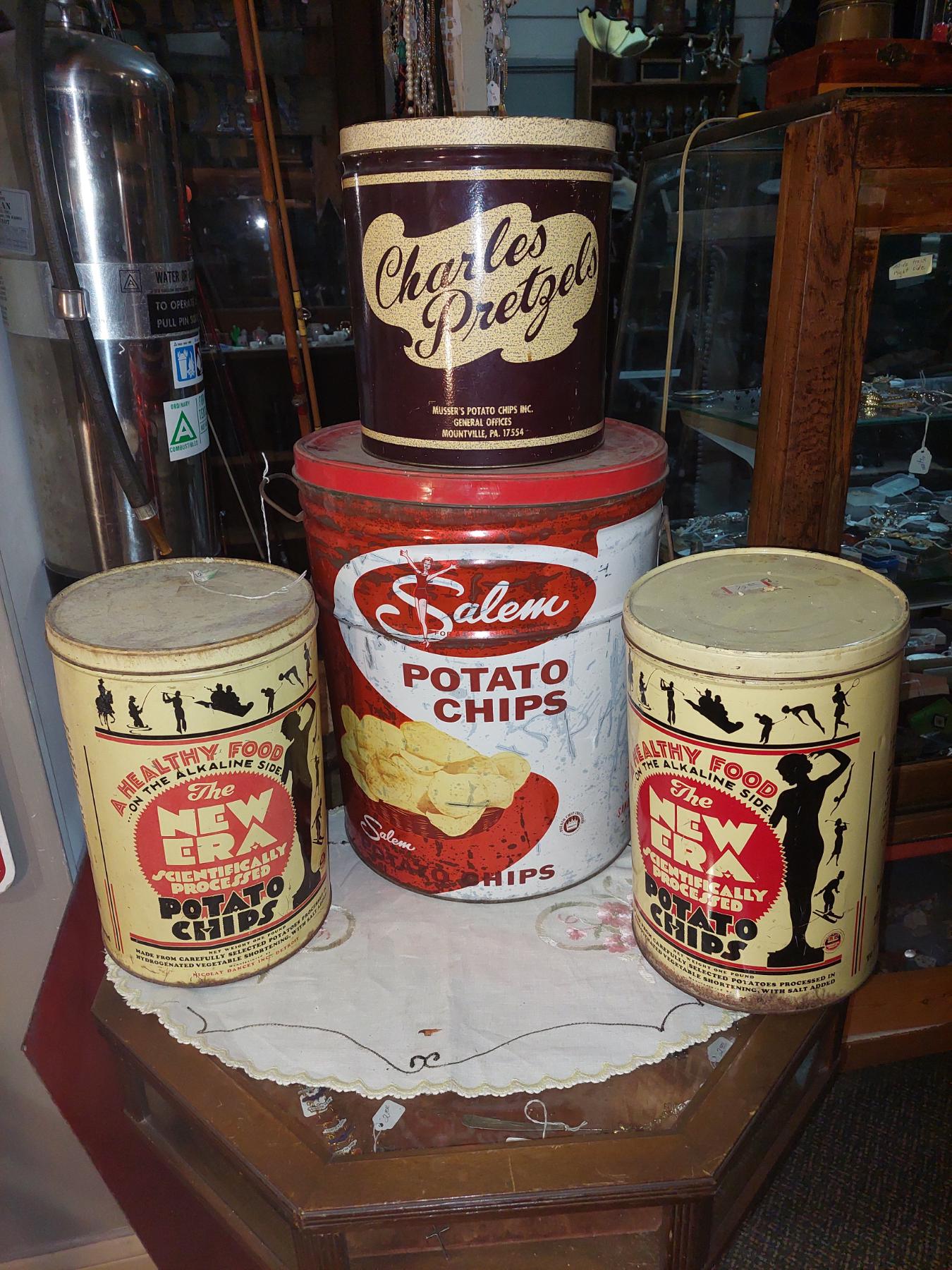 Advertising - 4 Pc Vintage Potato Chip Tins - Nice Group See Pics