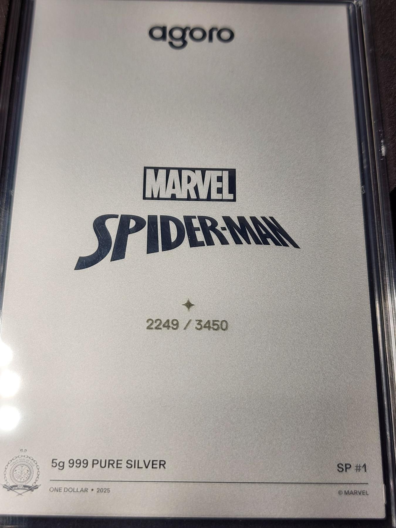 Agoro 5 Gram .999 Pure Silver Marvel Spider-Man 2025 Niue One Dollar Card - Numbered 2249/3450