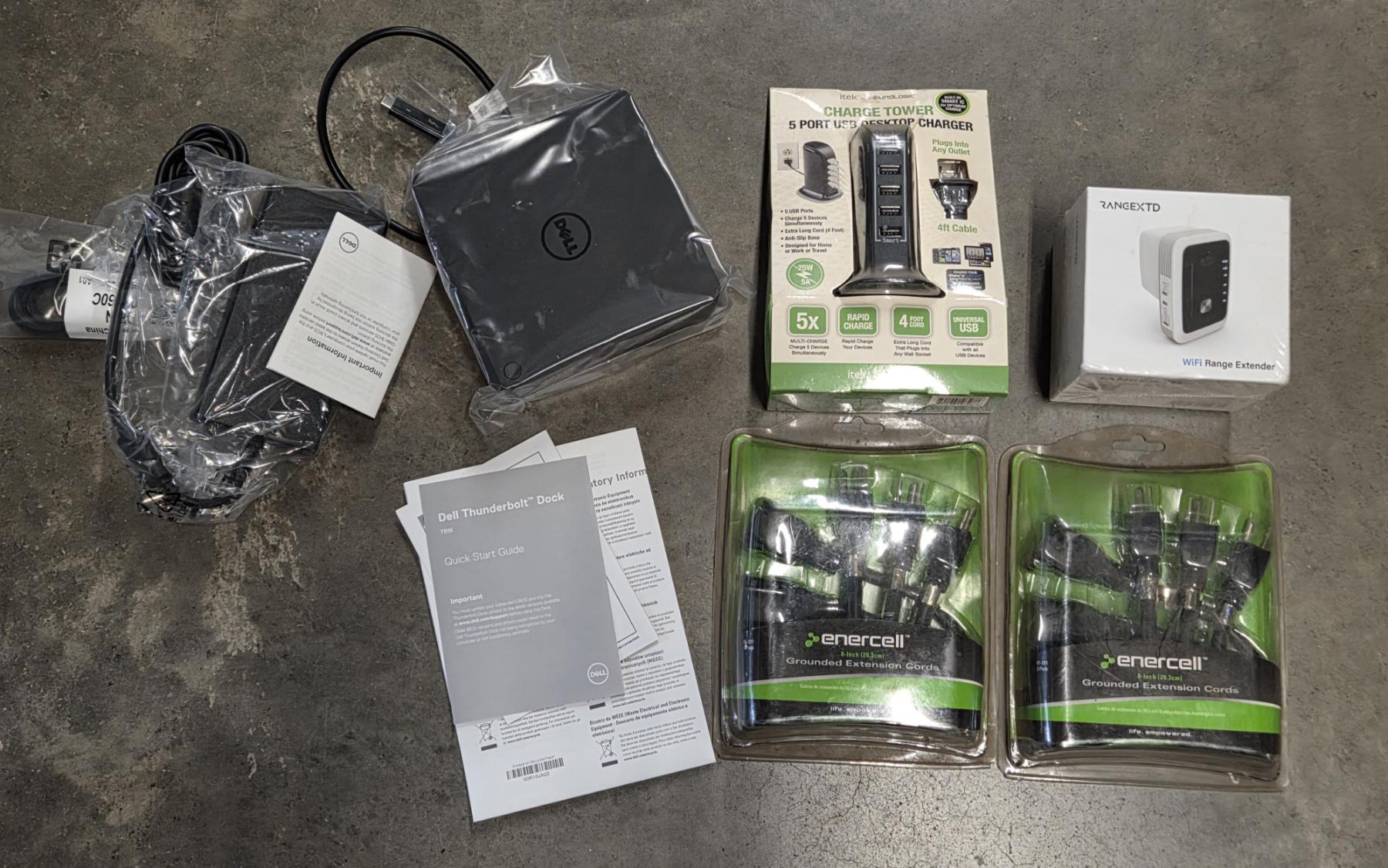 All Brand New- Dell Thunder Bolt Dock, Wifi Range Extender, 5 Port Charger And 2 Grounded Extension Cords