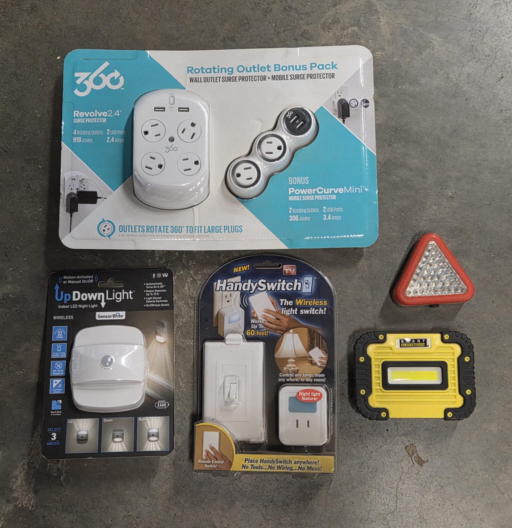 All Brand New- Emergency Lights, Rotating Outlets, Handy Switch, And Up Down Light