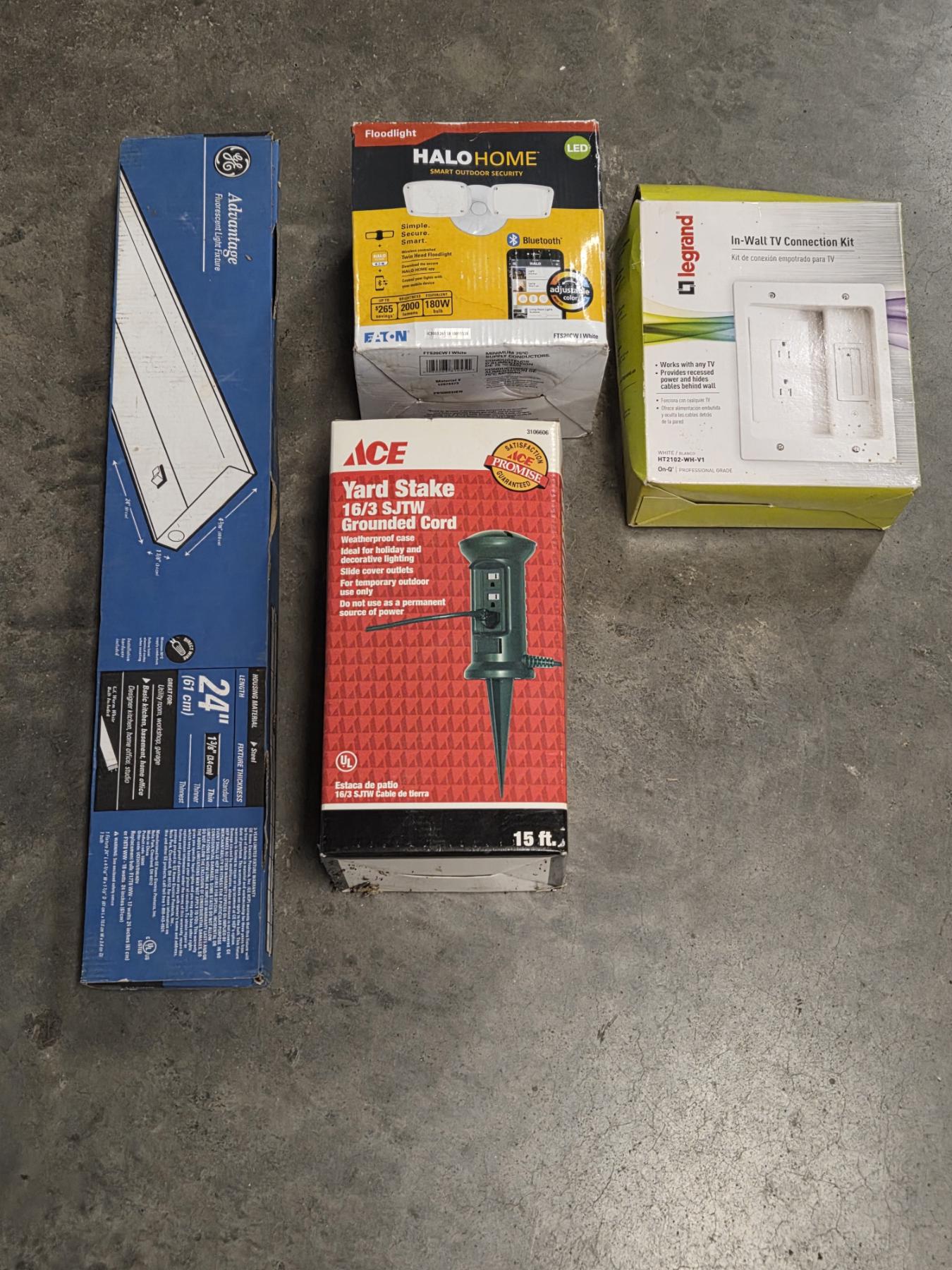 All Brand New- LED Halo Flood Light, 24'' Fluorescent Light, Yard Stake Cord & More