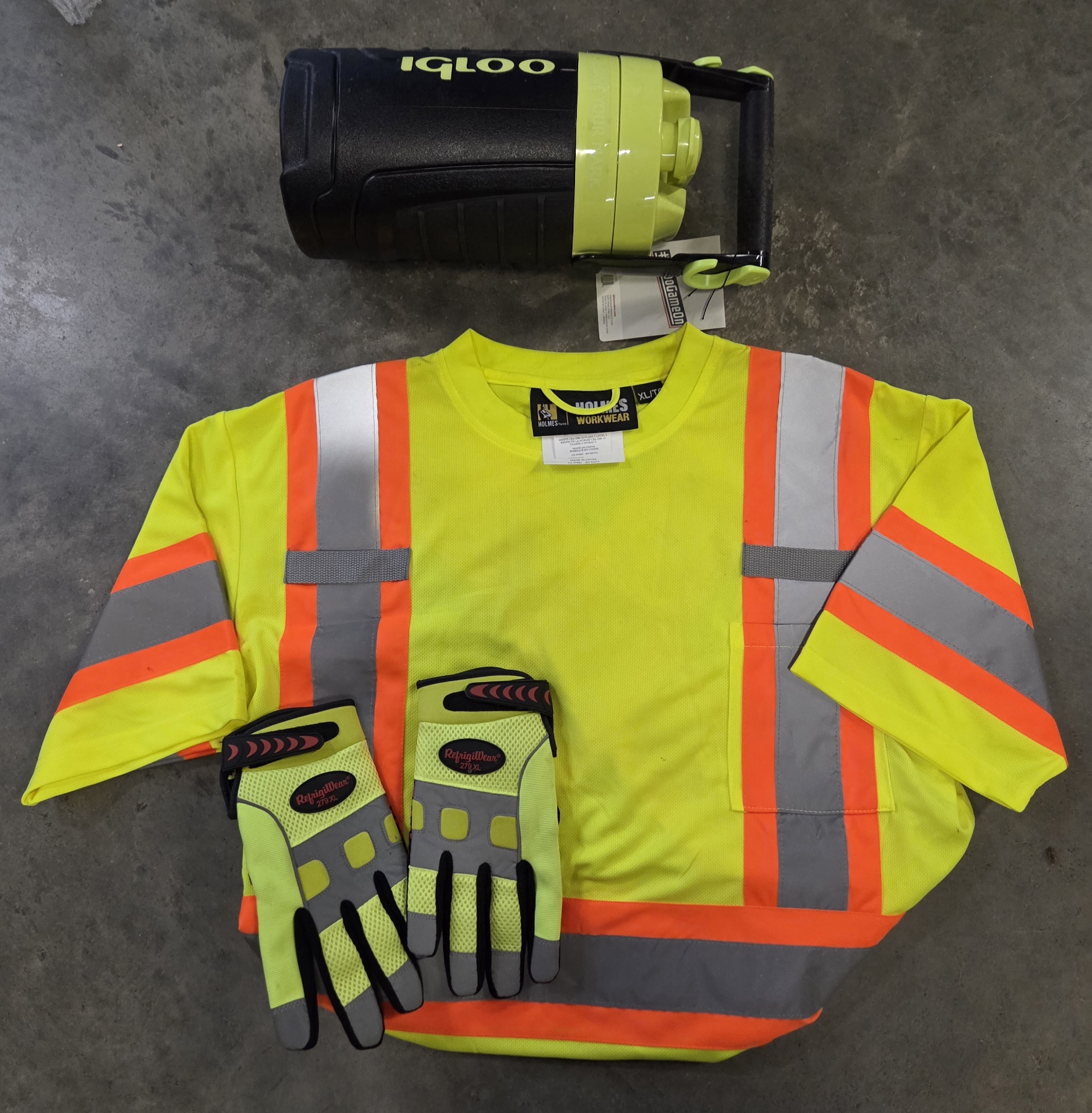 All Brand New- Size XL Gloves & Shirt And Igloo Half Gallon Insulated Drink Container