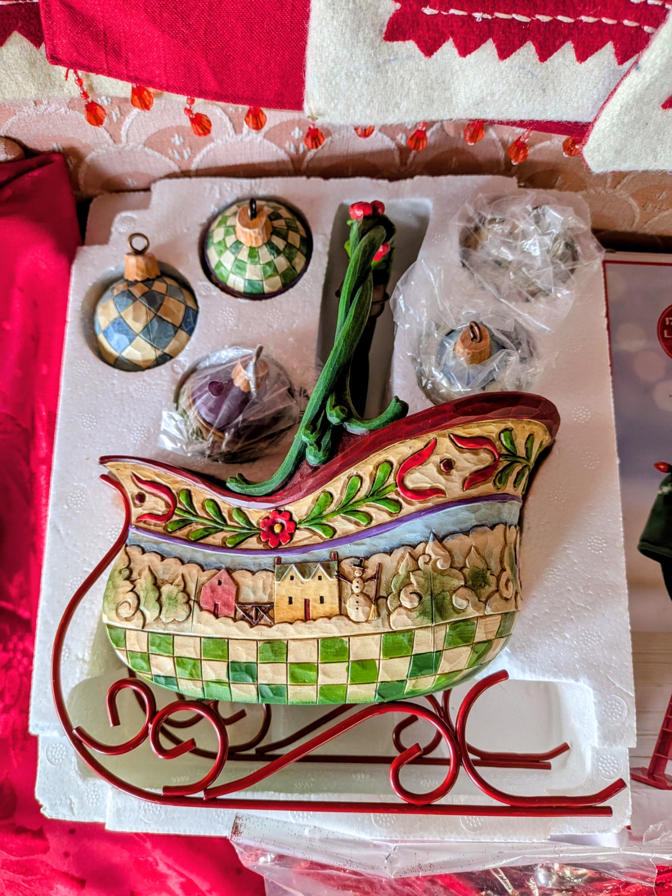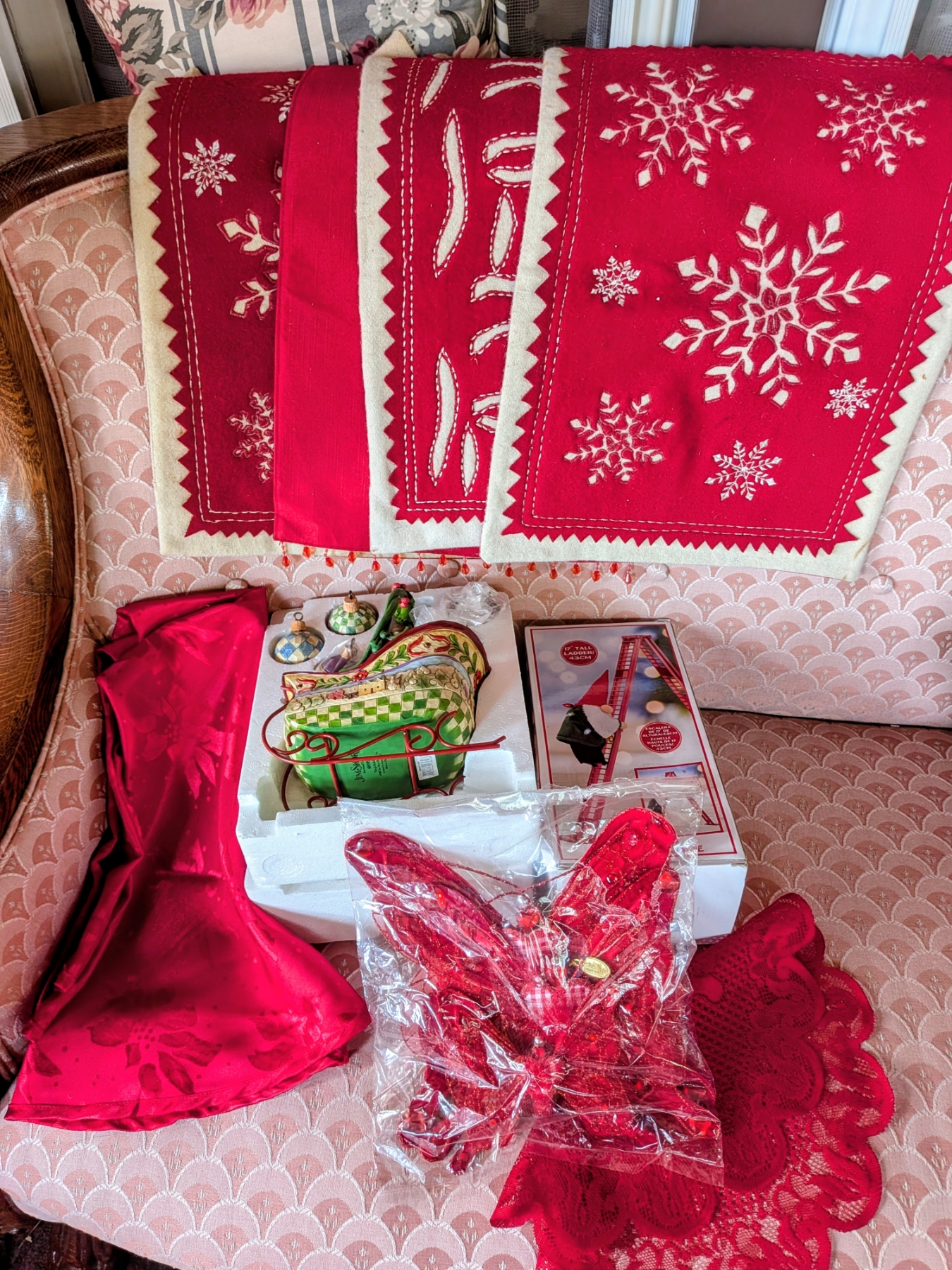 All New Items! 4 Placemats, Climbing Gnome, Tablecloth, & Sleigh Decoration.
