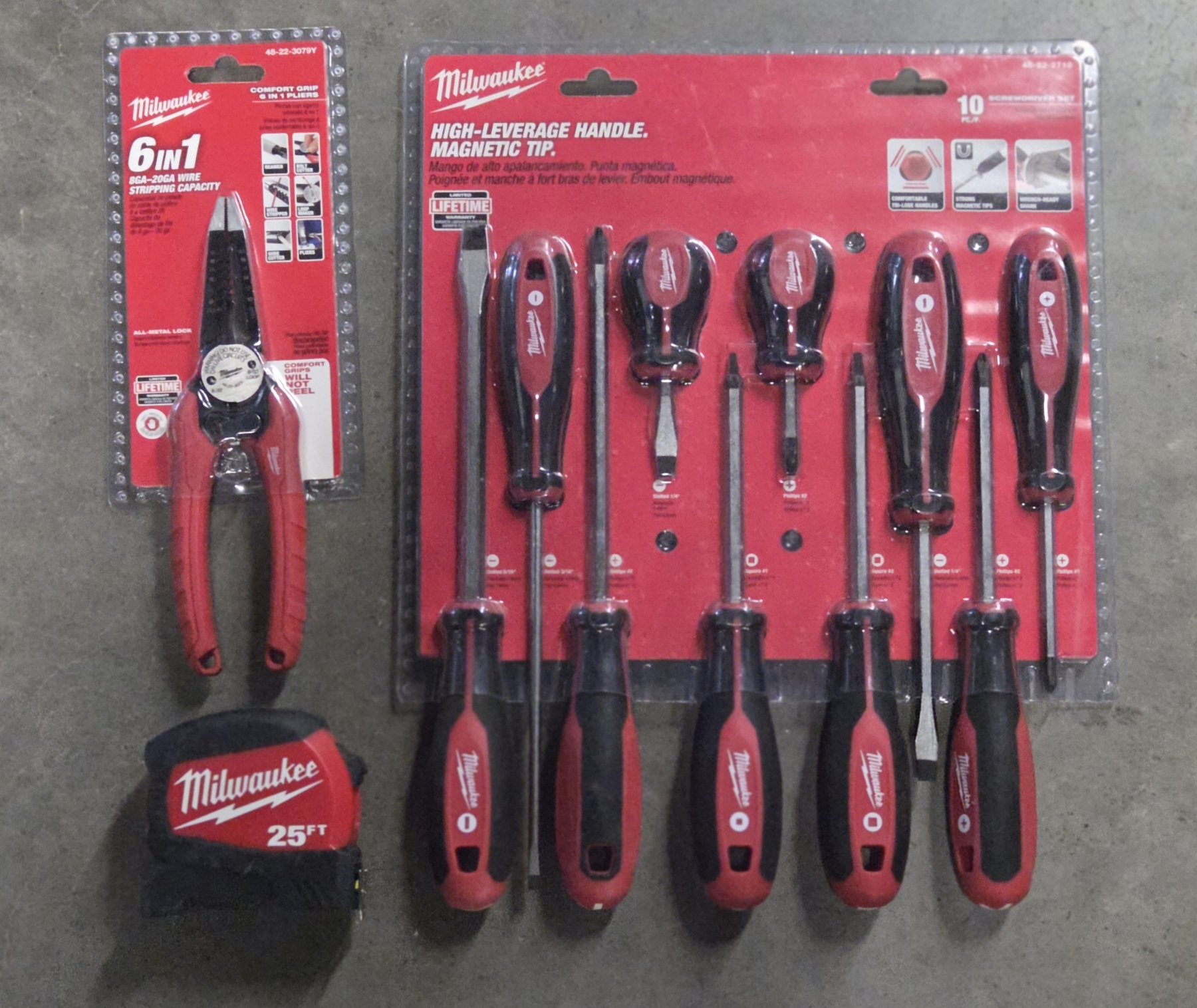 All New! Milwaukee Tape Measure, Mag Tip Screwdriver Set & Wire Stripper