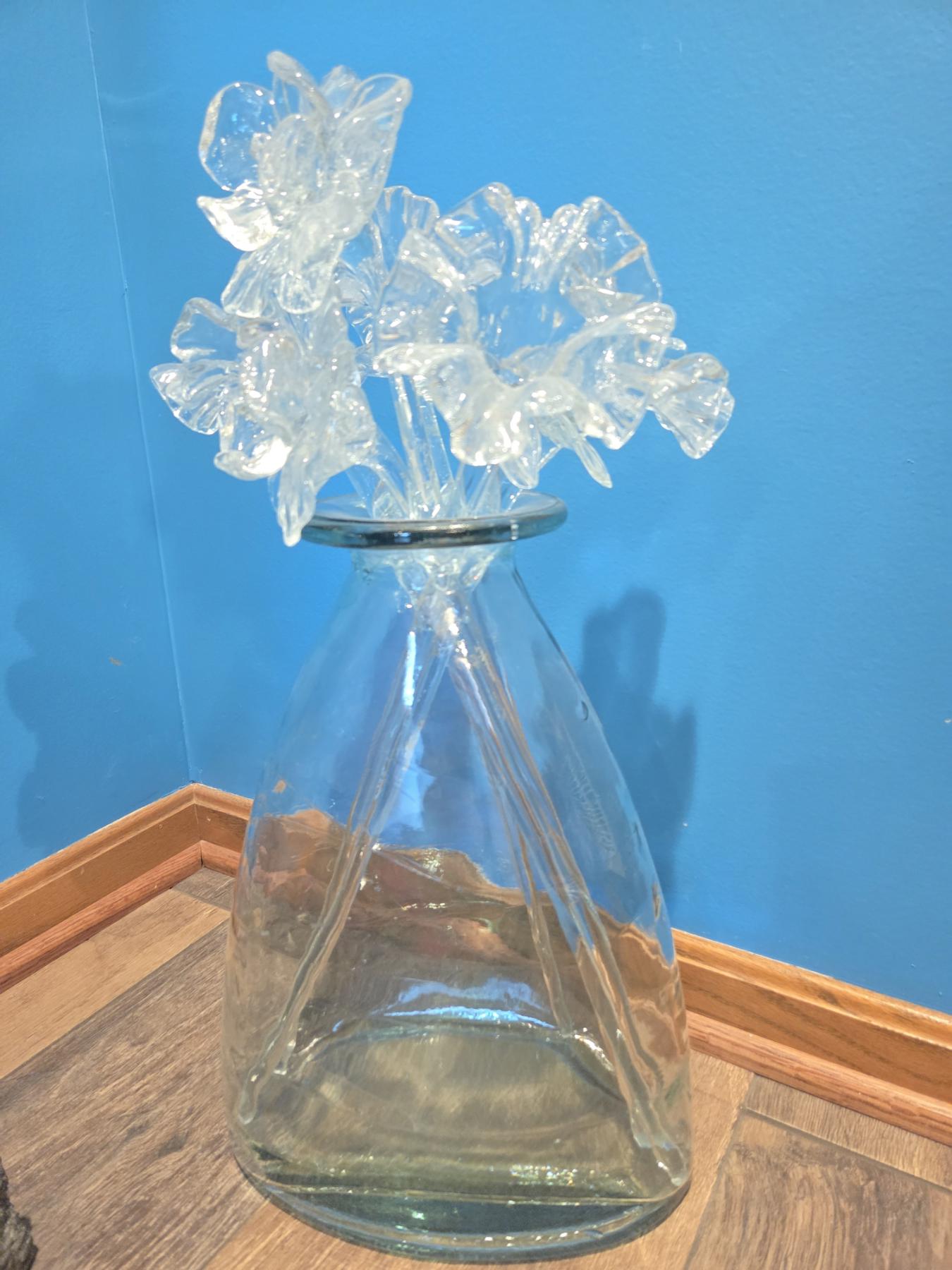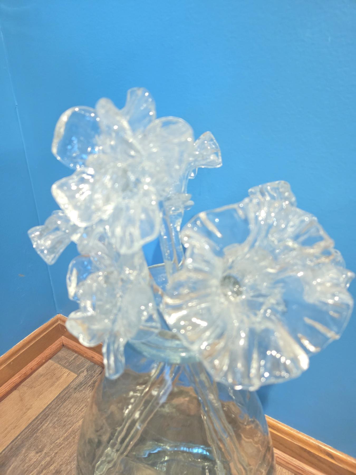 Amazing Hand Blown 21" Glass Flowers In Vase
