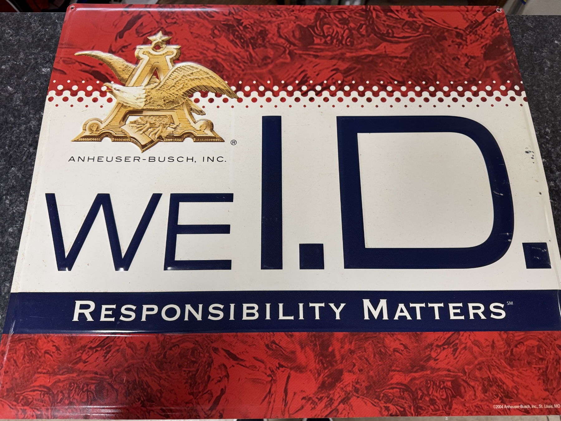 Anheuser-Busch, Inc "We ID" 23" x 20" Metal Sign - Good Condition