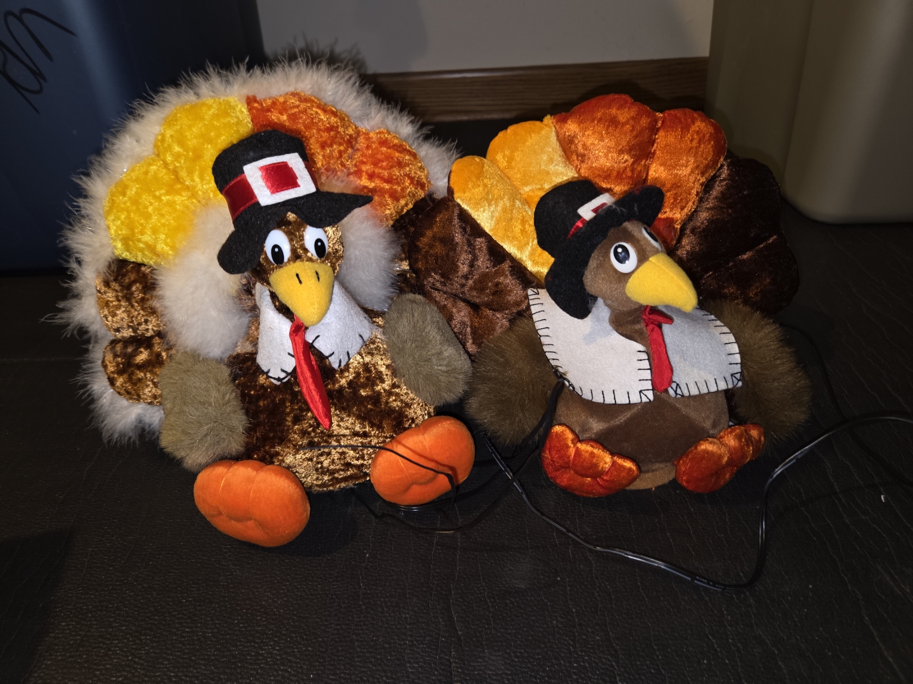 Animated Plush Turkeys, Large Glass Pumpkins, Table Covers, Night Lights & More!