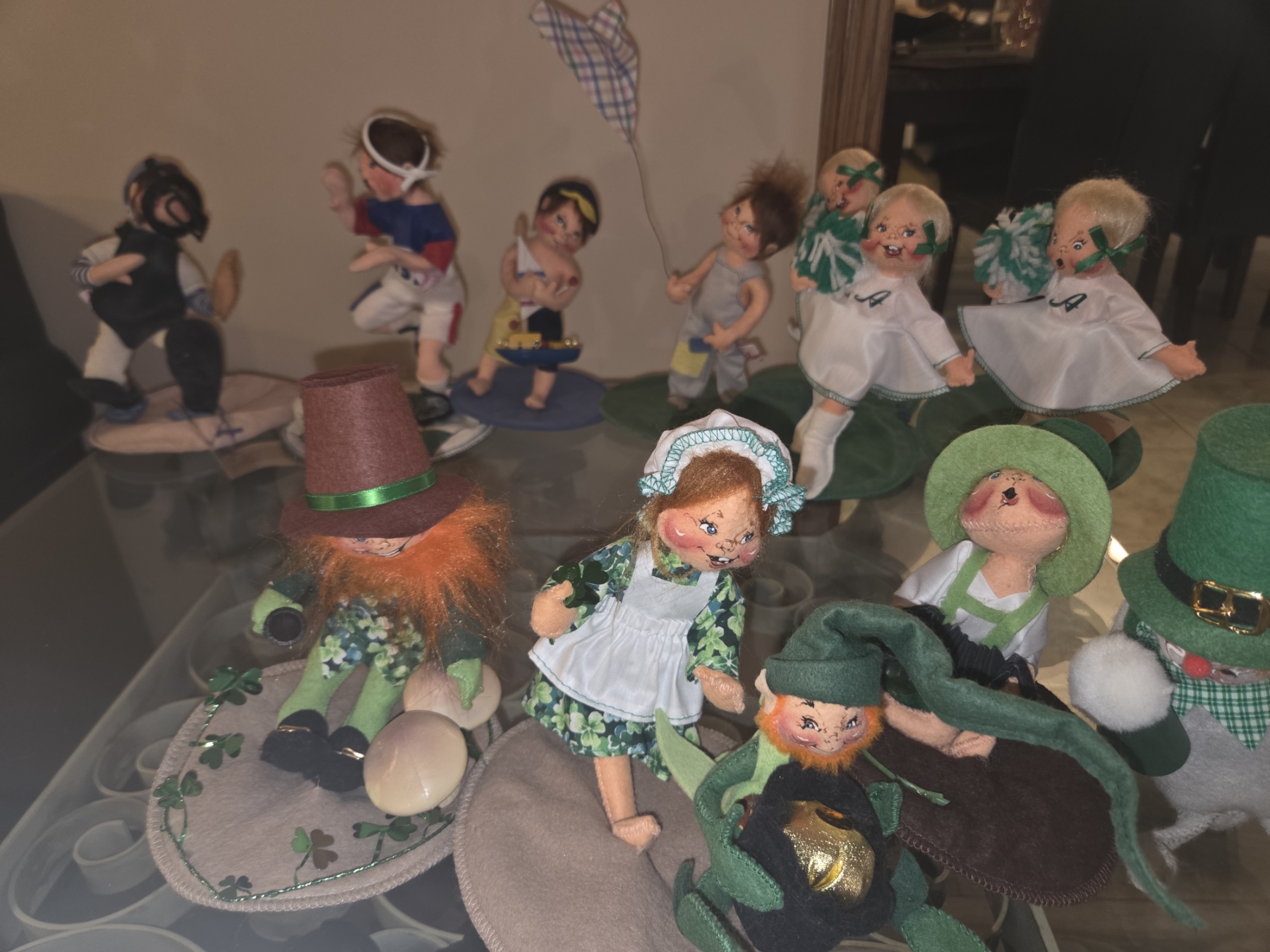 Annalee Famous Vintage Felt Dolls Highly Collectable! Featuring Sports, Outdoors, Cheerleaders, St. Pattys 12 Doll Collection