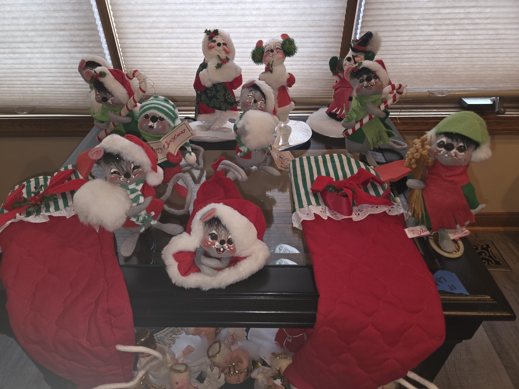 Annalees Vintage Felt Dolls. Very Collectable. Featuring Mice, Stockings & More! 13 Pieces