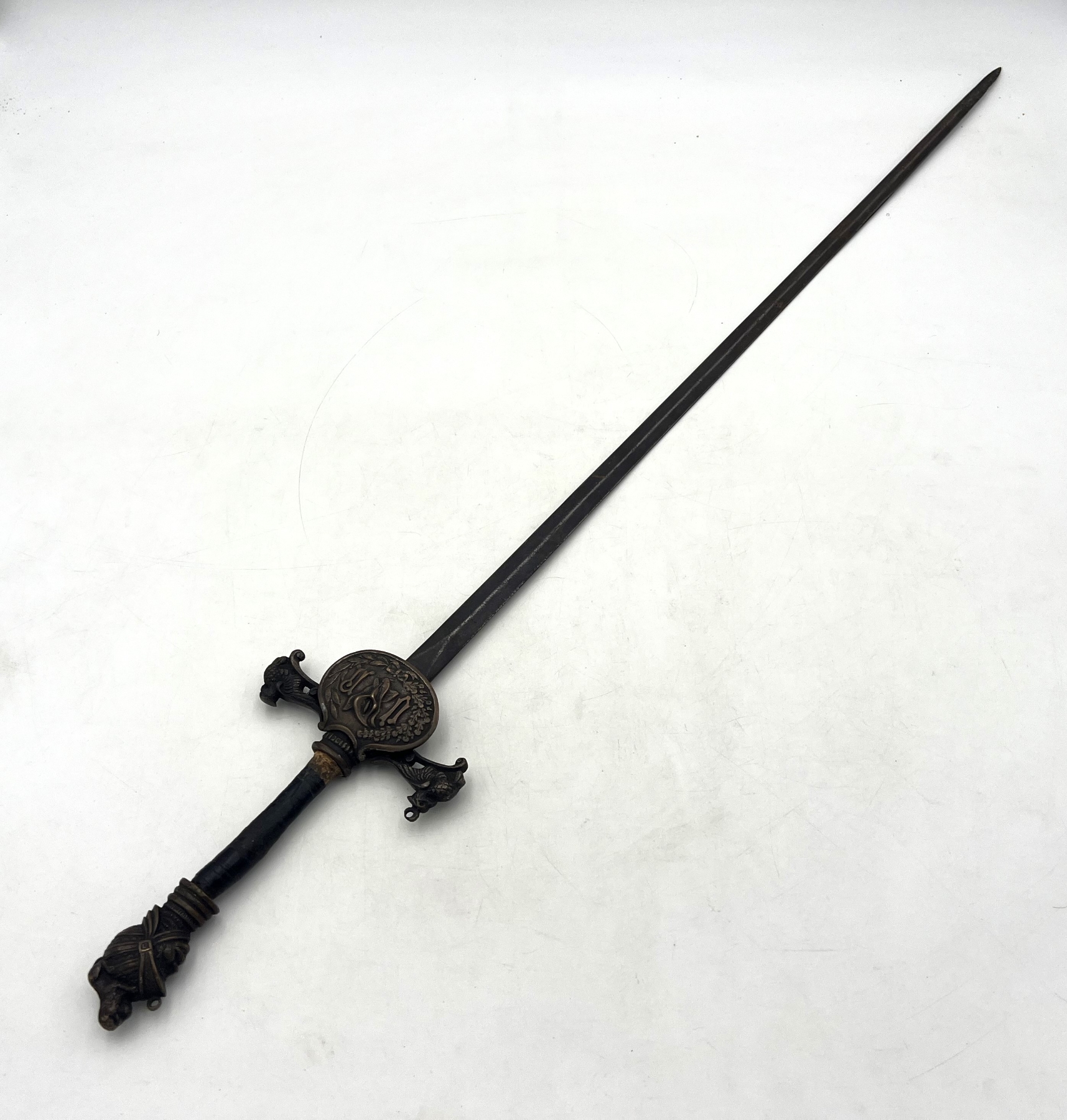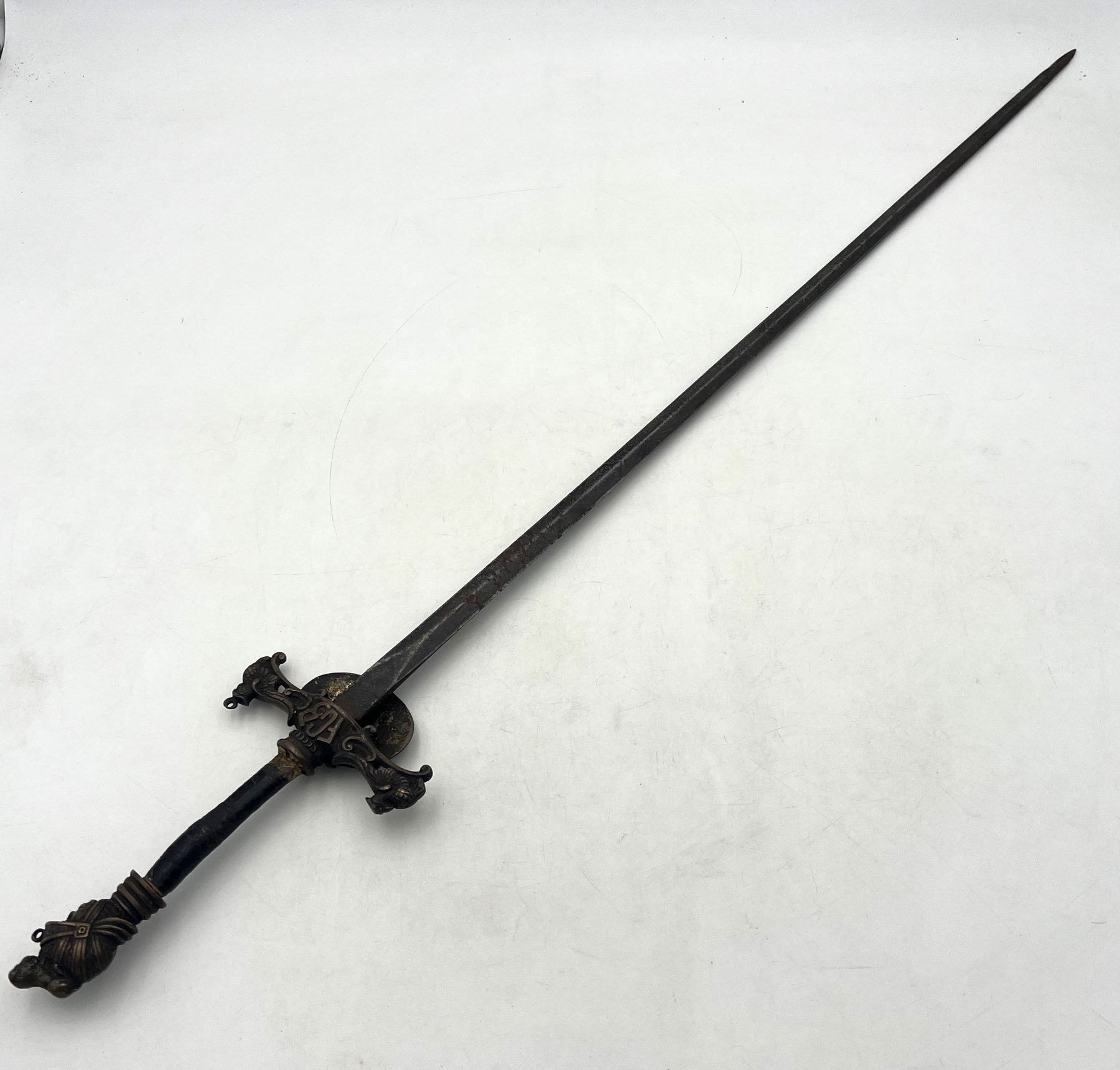 Antique 1800's Knights Of Pythias Victorian FCB Ceremonial Sword Free Masonry. This is a Fraternal Sword made in Germany in the 1800's. The Pommel has the Knights head with a seated Lionel. The Hilt has the twin falcons, a secret symbol of the Fraternal Society.