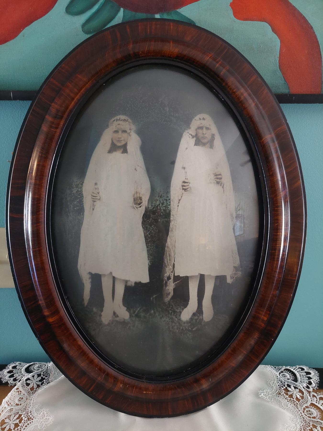 Antique 24" x 18" Oval Photo In Frame - Curved Glass