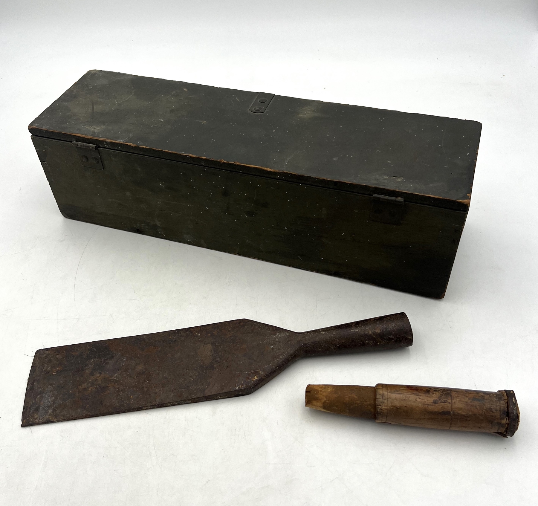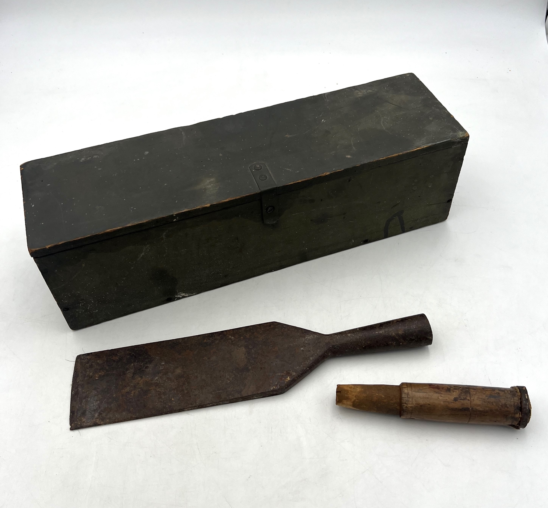 Antique 9" by 3" Timber Framing Chisel with Removable Handel. This is a primitive tool used in construction of Amish Barns and the like.