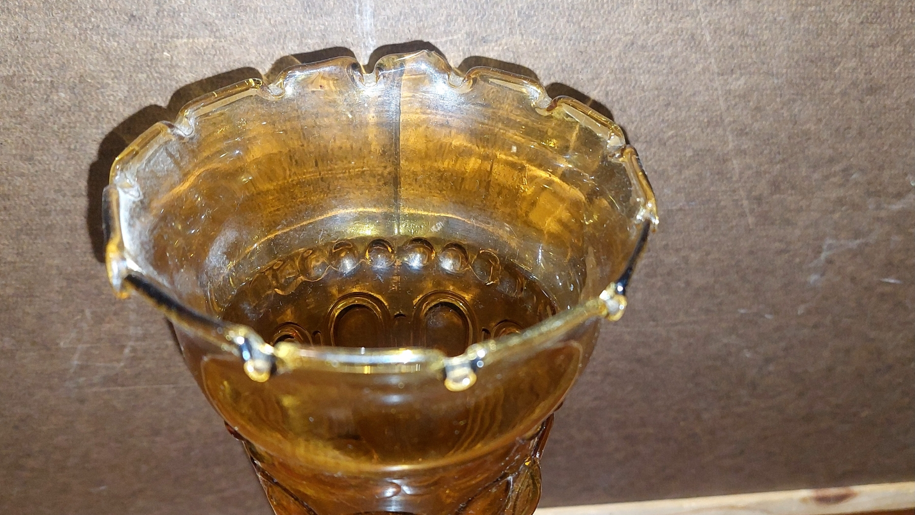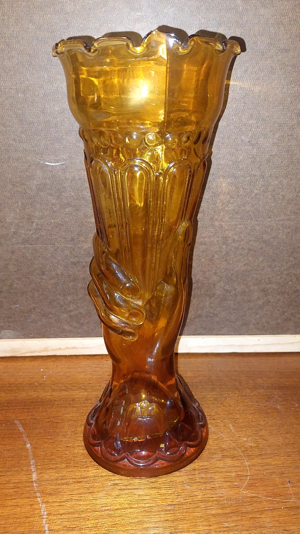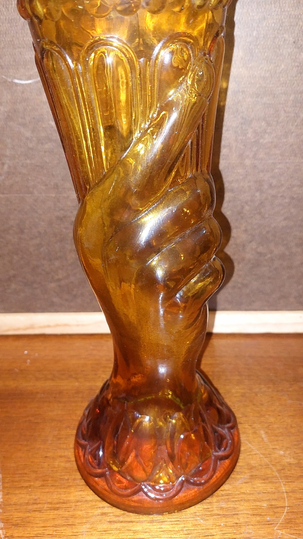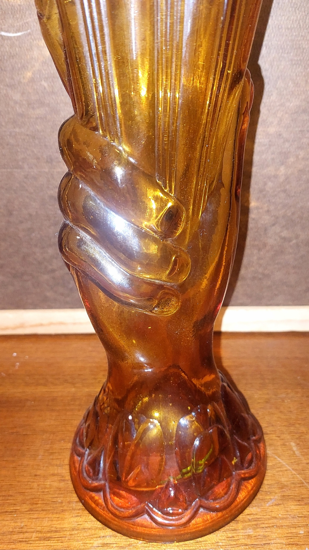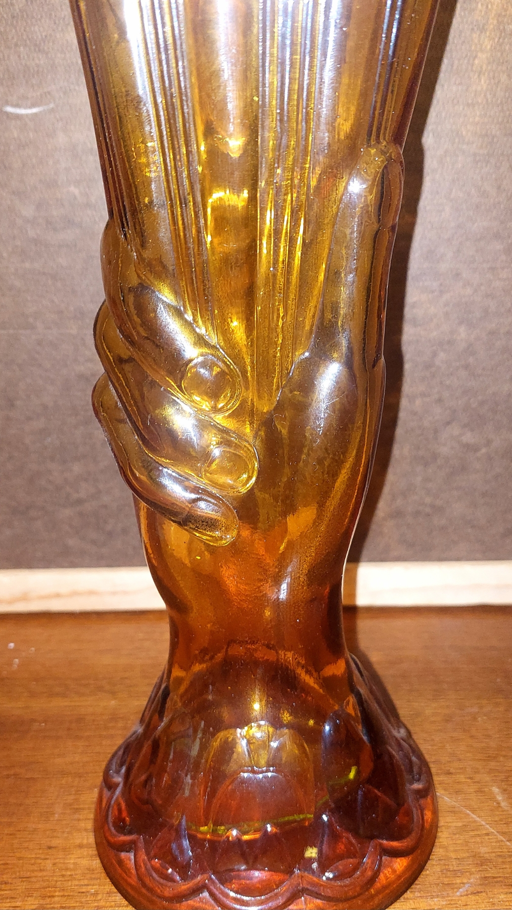 Antique Art Nouveau Amber 12 Inch "Grasping Hand" Vase - Perfect Condition