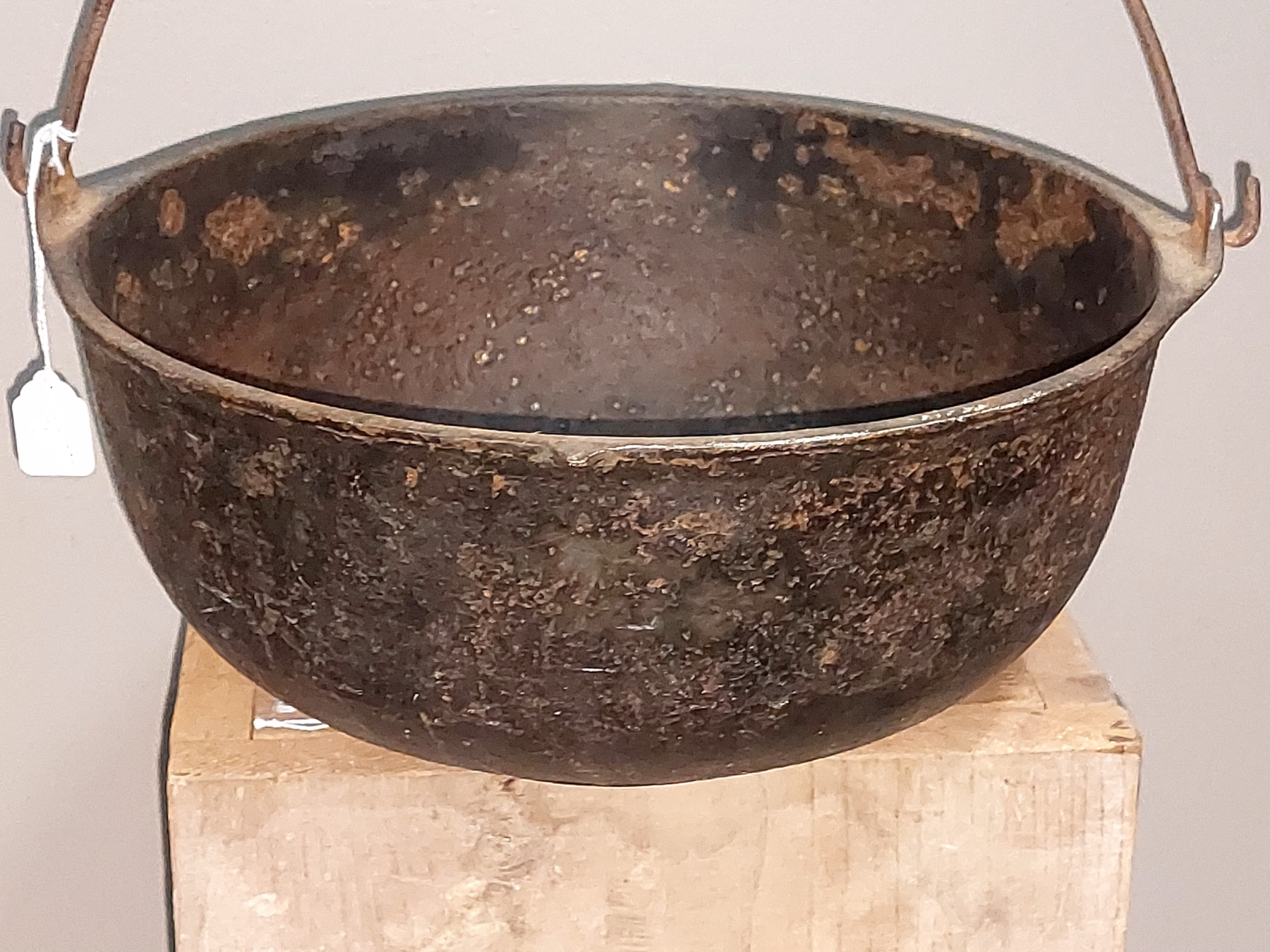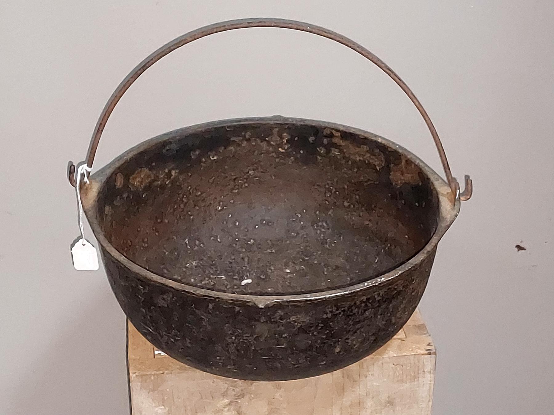 Antique Cast Iron 11 Inch Round w Handle Fireplace Pot - 5" Height - No Issues