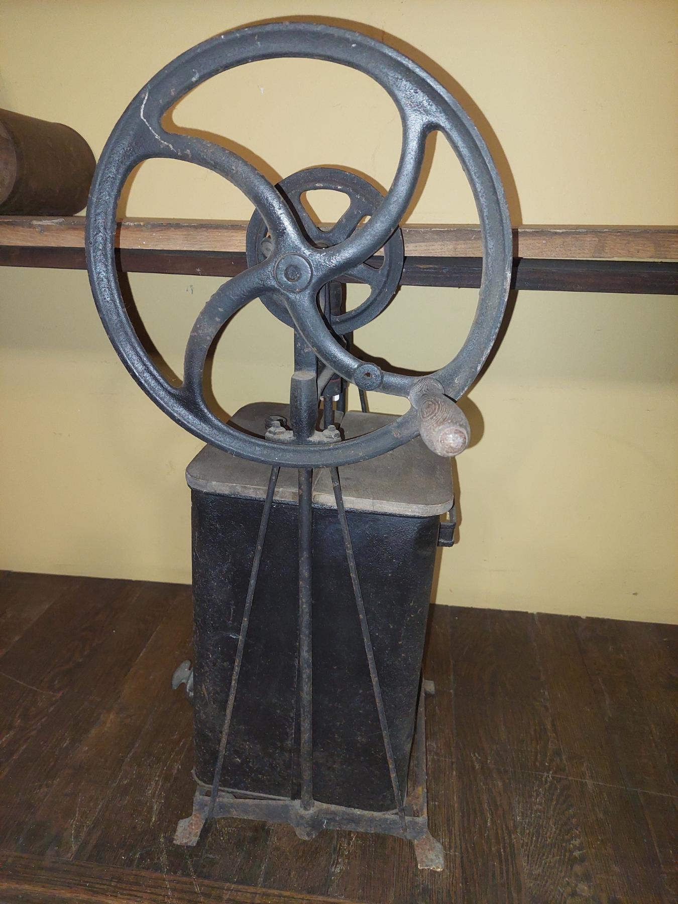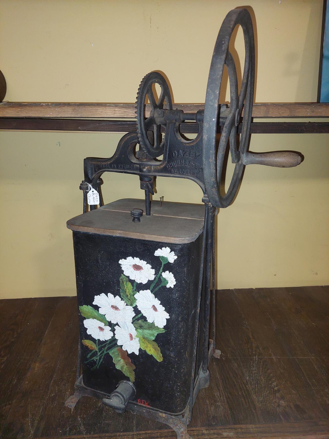 Antique Decorated Large Metal Cannister Crank Churn - 25" Tall 9 x 9 Vessel - Nice - see Pics