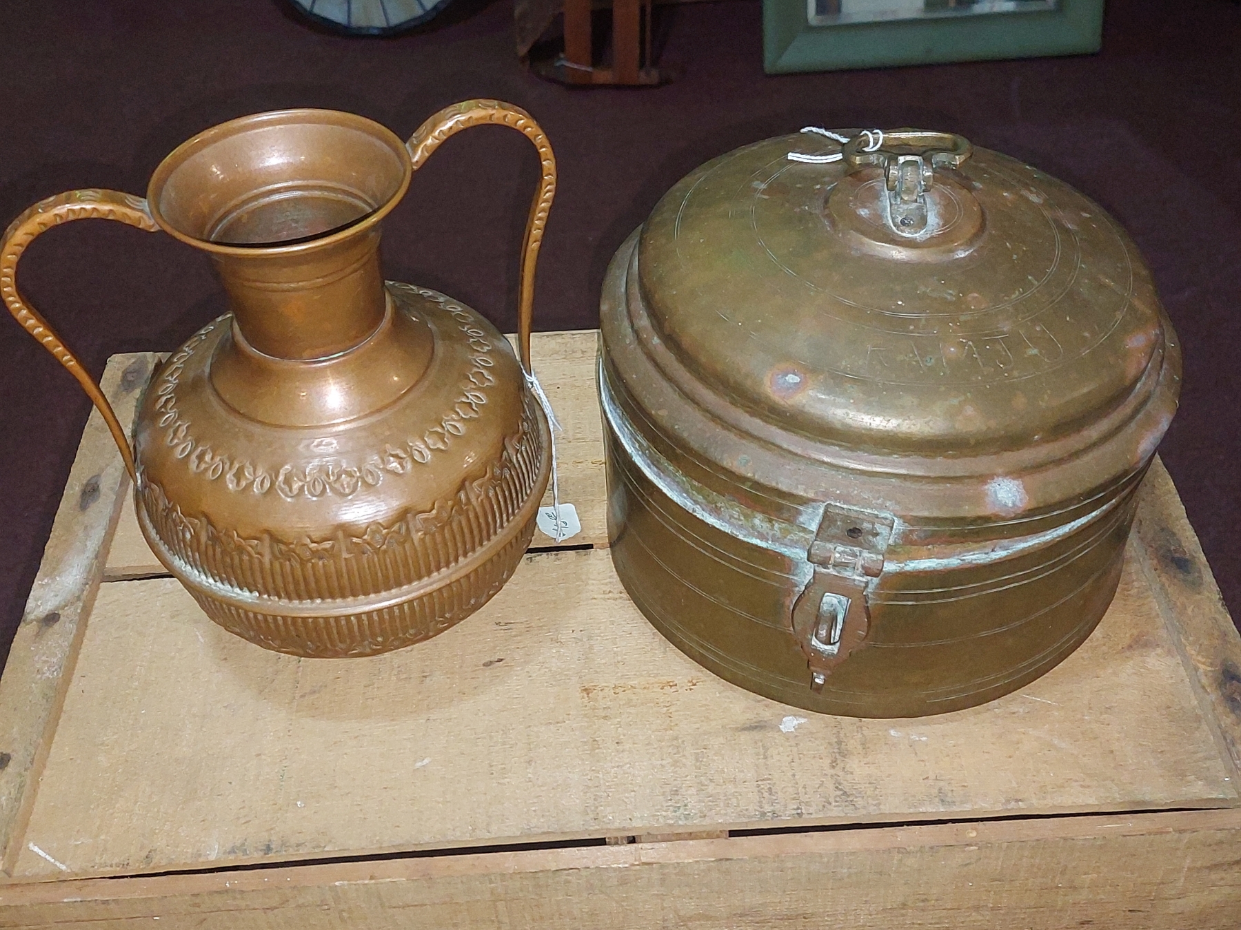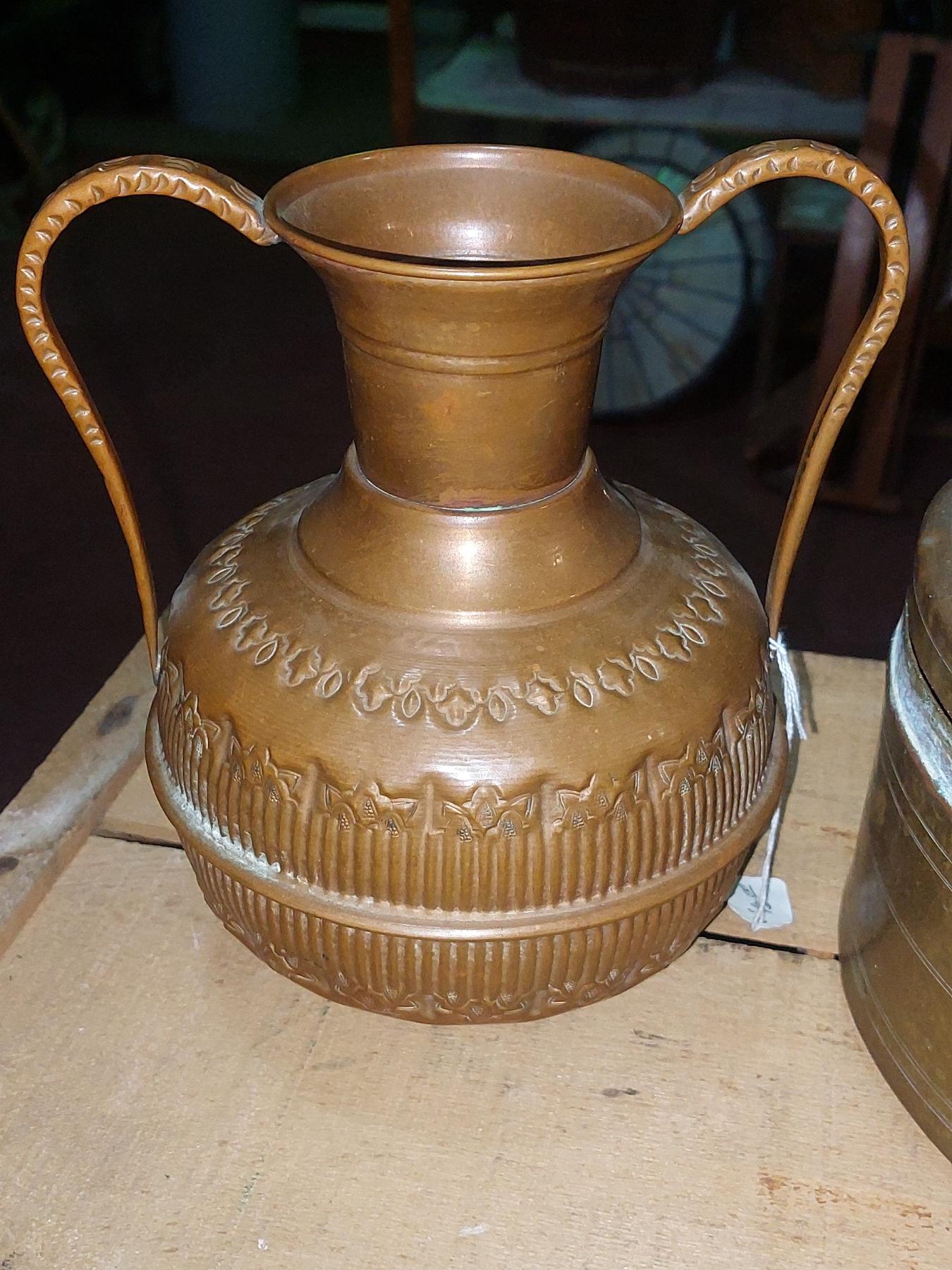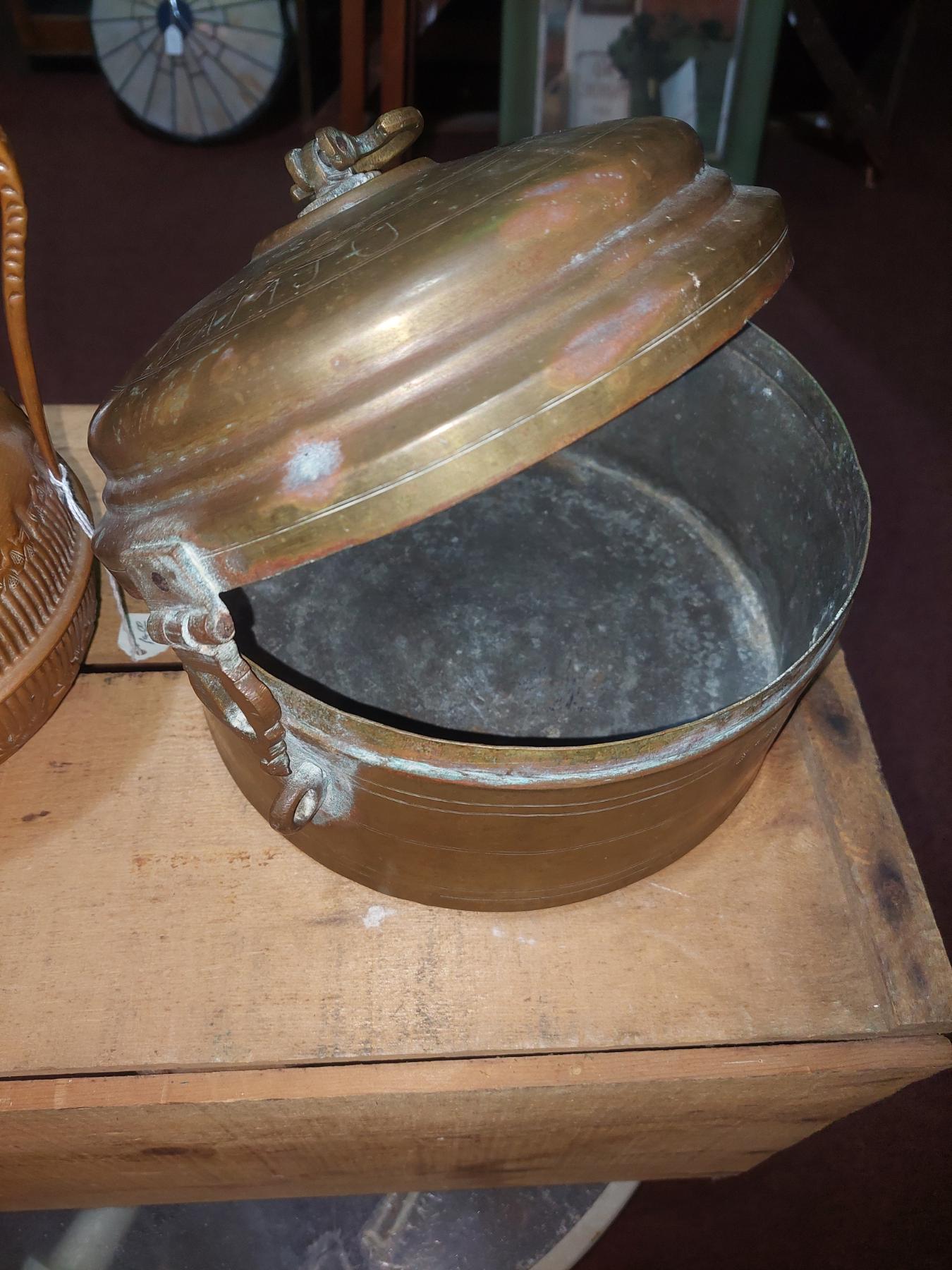 Antique Hand Tooled Copper Handled Vessel / Pot & Brass Lidded Cooker - See Pics