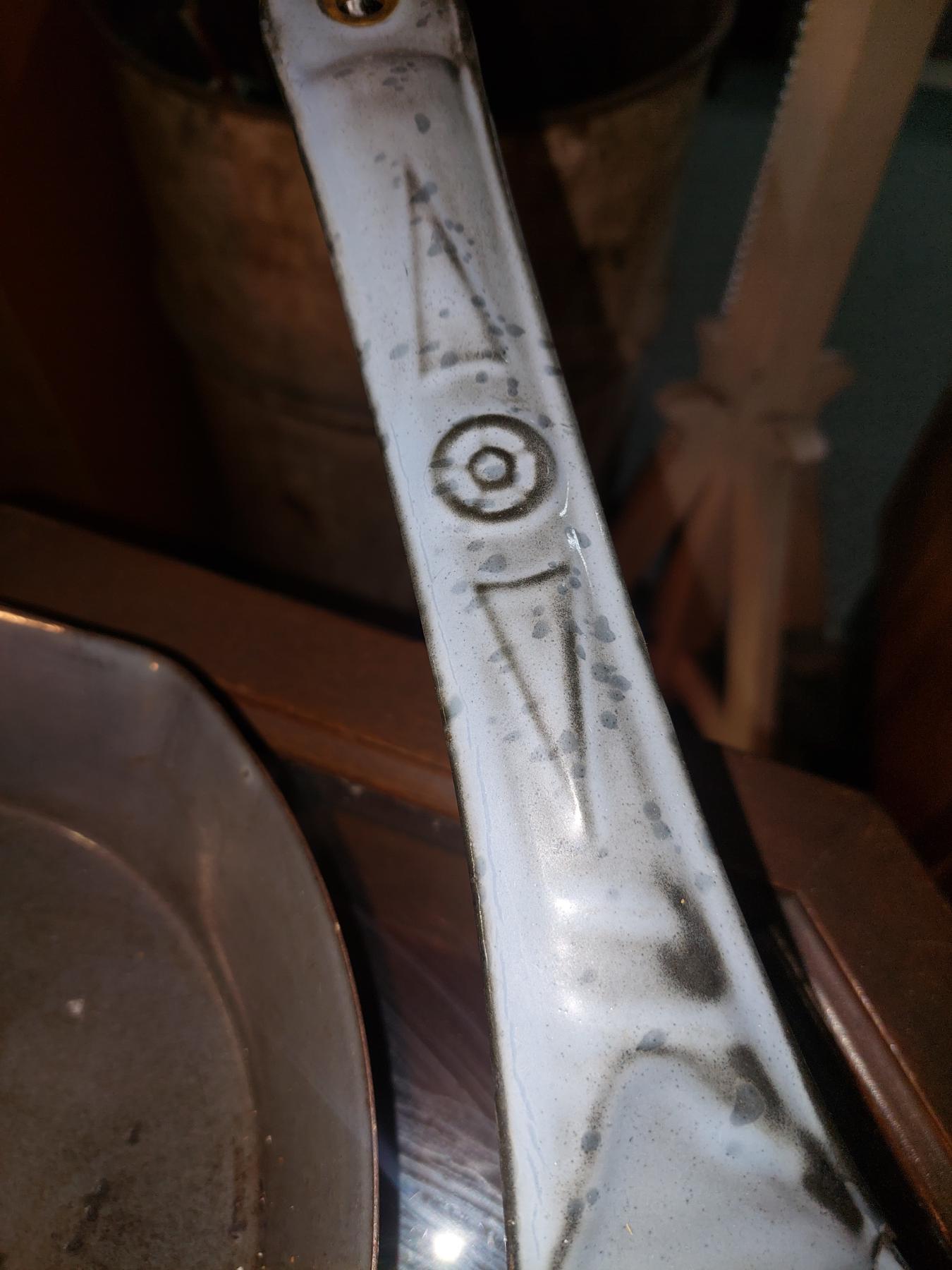 Antique Metal Ware - Fry Pans - Long Handle Enameled 5 Pc Group - 11" Diameter To 8" - See Pics