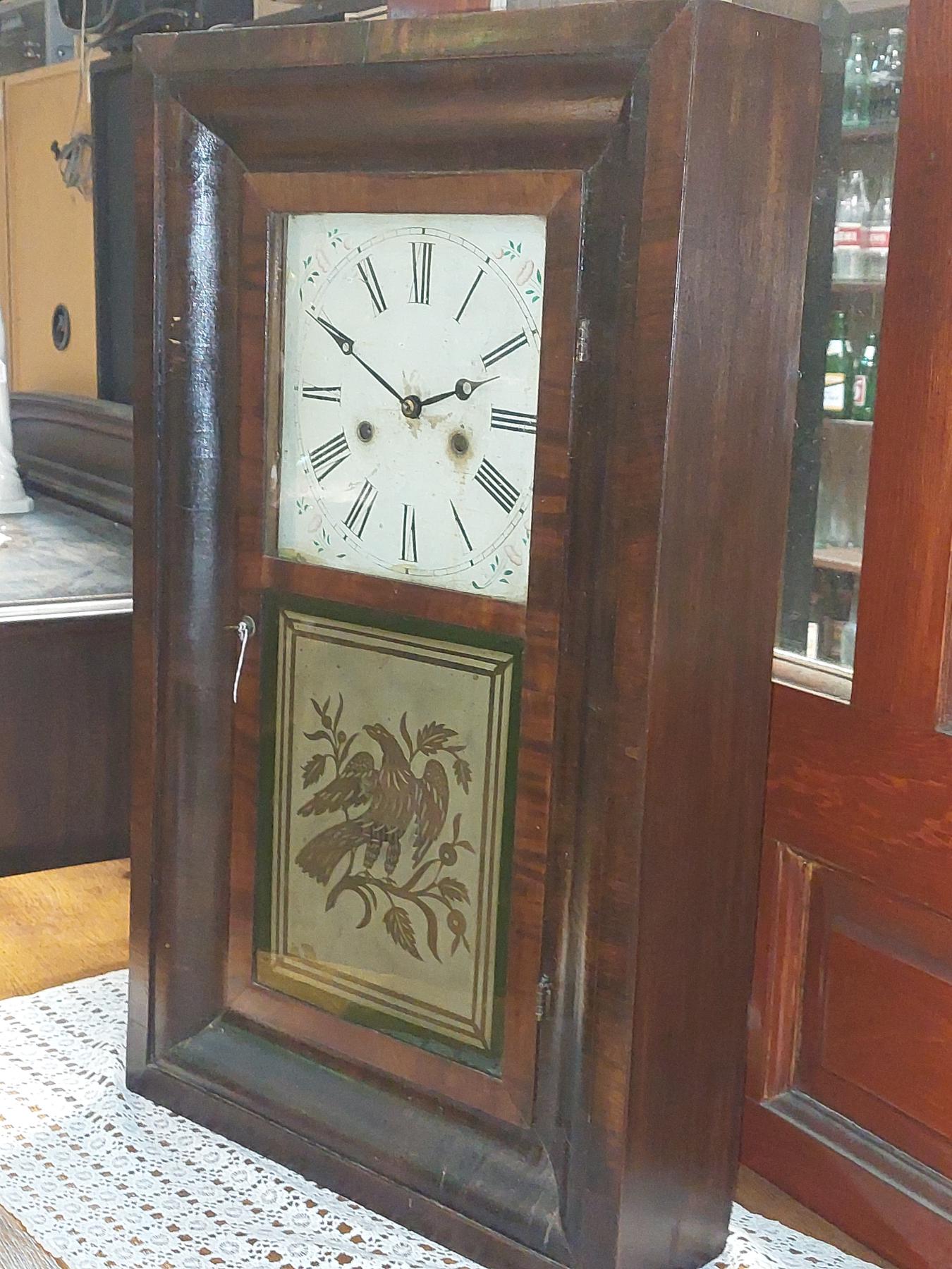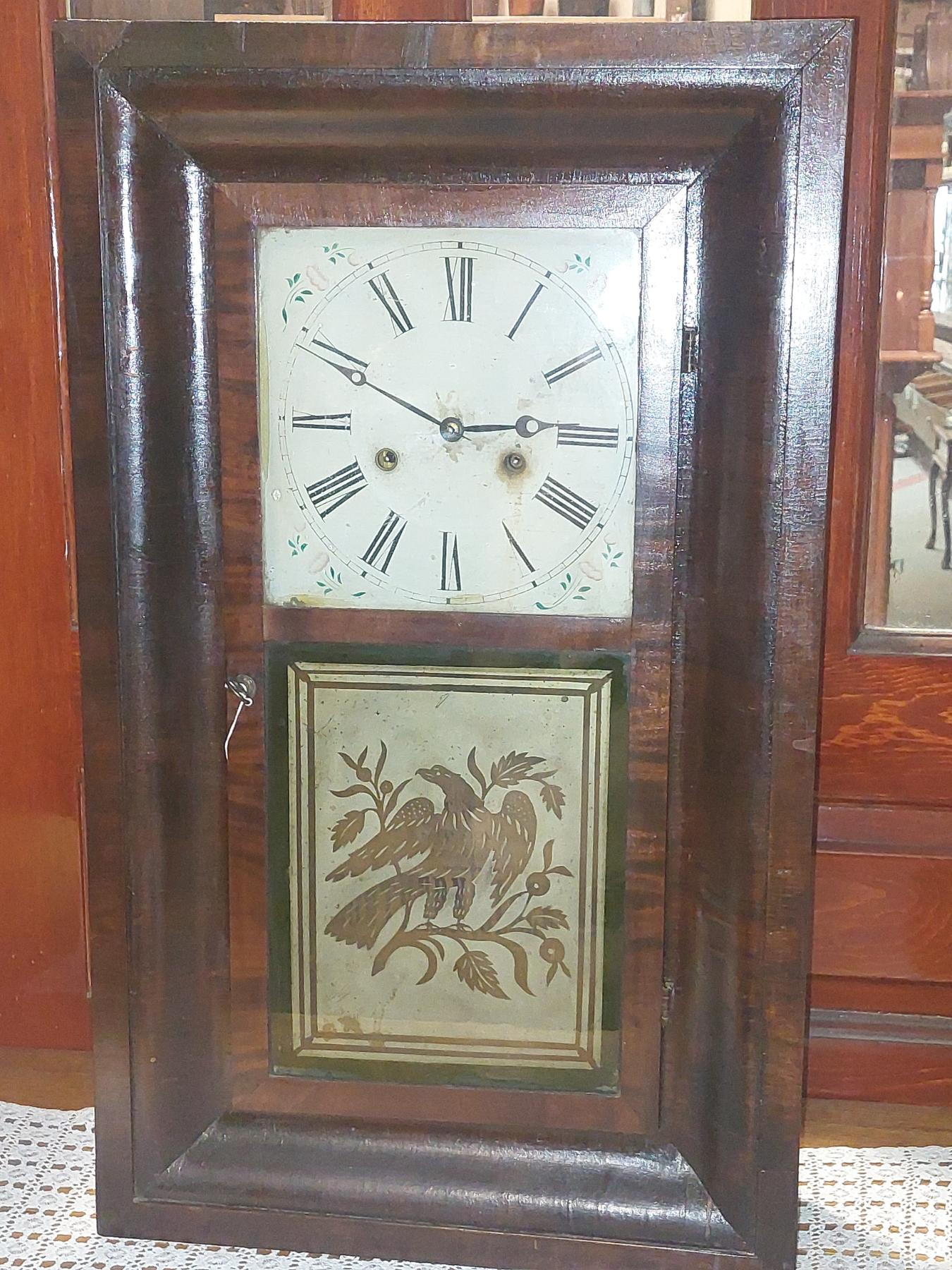 Antique Patriotic Themed "Southern Clock Co. Wooden OGEE Clock - With Key - 26 x 16 x 4.5 Inches - See Pics