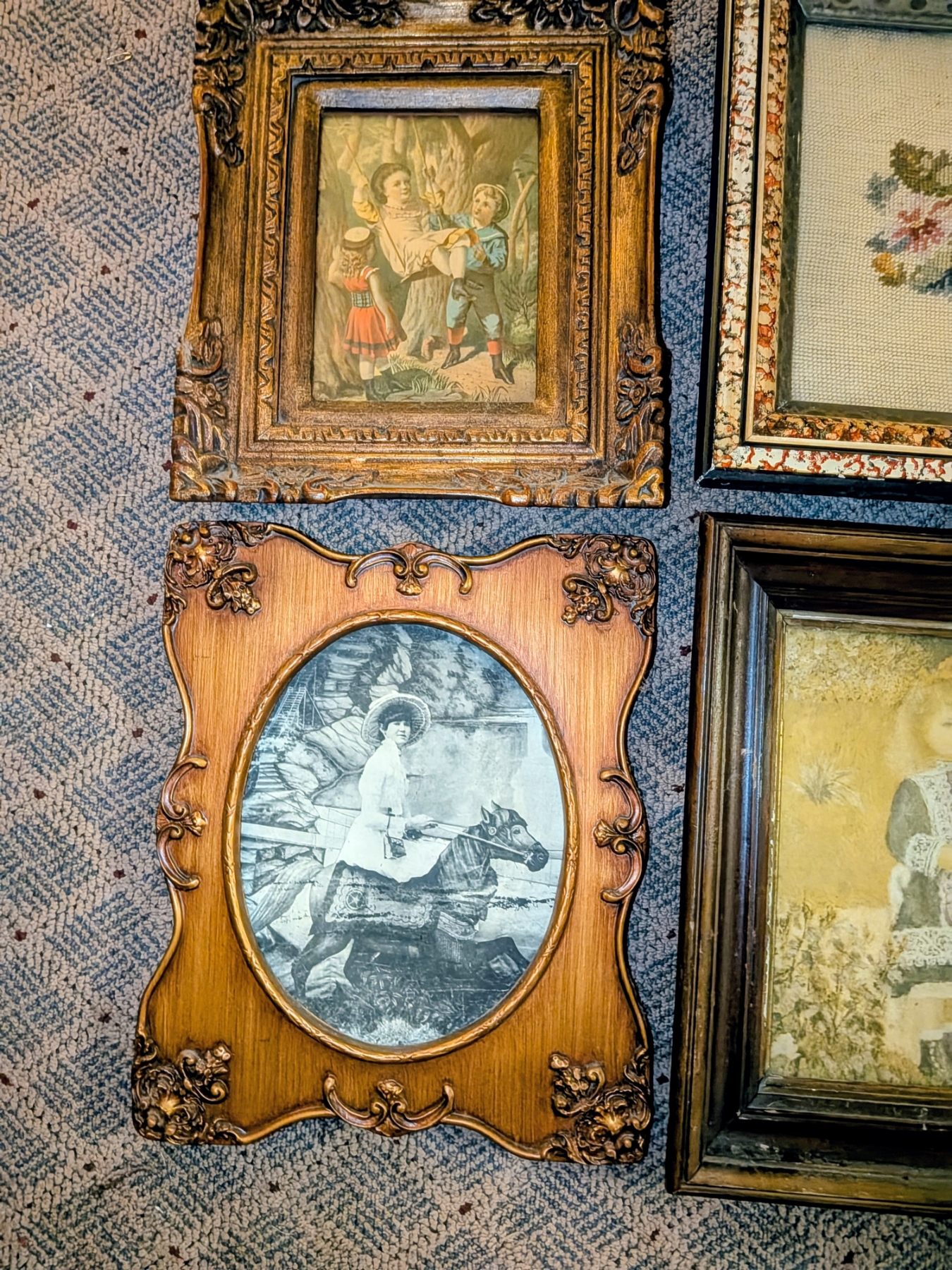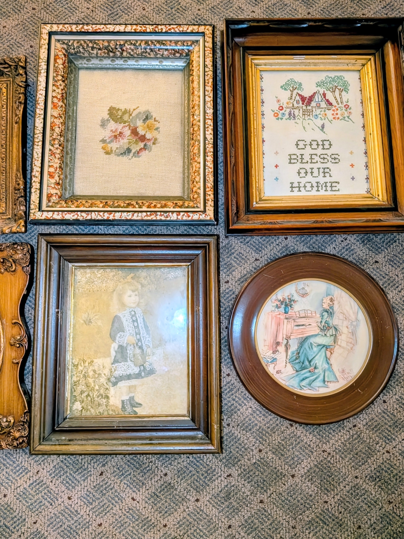 Antique Pictures Including Two Needlepoint, With Gorgeous Frames