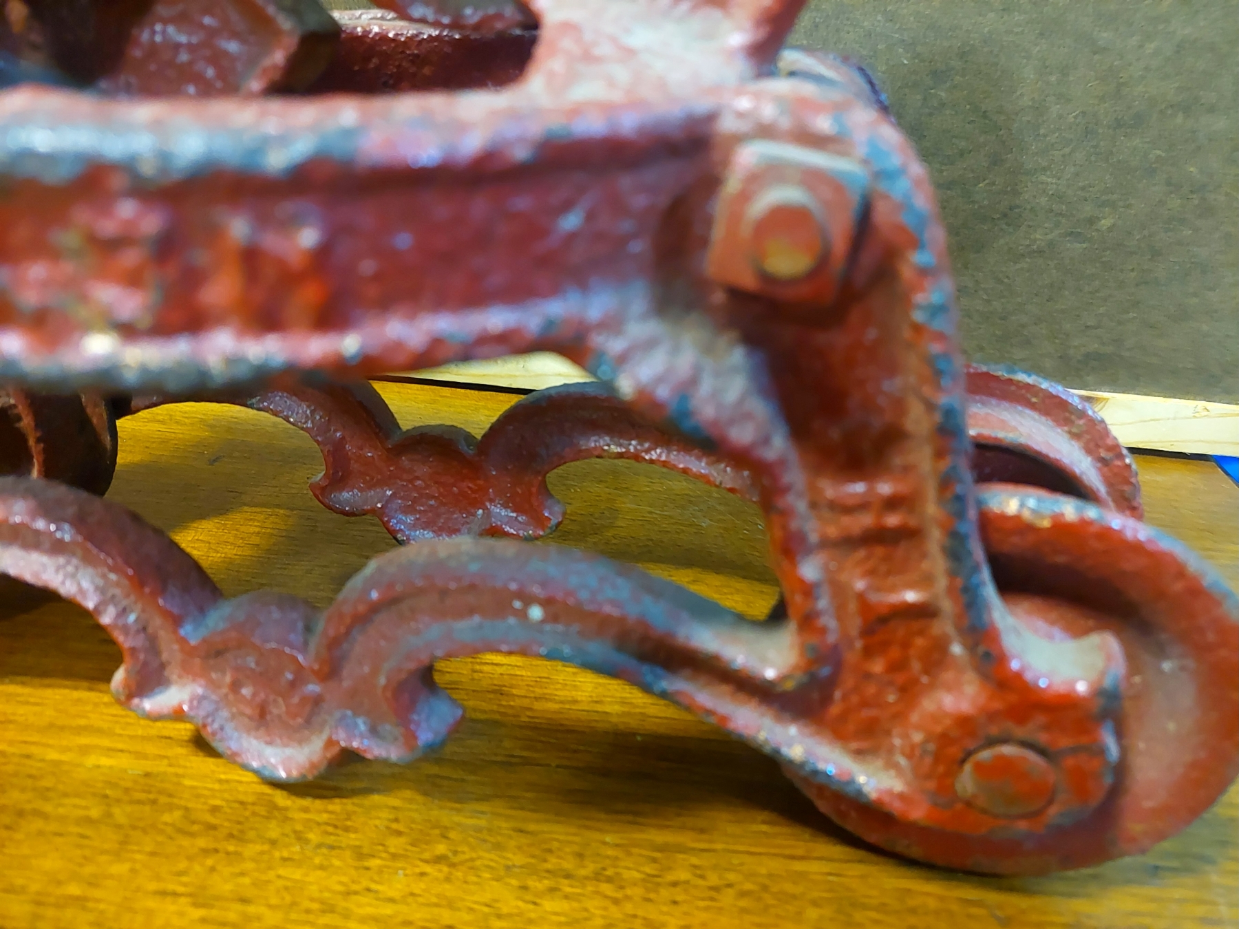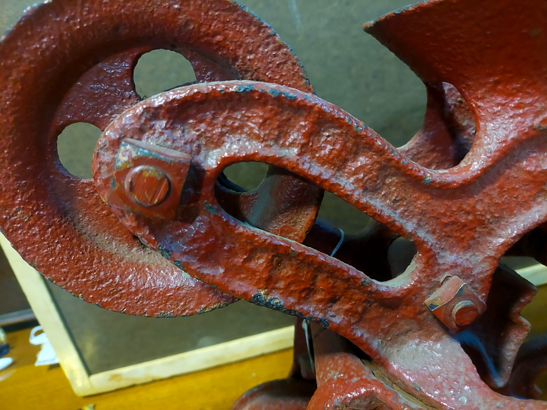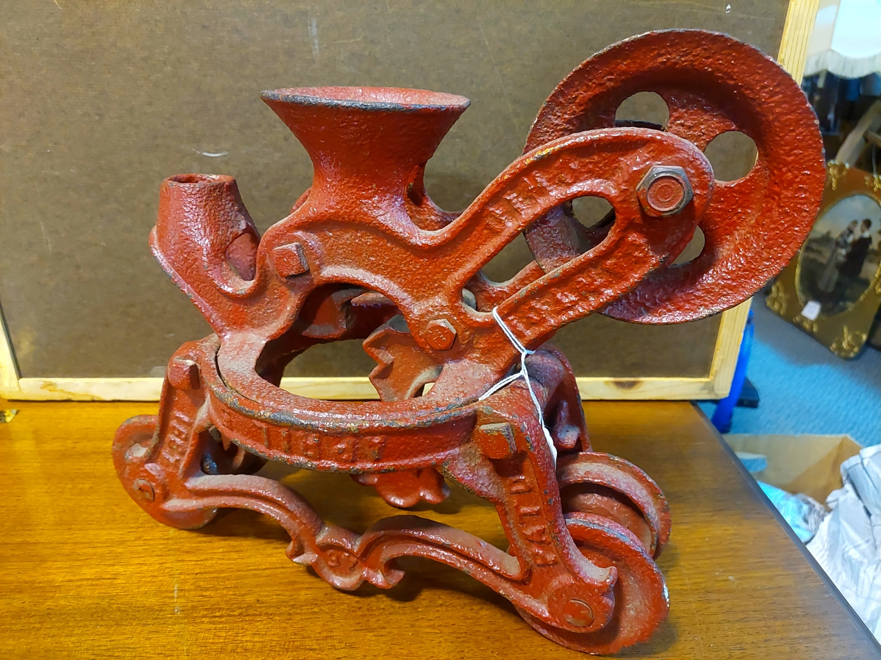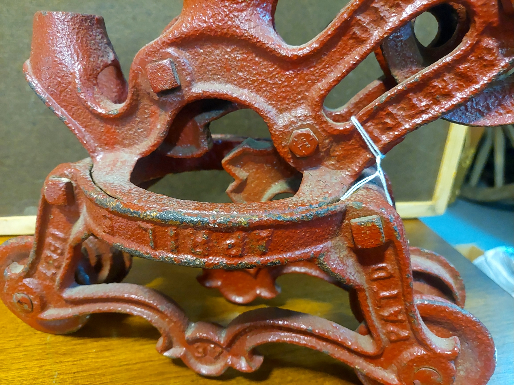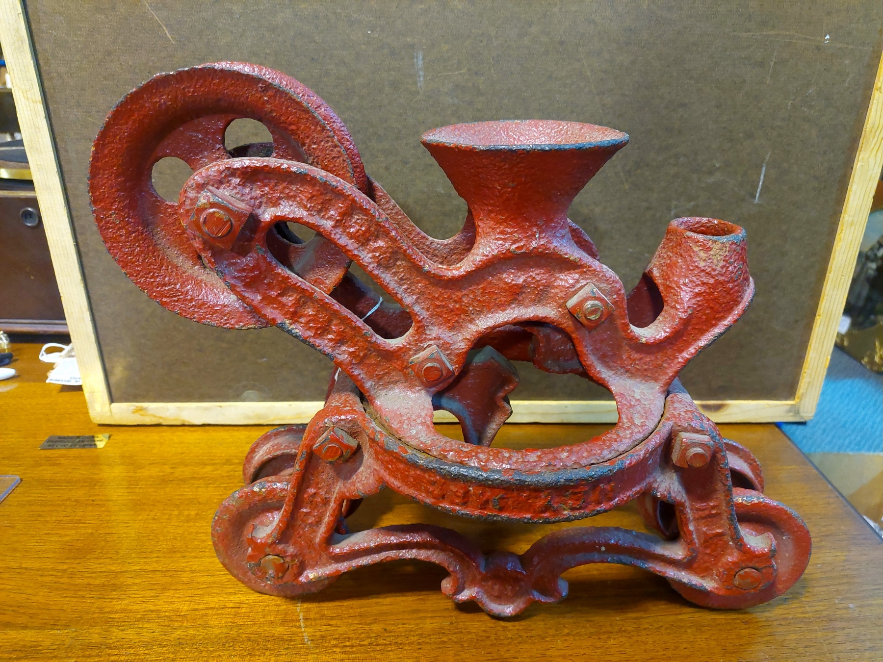 Antique RARE! Cast Iron In Original Excellent Condition 14" x 12" Barn / Trolly Pulley! - Very hard to come across these old pieces right out of Americana. Utilized back in the day for many labor saving daily tasks - especially in barn work - but adaptable for an inifinate variety of uses. Much history behind these pieces!
