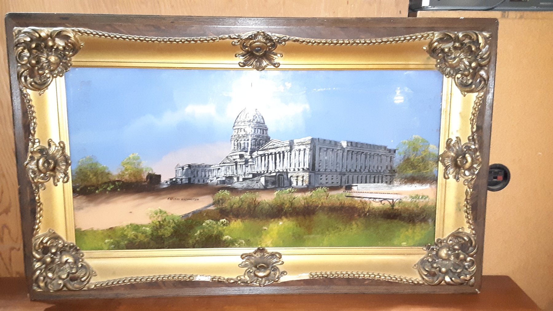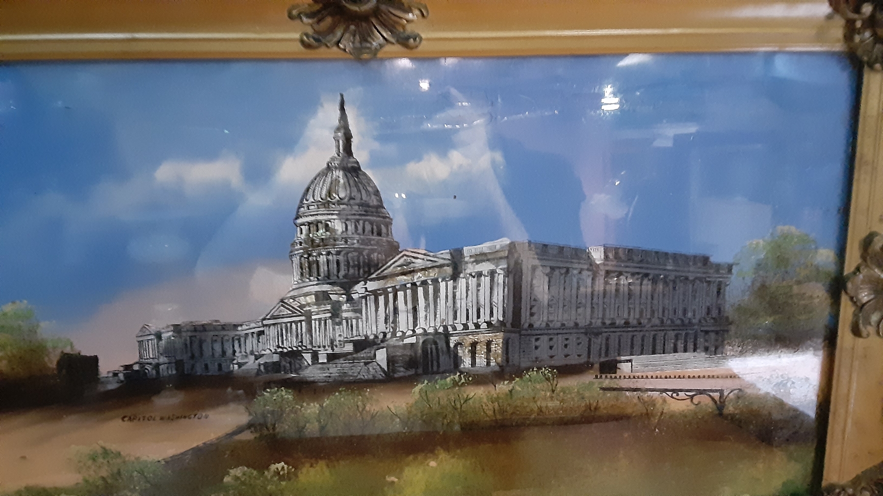 Antique RPOG Reverse Painted On Glass - United States Capital - Framed Nicely - 36 x 21 Overall - Real Gem Here