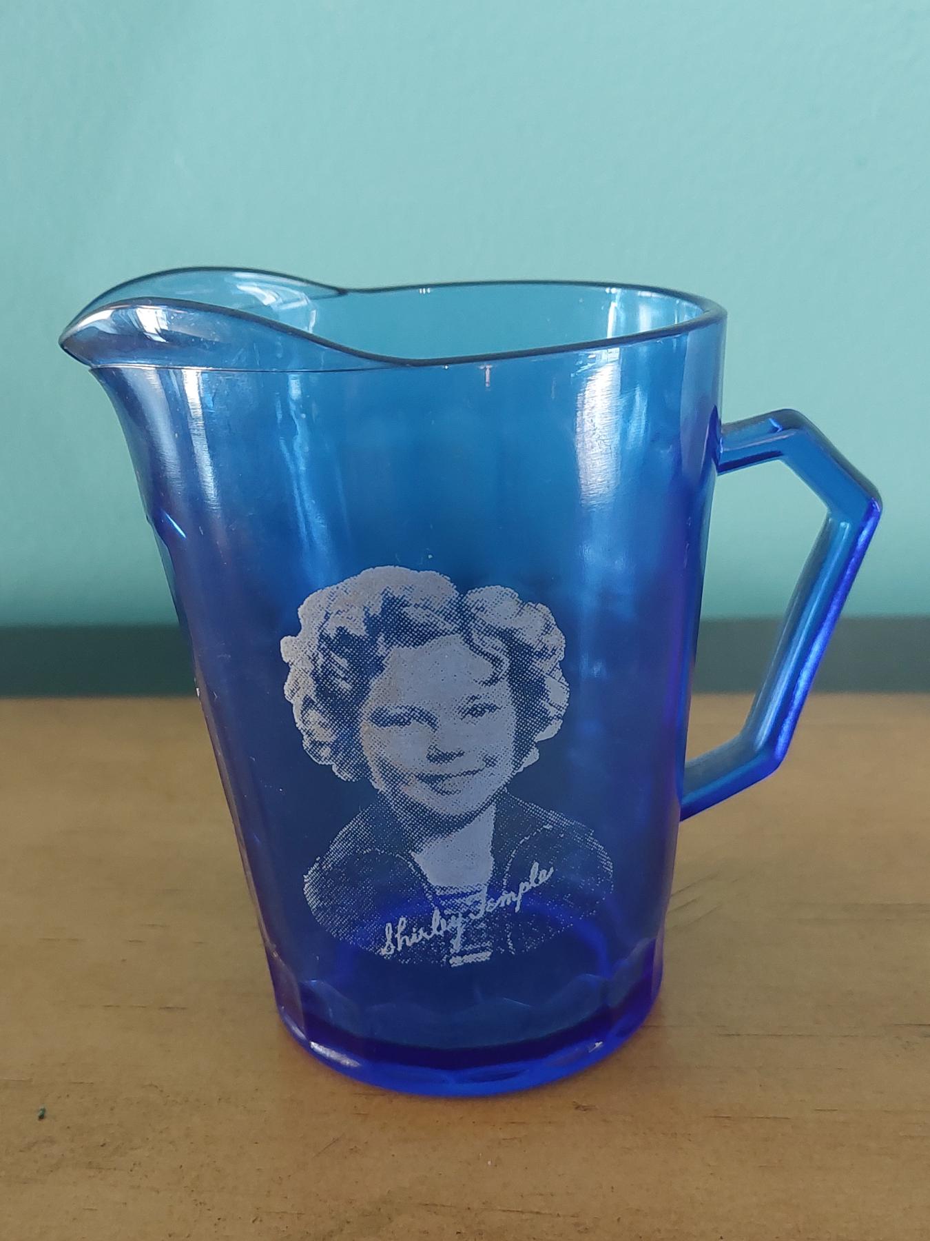 Antique "Shirley Temple" Hazel Atlas Glass Cobalt Collectible Pitcher - Orignal Piece